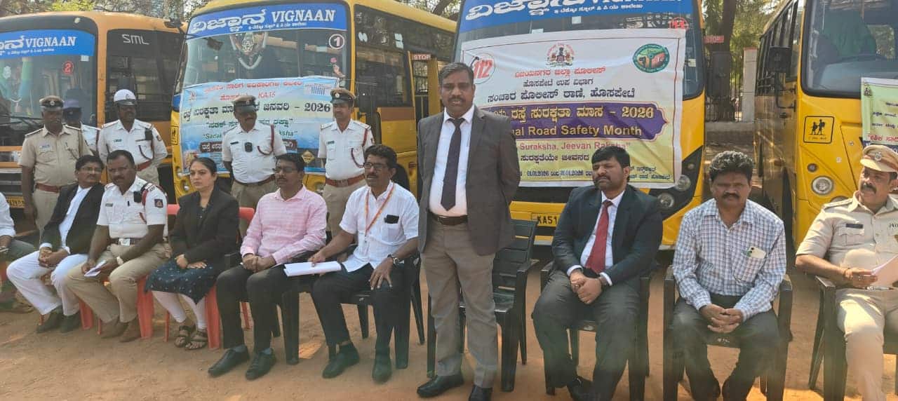 ಹೊಸಪೇಟೆ: ಶಾಲಾ ಮಕ್ಕಳನ್ನು ಮನೆಯಿಂದ ಶಾಲೆಗೆ ಕರೆದುಕೊಂಡು ಹೋಗಿ ಮರಳಿ ಮನೆಗೆ ಕರೆ ತರುವ ಗುರುತರ ಜವಾಬ್ದಾರಿ ಶಾಲಾ ವಾಹನ ಚಾಲಕರದ್ದು ಎಂದು ಪ್ರಧಾನ ಹಿರಿಯ ಸಿವಿಲ್ ನ್ಯಾಯಾಧೀಶ ಸಿಜೆಎಂ ಹಾಗೂ ತಾಲೂಕು ಕಾನೂನು ಸೇವಾ ಸಮಿತಿ ಅಧ್ಯಕ್ಷ ಸುಬ್ರಮಣ್ಯ ಎನ್. ಹೇಳಿದರು.ಸ್ಥಳೀಯ ಪುನೀತ್ ರಾಜ್ ಕುಮಾರ್ ಜಿಲ್ಲಾ ಕ್ರೀಡಾಂಗಣದಲ್ಲಿ ಸೋಮವಾರ 37ನೇ ರಾಷ್ಟ್ರೀಯ ರಸ್ತೆ ಸುರಕ್ಷತಾ ಸಪ್ತಾಹದ ಅಂಗವಾಗಿ ತಾಲೂಕು ಕಾನೂನು ಸೇವಾ ಸಮಿತಿ, ವಕೀಲರ ಸಂಘ, ಜಿಲ್ಲಾಡಳಿತ, ಜಿಪಂ, ಪೊಲೀಸ್ ಇಲಾಖೆ, ಶಿಕ್ಷಣ ಇಲಾಖೆ, ಪ್ರಾದೇಶಿಕ ಸಾರಿಗೆ ಇಲಾಖೆ, ಜಿಲ್ಲಾ ಆರೋಗ್ಯ ಮತ್ತು ಕುಟುಂಬ ಕಲ್ಯಾಣ ಇಲಾಖೆ, ಮಹಿಳಾ ಮತ್ತು ಮಕ್ಕಳ ಅಭಿವೃದ್ಧಿ ಇಲಾಖೆ, ವಾರ್ತಾ ಮತ್ತು ಸಾರ್ವಜನಿಕ ಸಂಪರ್ಕ ಇಲಾಖೆ ಹಾಗೂ ಜಿಲ್ಲಾ ರಸ್ತೆ ಸುರಕ್ಷತಾ ಸಮಿತಿ ಜಂಟಿ ಸಹಯೋಗದಲ್ಲಿ ಶಾಲಾ ವಾಹನ ಚಾಲಕರಿಗೆ ರಸ್ತೆ ಸುರಕ್ಷತೆ ಕುರಿತು ಆಯೋಜಿಸಲಾಗಿದ್ದ ಕಾನೂನು ಅರಿವು ನೆರವು ಕಾರ್ಯಕ್ರಮಕ್ಕೆ ಚಾಲನೆ ನೀಡಿ ಮಾತನಾಡಿದ ಅವರು, ರಸ್ತೆ ಅಪಘಾತಗಳಿಂದ ದೇಶದಲ್ಲಿ ಪ್ರತಿ ನಿಮಿಷಕ್ಕೆ ಒಂದು ಸಾವು ಸಂಭವಿಸುತ್ತಿವೆ. ಇದರಿಂದ ಅವರನ್ನು ನಂಬಿದ ಕುಟುಂಬಗಳು ಬೀದಿಗೆ ಬರುತ್ತಿವೆ ಎಂದರು.