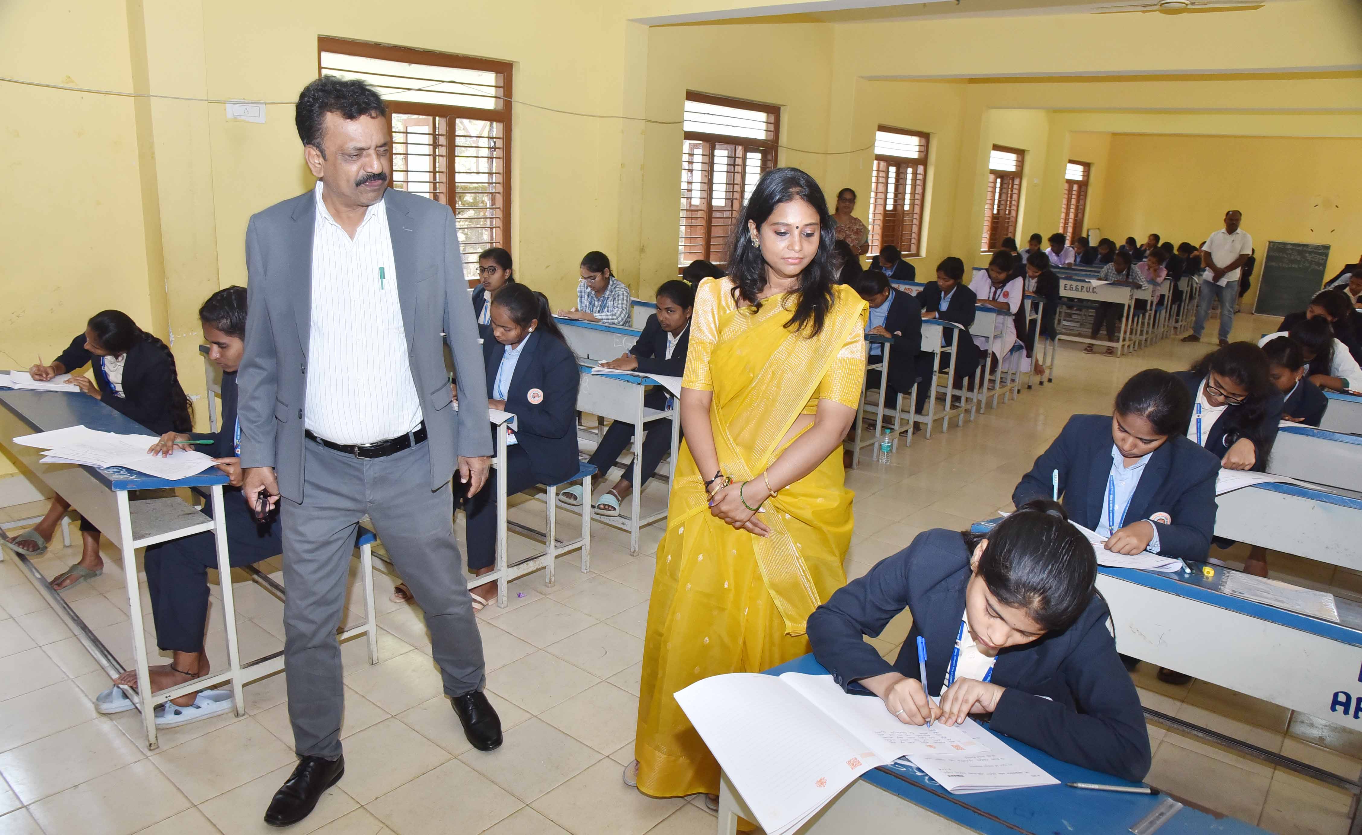 ನಿನ್ನೆ ಕನ್ನಡ ಮತ್ತು ಅರೇಬಿಕ್ ಪರೀಕ್ಷೆ ನಡೆದಿದ್ದರೆ, ಮಾರ್ಚ್ 2 ಭೂಗೋಳ ಶಾಸ್ತ್ರ, ಸಂಖ್ಯಾಶಾಸ್ತ್ರ, ಮನಃಶಾಸ್ತ್ರ ಪರೀಕ್ಷೆ, ಮಾ. 3 ರಂದು ಇಂಗ್ಲೀಷ್ ಪರೀಕ್ಷೆ, ಮಾ. 4 ರಂದು ತಮಿಳು, ತೆಲುಗು, ಮಲೆಯಾಳಂ, ಮರಾಠಿ, ಉರ್ದು, ಸಂಸ್ಕೃತ, ಫ್ರೆಂಚ್ ಪರೀಕ್ಷೆ, ಮಾ. 5 ರಂದು ಇತಿಹಾಸ ವಿಷಯದ ಪರೀಕ್ಷೆ, ಮಾ. 6 ರಂದು ಭೌತಶಾಸ್ತ್ರ ವಿಷಯದ ಪರೀಕ್ಷೆ, ಮಾ. 7 ಐಚ್ಛಿಕ ಕನ್ನಡ, ವ್ಯವಹಾರ ಅಧ್ಯಯನ, ಭೂಗರ್ಭ ಶಾಸ್ತ್ರ ವಿಷಯಗಳ ಪರೀಕ್ಷೆ, ಮಾ. 9 ರಂದು ರಾಸಾಯನಶಾಸ್ತ್ರ, ಶಿಕ್ಷಣ ಶಾಸ್ತ್ರ, ಮೂಲಗಣಿತ ವಿಷಯಗಳ ಪರೀಕ್ಷೆ, ಮಾ. 10 ರಂದು ಅರ್ಥಶಾಸ್ತ್ರ ವಿಷಯ ಪರೀಕ್ಷೆ, ಮಾ. 11 ರಂದು ತರ್ಕ ಶಾಸ್ತ್ರ, ವಿದ್ಯುನ್ಮಾನ ಶಾಸ್ತ್ರ, ಗೃಹ ವಿಜ್ಞಾನ ವಿಷಯಗಳ ಪರೀಕ್ಷೆ, ಮಾ. 12 ಹಿಂದಿ ಪರೀಕ್ಷೆ, ಮಾ. 13 ರಾಜ್ಯಶಾಸ್ತ್ರ ವಿಷಯದ ಪರೀಕ್ಷೆ, ಮಾ. 14 ಗಣಿತ, ಲೆಕ್ಕಶಾಸ್ತ್ರ ವಿಷಯಗಳ ಪರೀಕ್ಷೆ, ಮಾ. 16 ಸಮಾಜ ಶಾಸ್ತ್ರ, ಜೀವಶಾಸ್ತ್ರ, ಗಣಕವಿಜ್ಞಾನ ವಿಷಯಗಳ ಪರೀಕ್ಷೆ, ಮಾ. 17 ರಂದು ಹಿಂದುಸ್ತಾನಿ ಸಂಗೀತ, ರೀಟೈಲ್ ಆಟೋ ಮೊಬೈಲ್, ಆರೋಗ್ಯ ರಕ್ಷಣೆ ವಿಷಯಗಳ ಪರೀಕ್ಷೆ ನಡೆಯಲಿದೆ.ಪೋಟೋ : ಸೇರಿದಂತೆ ವಿವಿಧ ಪರೀಕ್ಷಾ ಕೇಂದ್ರಗಳಿಗೆ ಜಿಲ್ಲಾಧಿಕಾರಿ ಶುಭಕಲ್ಯಾಣ್ ಹಾಗೂ ಪ.ಪೂ. ಶಿಕ್ಷಣ ಇಲಾಖೆಯ ಉಪನಿರ್ದೇಶಕ ಡಾ. ಬಾಲಗುರುಮೂರ್ತಿ ಭೇಟಿ ನೀಡಿ ಪರಿಶೀಲನೆ ನಡೆಸಿದರು.