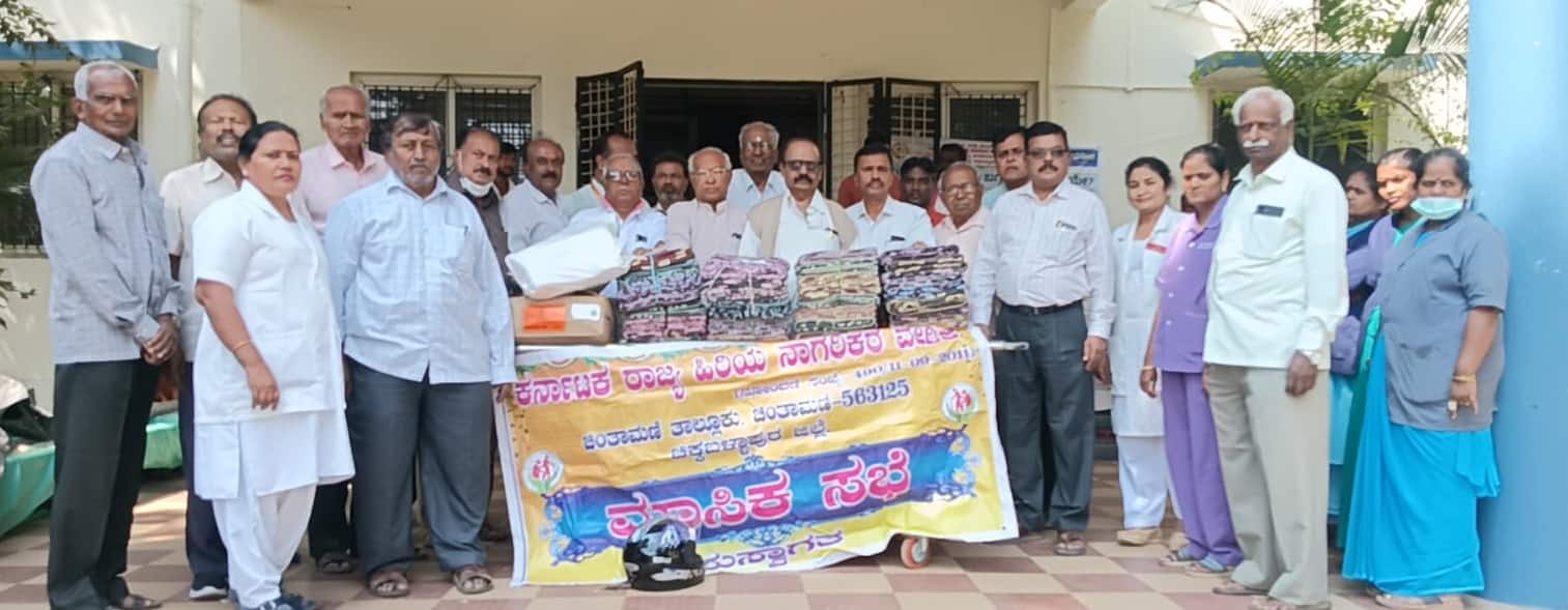ನಮಗೆ ಬರುತ್ತಿರುವ ನಿವೃತ್ತಿ ವೇತನದಲ್ಲೇ ಹಲವು ಸಮಾಜಮುಖಿ ಕಾರ್ಯಗಳನ್ನು ಮಾಡಿಕೊಂಡು ಬರುತ್ತಿದ್ದೇವೆ. ಈಗ ಸಾರ್ವಜನಿಕ ಮಹಿಳಾ ಮತ್ತು ಮಕ್ಕಳ ಆಸ್ಪತ್ರೆ ಬಾಣಂತಿಯರಿಗೆ ಬೆಡ್ ಶೀಟ್ ಮತ್ತು ಬ್ರೇಡ್ ನೀಡುವುದರ ಮೂಲಕ ಸಣ್ಣ ಸಹಾಯ ಮಾಡಲಾಗುತ್ತಿದೆ ಎಂದು ಹಿರಿಯ ನಾಗರೀಕರ ವೇದಿಕೆ ಅಧ್ಯಕ್ಷ ಕಾಗತಿ ವೆಂಕಟರತ್ನಂ ಹೇಳಿದರು. ನಗರದ ಸಾರ್ವಜನಿಕ ಮಹಿಳಾ ಮತ್ತು ಮಕ್ಕಳ ಆಸ್ಪತ್ರೆಯಲ್ಲಿ ರಾಜ್ಯ ಹಿರಿಯ ನಾಗರೀಕರ ವೇದಿಕೆ ವತಿಯಿಂದ ರೋಗಿಗಳಿಗೆ ಬೆಡ್ ಶೀಟ್ ಮತ್ತು ಬ್ರೆಡ್ ವಿತರಿಸಿ ಮಾತನಾಡಿ, ಹಿರಿಯರು ಕಿರಿಯರಿಗೆ ಮಾದರಿಯಾಗಬೇಕಿದೆ. ನಾವು ಯಾರಿಗೂ ಹೊರೆಯಾಗದೆ ನಾವು ನಮ್ಮ ಕೈಲಾದ ಸಮಾಜಮುಖಿ ಕಾರ್ಯ ಮಾಡುತ್ತಿದ್ದೇವೆ. ನಮ್ಮ ವೇದಿಕೆಯಲ್ಲಿ 90 ವರ್ಷ ಮೇಲ್ಪಟ್ಟವರು ಇದ್ದರೂ ನಾವು ಮಾಡಬೇಕೆಂದುಕೊಂಡಿರುವ ಸಮಾಜಮುಖಿ ಸೇವೆಗಳನ್ನು ನಿರಂತರವಾಗಿ ವೇದಿಕೆ ಸದಸ್ಯರ ಸಹಕಾರದೊಂದಿಗೆ ಮಾಡಿಕೊಂಡು ಬರುತ್ತಿದ್ದೇವೆಂದು ಹೇಳಿದರು.