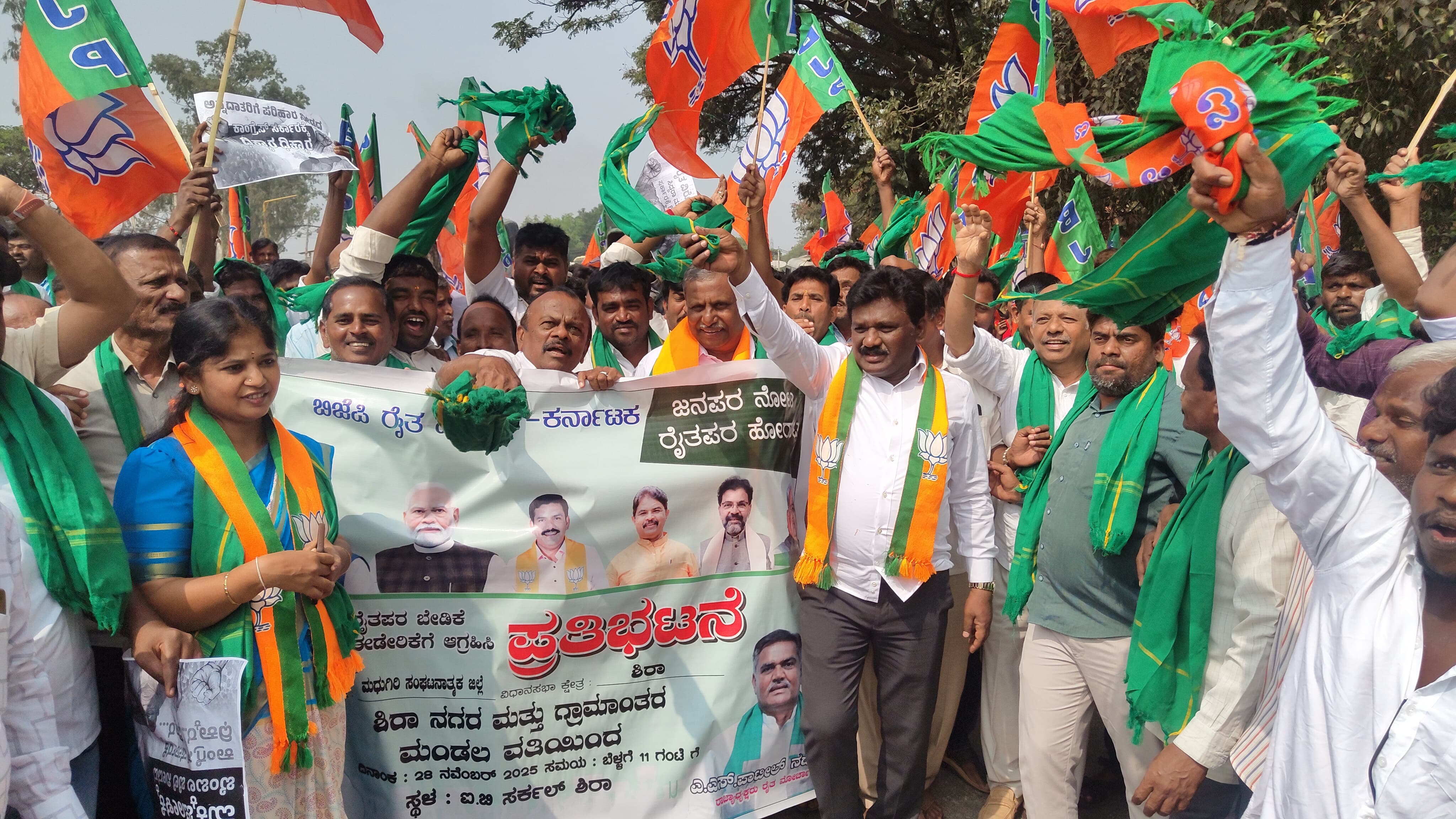 ರಾಜ್ಯದ ಕಾಂಗ್ರೆಸ್ ಸರ್ಕಾರವು ರೈತರ ಮೇಲೆ ಎಲ್ಲಾ ರೀತಿಯಲ್ಲೂ ಬೆಲೆಗಳನ್ನು ಹೆಚ್ಚಿಸುವ ಮೂಲಕ ರೈತರ ಮೇಲೆ ದೌರ್ಜನ್ಯ ಹಾಗೂ ಅನ್ಯಾಯ ಎಸಗುತ್ತಿದೆ ಎಂದು ಭಾರತೀಯ ಜನತಾ ಪಾರ್ಟಿ ಮಧುಗಿರಿ ಸಂಘಟನಾ ಜಿಲ್ಲೆಯ ಜಿಲ್ಲಾಧ್ಯಕ್ಷರು ಹಾಗೂ ವಿಧಾನಪರಿಷತ್ ಸದಸ್ಯರಾದ ಚಿದಾನಂದ್ ಎಂ ಗೌಡ ಆರೋಪಿಸಿದರು. ಅವರು ಶುಕ್ರವಾರ ಭಾರತೀಯ ಜನತಾ ಪಾರ್ಟಿ ಮಧುಗಿರಿ ಸಂಘಟನಾ ಜಿಲ್ಲೆಯ ವತಿಯಿಂದ ಹಮ್ಮಿಕೊಂಡಿದ್ದ ಪ್ರತಿಭಟನೆಯಲ್ಲಿ ಭಾಗವಹಿಸಿ ಮಾತನಾಡಿ, ಕಾಂಗ್ರೆಸ್ ಸರ್ಕಾರದ ಸಾಧನೆ ದರಗಳನ್ನು ಹೆಚ್ಚಿಸುವುದೇ ಆಗಿದೆ. ವಿದ್ಯುತ್ ದರ, ನಂದಿನಿ ಹಾಲಿನ ದರ, ರೈತರ ಜಮೀನಿಗೆ ಹಾಕುವ ಟ್ರಾನ್ಸ್ಫಾರ್ಮಾರ್ ದರ, ಮುದ್ರಾಂಕ ಶುಲ್ಕ, ಪಹಣಿ ಶುಲ್ಕ, ಜನನ ಮತ್ತು ಮರಣ ಪ್ರಮಾಣ ಪತ್ರ ಶುಲ್ಕ, ಛಾಪಾ ಕಾಗದದ ಬೆಲೆ ಏರಿಕೆ ಸೇರಿದಂತೆ ರೈತರು, ಸಾರ್ವಜನಿಕರು ಉಪಯೋಗಿಸುವ ಎಲ್ಲಾ ವಸ್ತುಗಳ ಮೇಲೆ ಬೆಲೆ ಏರಿಸಿರುವುದೇ ಸರಕಾರದ ಸಾಧನೆಯಾಗಿದೆ. ರಾಜ್ಯ ಸರಕಾರದ ಸಾರ್ವಜನಿಕ ರೈತರ ವಿರೋಧಿ ನೀತಿಗಳಿಂದ ರಾಜ್ಯದ ಜನತೆಯು ಜೀವನ ನಡೆಸುವುದೇ ಕಷ್ಟವಾಗಿದೆ. ಇತ್ತ ಭಾಗ್ಯಗಳ ಪೂರ್ಣ ಪ್ರಮಾಣದಲ್ಲಿ ಜಾರಿಯೂ ಆಗದೆ ಅತ್ತ ವಸ್ತುಗಳ ಬೆಲೆಯನ್ನು ಏರಿಕೆ ಮಾಡುವುದರ ಮೂಲಕ ಕಾಂಗ್ರೆಸ್ ಸರ್ಕಾರ ರಾಜ್ಯವನ್ನು ದಿವಾಳಿಯತ್ತ ಕೊಂಡೊಯುತ್ತಿದೆ ಎಂದರು. ತುಮಕೂರು ಹಾಲು ಒಕ್ಕೂಟದ ನಿರ್ದೇಶಕರಾದ ಎಸ್.ಆರ್.ಗೌಡ ಮಾತನಾಡಿ, ಎನ್ಡಿಎ ಪಕ್ಷದ ವತಿಯಿಂದ ರಾಜ್ಯದ ಜನರ ಹಿತದೃಷ್ಟಿಯಿಂದ ಈಗಾಗಲೇ ಹಲವಾರು ಹೋರಾಟಗಳನ್ನು ಮಾಡಿದೆ. ಆದರೂ ಸಹ ಈ ಕಾಂಗ್ರೆಸ್ ಸರ್ಕಾರಕ್ಕೆ ಕಣ್ಣು ಕಿವಿ ಎರಡೂ ಇಲ್ಲದಂತಾಗಿದೆ. ಇನ್ನಾದರೂ ರಾಜ್ಯದ ಜನರ ಹಿತದೃಷ್ಟಿಯಿಂದ ದಿನ ನಿತ್ಯ ಉಪಯೋಗಿಸುವ ವಸ್ತುಗಳ ಬೆಲೆಯನ್ನು ತಗ್ಗಿಸಬೇಕು. ಎಲ್ಲಾ ಗ್ರಾಮಗಳಿಗೂ ಮೂಲಭೂತ ಸೌಕರ್ಯಗಳನ್ನು ಒದಗಿಸಬೇಕು ಎಂದು ಆಗ್ರಹಿಸಿದರು. ಬಿಜೆಪಿ ಮಧುಗಿರಿ ಸಂಘಟನಾ ಜಿಲ್ಲೆಯ ಮಾಜಿ ಅಧ್ಯಕ್ಷ ಬಿ.ಕೆ. ಮಂಜುನಾಥ್ ಮಾತನಾಡಿ, ರಾಜ್ಯ ಸರ್ಕಾರ ಅಧಿಕಾರಕ್ಕೆ ಬಂದು ಎರಡುವರೆ ವರ್ಷವಾಗಿದ್ದು, ಬರೀ ಕುರ್ಚಿ ಕಾಳಗದಲ್ಲಿಯೇ ಕಾಲ ಕಳೆಯುತ್ತಿದ್ದಾರೆ. ರೈತರ ಮತ್ತು ಸಾರ್ವಜನಿಕರ ಅಭಿವೃದ್ಧಿ ಬಗ್ಗೆ ಯಾರೂ ಯೋಚಿಸುತ್ತಿಲ್ಲ. ಶಿರಾ ತಾಲೂಕಿನಲ್ಲಿನ ಅಧಿಕಾರಿಗಳು ಭ್ರಷ್ಟಾಚಾರದಲ್ಲಿ ಮುಳುಗಿದ್ದಾರೆ ಎಂದರು. ಪ್ರತಿಭಟನೆಗೂ ಮುನ್ನ ಪ್ರತಿಭಟನಾ ಮೆರವಣಿಗೆಯು ನಗರದ ಅಂಬೇಡ್ಕರ್ ಸರ್ಕಲ್ನಿಂದ ಹೊರಟು ತಾಲೂಕು ಆಡಳಿತ ಕಚೇರಿಗೆ ತೆರಳಿ ತಹಸೀಲ್ದಾರ್ಗೆ ಮನವಿಪತ್ರ ಸಲ್ಲಿಸಿದರು.ಈ ಸಂದರ್ಭದಲ್ಲಿ ಬಿಜೆಪಿ ನಗರಮಂಡಲ ಅಧ್ಯಕ್ಷ ಗಿರಿಧರ್, ಗ್ರಾಮಾಂತರ ಅಧ್ಯಕ್ಷ ಈರಣ್ಣ ಪಟೇಲ್, ಜಿಲ್ಲಾ ಪ್ರಧಾನ ಕಾರ್ಯದರ್ಶಿ ಎಂಜಲಗೆರೆ ಮೂರ್ತಿ, ಮಹಿಳಾ ಮೋರ್ಚಾ ಜಿಲ್ಲಾಧ್ಯಕ್ಷರಾದ ಉಮಾ ವಿಜಯರಾಜ್, ಜಿಲ್ಲಾ ಓ ಬಿ ಸಿ ಅಧ್ಯಕ್ಷರಾದ ಮಾಗೋಡು ಪ್ರತಾಪ್, ಜಿಲ್ಲಾ ಎಸ್ ಟಿ ಮೋರ್ಚಾ ಅಧ್ಯಕ್ಷ ಅಂತಪುರ ಮಂಜುನಾಥ್, ತಾ.ಪಂ. ಮಾಜಿ ಸದಸ್ಯ ಹೊನ್ನಗೊಂಡನಹಳ್ಳಿ ಚಿಕ್ಕಣ್ಣ, ರೈತ ಮೋರ್ಚಾ ಅಧ್ಯಕ್ಷರಾದ ಮದ್ದೆವಳ್ಳಿ ರಾಮಕೃಷ್ಣಪ್ಪ, ನಗರ ರೈತ ಮೋರ್ಚಾ ಅಧ್ಯಕ್ಷರಾದ ಬಸವರಾಜು, ರೈತ ಮೋರ್ಚಾ ಪ್ರಧಾನ ಕಾರ್ಯದರ್ಶಿ ರಾಮು ಮೂಗನಹಳ್ಳಿ, ತಾಲೂಕು ಉಪಾಧ್ಯಕ್ಷರಾದ ನಾಗರಾಜ್ ಗೌಡ ಹಾಗೂ ಬೊಪ್ಪರಾಯಪ್ಪ, ನಗರಸಭೆ ಮಾಜಿ ಸದಸ್ಯರಾದ ನಟರಾಜ್ ಸಂತೆಪೇಟೆ, ತರೂರು ಬಸವರಾಜು ಭಾಗವಹಿಸಿದ್ದರು.೨೮ಶಿರಾ೧: ಶಿರಾದಲ್ಲಿ ಬಿಜೆಪಿ ಮಧುಗಿರಿ ಸಂ