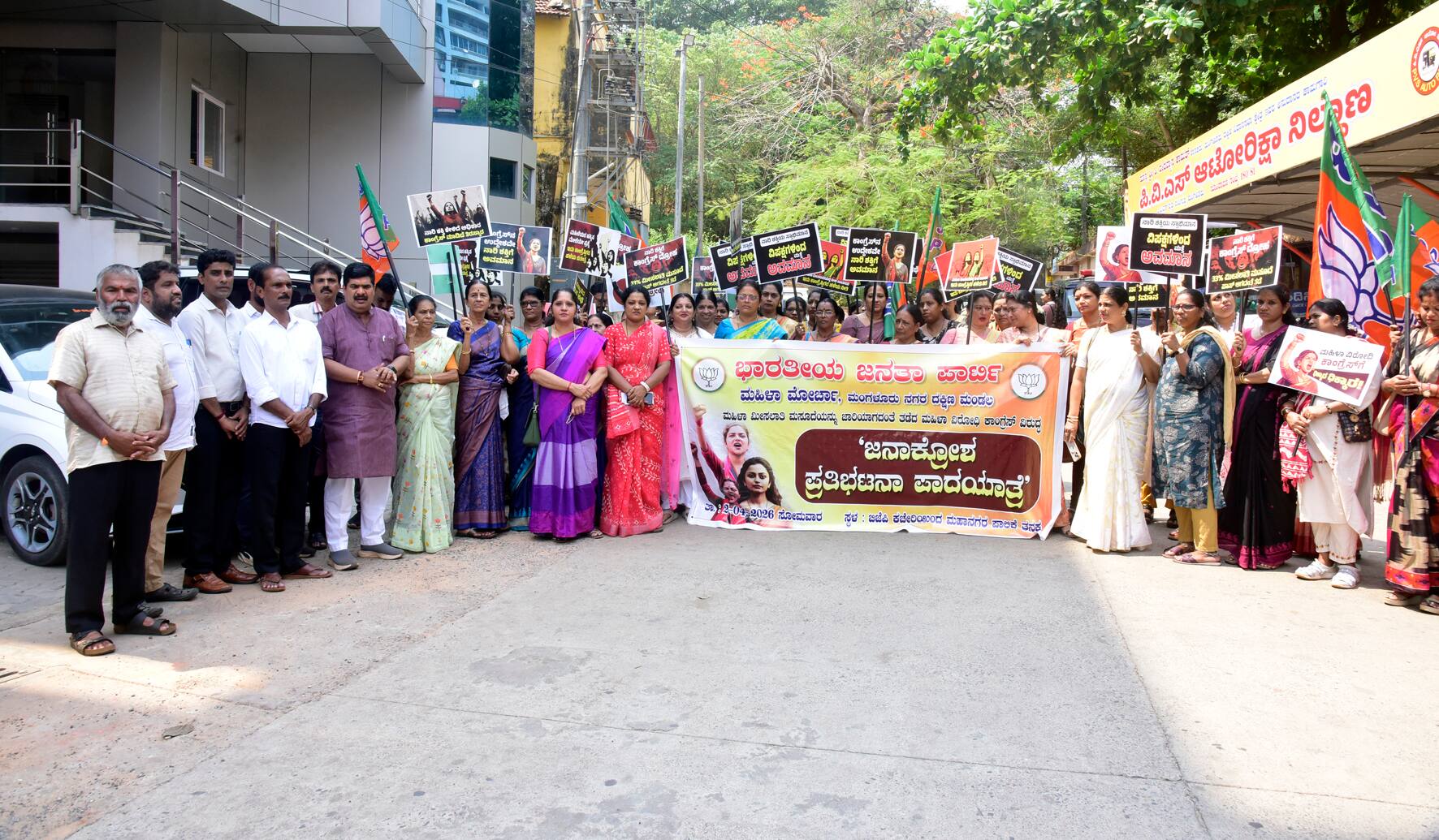 ಮಂಗಳೂರು: ರಾಜಕೀಯದಲ್ಲಿ ಮಹಿಳೆಯರಿಗೆ ಮುಕ್ತ ಅವಕಾಶ ಲಭಿಸಬೇಕು, ದೇಶವನ್ನು ಅಳುವ ಪ್ರಮುಖ ಹುದ್ದೆಯಲ್ಲಿ ಮಹಿಳೆಯರು ಕುಳಿತುಕೊಳ್ಳಬೇಕು ಎನ್ನುವ ಉದ್ದೇಶದಿಂದ ಮಹಿಳಾ ಮೀಸಲಾತಿ ಸಮೂದೆಯೆನ್ನು ಪ್ರಧಾನ ಮಂತ್ರಿ ನರೇಂದ್ರ ಮೋದಿಯವರು ಜಾರಿಗೊಳಿಸಲು ಮುಂದಾಗಿದ್ದರು. ಆದರೆ ಕಾಂಗ್ರೆಸ್ ಈ ಮಸೂದೆಯನ್ನು ಸಂಪೂರ್ಣವಾಗಿ ವಿಫಲ ಮಾಡಿದೆ. ಮಹಿಳೆಯರಿಗೆ ಮಾಡಿದ ಅವಮಾನವನ್ನು ದೇಶದ ಜನರು ಎಂದಿಗೂ ಕ್ಷಮಿಸುವುದಿಲ್ಲ ಎಂದು ಮಂಗಳೂರು ದಕ್ಷಿಣ ಶಾಸಕ ವೇದವ್ಯಾಸ ಕಾಮತ್ ಹೇಳಿದ್ದಾರೆ.ಮಹಿಳಾ ಮೀಸಲಾತಿ ಮಸೂದೆಯನ್ನು ಜಾರಿಯಾಗದಂತೆ ತಡೆದ ಕಾಂಗ್ರೆಸ್ ಮಹಿಳಾ ವಿರೋಧಿ ನಡೆ ಅನುಸರಿಸಿದೆ ಎಂದು ಆರೋಪಿಸಿ ಬಿಜೆಪಿ ಮಂಗಳೂರು ನಗರ ದಕ್ಷಿಣ ಮಂಡಲದ ಮಹಿಳಾ ಮೋರ್ಚಾ ವತಿಯಿಂದ ಜನಾಕ್ರೋಶ ಪ್ರತಿಭಟನಾ ಪಾದಯಾತ್ರೆ ಸೋಮವಾರ ನಡೆಯಿತು. ನಗರದ ಪಿವಿಎಸ್ ವೃತ್ತದ ಬಳಿಯ ಬಿಜೆಪಿ ಕಚೇರಿಯಿಂದ ಮಂಗಳೂರು ಮಹಾನಗರ ಪಾಲಿಕೆ ಕಚೇರಿ ವರೆಗೆ ಪ್ರತಿಭಟನಾ ಪಾದಯಾತ್ರೆ ನಡೆಸಲಾಯಿತು. ಕಾಂಗ್ರೆಸ್ ಹಾಗೂ ಅದರ ಮಿತ್ರ ಪಕ್ಷದ ವಿರುದ್ಧ ಪ್ರತಿಭಟನಾ ಕಾರರು ಘೋಷಣೆಗಳನ್ನು ಕೂಗಿ ಆಕ್ರೋಶ ವ್ಯಕ್ತ ಪಡಿಸಿದರು. ಈ ಸಂದರ್ಭ ಮಾತನಾಡಿದ ಕಾಮತ್, ಮಹಿಳೆಯರು ಮುಖ್ಯ ವಾಹಿನಿಗೆ ಬರಬಾರದು ಎನ್ನುವ ಉದ್ದೇಶದೊಂದಿಗೆ ಕಾಂಗ್ರೆಸ್ ಮಸೂದೆ ಜಾರಿಯಾಗದಂತೆ ತಡೆದಿದೆ. ಲೋಕಸಭಾ ಸ್ಥಾನ 800ರಷ್ಟು ಹೆಚ್ಚಳವಾಗುವುದರಿಂದ 200ಕ್ಕೂ ಅಧಿಕ ಸ್ಥಾನಗಳು ಮಹಿಳೆಯರಿಗೆ ದೊರೆಯುತ್ತದೆ ಎಂದರು.ಬಿಜೆಪಿ ಜಿಲ್ಲಾ ಕಾರ್ಯದರ್ಶಿ ಪೂರ್ಣಿಮಾ ಮಾತನಾಡಿ, ಮಸೂದೆಗೆ ಒಪ್ಪಿಗೆ ಸಿಗದ ಕಾರಣ ಮಹಿಳೆಯರ ಕಡೆಗಣನೆಯಾದಂತಾಗಿದ್ದು, ಕಾಂಗ್ರೆಸ್ ಹಾಗೂ ಮಿತ್ರ ಪಕ್ಷಗಳು ಇದನ್ನು ಸಂಭ್ರಮಿಸಿದ್ದನ್ನು ಮಹಿಳಾ ಮೋರ್ಚಾ ಖಂಡಿಸುತ್ತದೆ ಎಂದರು.