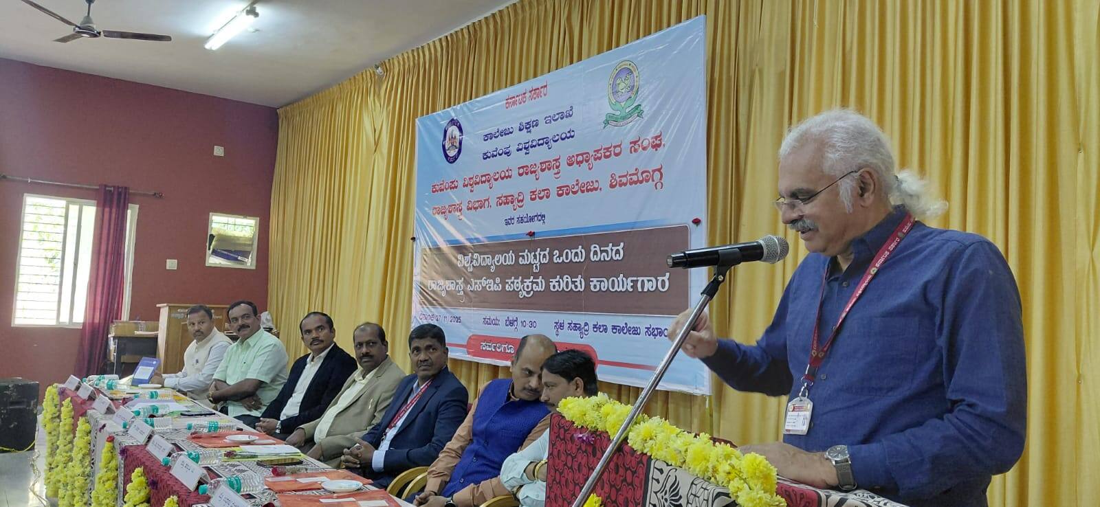 ಶಿಕ್ಷಕರು ಪಠ್ಯವನ್ನು ಬೋಧಿಸುವುದರ ಜೊತೆಗೆ ಅದನ್ನು ಚರ್ಚೆಮಾಡಲು ಪೂರಕವಾತಾವರಣವನ್ನು ಕಲ್ಪಿಸಬೇಕು ಮತ್ತು ಯಾವುದೇ ಪಠ್ಯ ಇರಲಿ ಅದನ್ನು ವರ್ತಮಾನದ ವಿಷಯಗಳನ್ನು ಸಮೀಕರಿಸಬೇಕಾಗುತ್ತದೆ. ಪಠ್ಯದ ಆಚೆಗೂ ಅವರು ನಿಂತು ನೋಡಬೇಕಾಗಿದೆ ಎಂದರು.ಪ್ರಸ್ತುತ ಯುವಕರಲ್ಲಿ ರಾಜಕೀಯ ಪ್ರಜ್ಞೆ ಕಡಿಮೆಯಾಗುತ್ತಿದೆ. ಈಗ ಸಾಮಾಜಿಕ ಜಾಲತಾಣಗಳಲ್ಲಿ ಬರುವ ರಾಜಕಾರಣದ ಚರ್ಚೆಗಳೇ ರಾಜಕೀಯ ಎಂದು ನಂಬಿ ಬಿಡುತ್ತಾರೆ. ರಾಜಕೀಯ ಕೌಶಲ್ಯವನ್ನು ಅವರಿಗೆ ಬೋಧಿಸಬೇಕಾದ ಅವಶ್ಯಕತೆ ಇದೆ ಎಂದರು.ನಮ್ಮ ರಾಜಕೀಯ ಚರಿತ್ರೆಗಳು ಕೂಡ ತಿರುಚುವಂತಹ ಹೊಸ ವ್ಯಾಖ್ಯಾನ ಕೊಡುವಂತಹ ಸನ್ನಿವೇಶಗಳು ಈಗ ಮೂಡುತ್ತಿವೆ. ಸ್ವಾತಂತ್ರ್ಯದ ಸಂದರ್ಭದಲ್ಲಿ ದೇಶವನ್ನು ಬಲಿಷ್ಠವನ್ನಾಗಿ ಮಾಡಿದ ವ್ಯಕ್ತಿಗಳನ್ನು ಇಂದು ಅತ್ಯಂತ ಕೀಳಾಗಿ ಕಾಣುವಂತಹ ಪರಿಸ್ಥಿತಿ ಬಂದಿದೆ. ಮಕ್ಕಳಿಗೆ ಸತ್ಯಹೇಳಬೇಕು. ಸತ್ಯಹೇಳುವಾಗ ಯಾವ ಮಡಿವಂತಿಕೆಯೂ ಇರಬಾರದು ಎಂದು ಹೇಳಿದರು.ಪ್ರಾಸ್ತಾವಿಕವಾಗಿ ಮಾತನಾಡಿದ ಕುವೆಂಪು ವಿವಿ ರಾಜ್ಯಶಾಸ್ತ್ರ ಅಧ್ಯಾಪಕರ ಸಂಘದ ಉಪಾಧ್ಯಕ್ಷ ಪ್ರೊ.ಪ್ರಹ್ಲಾದ್.ಎಂ.ಎಚ್, ಶಿಕ್ಷಣ ಕುತೂಹಲವನ್ನು ಹುಟ್ಟಿಸುತ್ತದೆ ಮತ್ತು ಪಠ್ಯಗಳು ವಿದ್ಯಾರ್ಥಿಗಳ ಆಧಾರಸ್ತಂಭಗಳಾಗಿವೆ. ರಾಜ್ಯಶಾಸ್ತ್ರಕ್ಕೆ ಈಗ ಎಲ್ಲಿಲ್ಲದ ಗೌರವ ಬರುತ್ತಿದೆ. ಪಠ್ಯಗಳನ್ನು ಬೋಧಿಸುವ ಮೂಲಕ ವಿದ್ಯಾರ್ಥಿಗಳ ಸಾಮರ್ಥ್ಯಗಳನ್ನು ವೃದ್ಧಿಸಬೇಕು. ಉಪನ್ಯಾಸಕರಿಗೆ ಪಠ್ಯಕ್ರಮಗಳ ಬಗ್ಗೆ ಮಾಹಿತಿ ನೀಡಬೇಕು ಮತ್ತು ಎಸ್ಇಪಿಯ ಉದ್ದೇಶಗಳನ್ನ ತಿಳಿಸುವುದು ಈ ಕಾರ್ಯಾಗಾರದ ಉದ್ದೇಶವಾಗಿದೆ ಎಂದು ತಿಳಿಸಿದರು.ಕುವೆಂಪು ವಿವಿ ಕುಲಸಚಿವ (ಪರೀಕ್ಷಾಂಗ) ಪ್ರೊ.ತಿಮ್ಮರಾಯಪ್ಪ ಮಾತನಾಡಿ, ರಾಜಧರ್ಮ ಎಂಬುವುದು ನಮ್ಮ ವೃತ್ತಿ ಜೀವನಕ್ಕೂ ಅನ್ವಯಿಸುತ್ತದೆ. ರಾಜ್ಯಶಾಸ್ತ್ರ ಒಂದು ಮಾನವಿಕ ಶಾಸ್ತ್ರವೂ ಹೌದು. ಜ್ಞಾನ, ಉದ್ಯೋಗ ಎರಡನ್ನೂ ಪಠ್ಯಕ್ರಮಗಳು ಒಳಗೊಂಡಿರಬೇಕು ಮತ್ತು ಇದನ್ನು ರೂಪಿಸುವಾಗ ಐಎಎಸ್, ಕೆಪಿಎಸ್ ಮುಂತಾದ ಸ್ಪರ್ಧಾತ್ಮಕ ಪರೀಕ್ಷೆಗಳಿಗೂ ಅನುಕೂಲವಾಗುವಂತಿರಬೇಕು ಎಂದರು.ಕಾರ್ಯಕ್ರಮದ ಅಧ್ಯಕ್ಷತೆಯನ್ನು ಕುವೆಂಪು ವಿವಿ ರಾಜ್ಯಶಾಸ್ತ್ರ ಅಧ್ಯಾಪಕರ ಸಂಘದ ಅಧ್ಯಕ್ಷ ಪ್ರೊ.ಕೆ.ಪ್ರಸನ್ನಕುಮಾರ್ ವಹಿಸಿದ್ದರು.