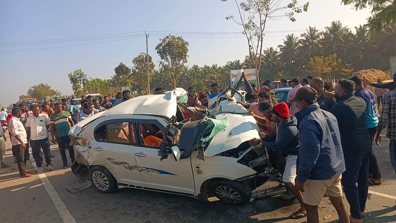 ಬೆಂಗಳೂರಿನಿಂದ ಸ್ವಿಫ್ಟ್ ಕಾರಿನಲ್ಲಿ ಒಂದೇ ಕುಟುಂಬದ ಐವರು ತಾಲೂಕಿನ ಕೋಟೆಬೆಟ್ಟದಲ್ಲಿ ನಡೆಯುತ್ತಿದ್ದ ಜಾತ್ರಾ ಮಹೋತ್ಸವಕ್ಕೆ ತೆರಳುತ್ತಿದ್ದರು. ಈ ವೇಳೆ ಚಾಲಕನ ನಿಯಂತ್ರಣ ತಪ್ಪಿದ ಕಾರು ರಾಷ್ಟ್ರೀಯ ಹೆದ್ದಾರಿಯಲ್ಲಿ ನಾಗಮಂಗಲ ಕಡೆಗೆ ಚಲಿಸುತ್ತಿದ್ದ ಟಿಪ್ಪರ್ ಲಾರಿಗೆ ಹಿಂಬದಿಯಿಂದ ಡಿಕ್ಕಿ ಹೊಡೆದು ಈ ಅವಘಡ ಸಂಭವಿಸಿದೆ.ಡಿಕ್ಕಿಯ ರಭಸಕ್ಕೆ ಕಾರು ಜಖಂಗೊಂಡು ಮವೀನ ಹಾಗೂ ಶ್ಯಾಮ್ ಸ್ಥಳದಲ್ಲೇ ಕೊನೆಯುಸಿರೆಳೆದರೆ, ಇವರ ತಾಯಿ ಹಾಗೂ ದೊಡ್ಡಮ್ಮ ಮತ್ತು ಚಾಲಕ ಗಂಭೀರವಾಗಿ ಗಾಯಗೊಂಡಿದ್ದರು. ಸುದ್ದಿ ತಿಳಿಯುತ್ತಿದ್ದಂತೆ ಸ್ಥಳಕ್ಕಾಗಮಿಸಿದ ಬೆಳ್ಳೂರು ಪೊಲೀಸ್ ಠಾಣೆಯ ಪಿಎಸ್ಐ ವೈ.ಎನ್.ರವಿಕುಮಾರ್ ಮತ್ತು ಪೊಲೀಸ್ ಸಿಬ್ಬಂದಿ ಸ್ಥಳೀಯರ ನೆರವಿನೊಂದಿಗೆ ಗಾಯಾಳುಗಳನ್ನು ತಾಲೂಕಿನ ಆದಿಚುಂಚನಗಿರಿ ಆಸ್ಪತ್ರೆಗೆ ದಾಖಲಿಸಿ, ಕಾರಿನಲ್ಲಿ ಮೃತಪಟ್ಟಿದ್ದ ಮವೀನ ಹಾಗೂ ಶ್ಯಾಮ್ ಮೃತದೇಹಗಳನ್ನು ಇದೇ ಆಸ್ಪತ್ರೆಯ ಶವಾಗಾರಕ್ಕೆ ರವಾನಿಸಿ ಮರಣೋತ್ತರ ಪರೀಕ್ಷೆಗೊಳಪಡಿಸಿದರು.