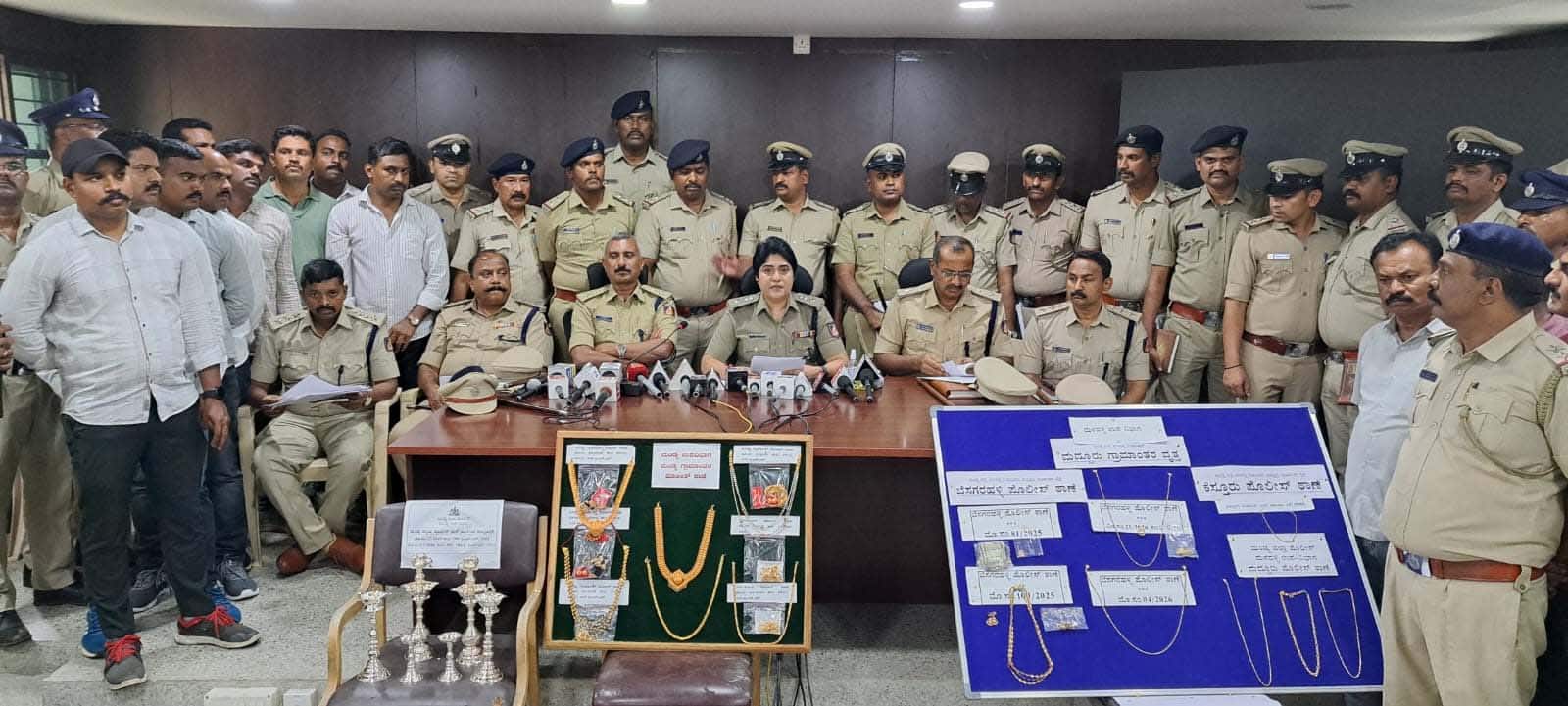 ಶ್ರೀರಂಗಪಟ್ಟಣ ಪೊಲೀಸ್ ಠಾಣೆ ವ್ಯಾಪ್ತಿಯಲ್ಲಿ ೨೦೦ ಗ್ರಾಂ ಚಿನ್ನಾಭರಣ ಹಾಗೂ ೬ ಬೈಕ್ಗಳನ್ನು ವಶಪಕ್ಕೆ ಪಡೆಯಲಾಗಿದೆ ಎಂದರು. ಅಪರ ಜಿಲ್ಲಾ ಪೊಲೀಸ್ ಅಧೀಕ್ಷಕರಾದ ಸಿ.ಇ.ತಿಮ್ಮಯ್ಯ, ಎಸ್.ಇ.ಗಂಗಾಧರಸ್ವಾಮಿ, ಡಿವೈಎಸ್ಪಿ ಚಲುವರಾಜು, ಕೃಷ್ಣಕುಮಾರ್, ಯಶ್ವಂತ್ಕುಮಾರ್ ಸೇರಿದಂತೆ ಪೊಲೀಸ್ ಅಧಿಕಾರಿಗಳು ಗೋಷ್ಠಿಯಲ್ಲಿ ಇದ್ದರು.
