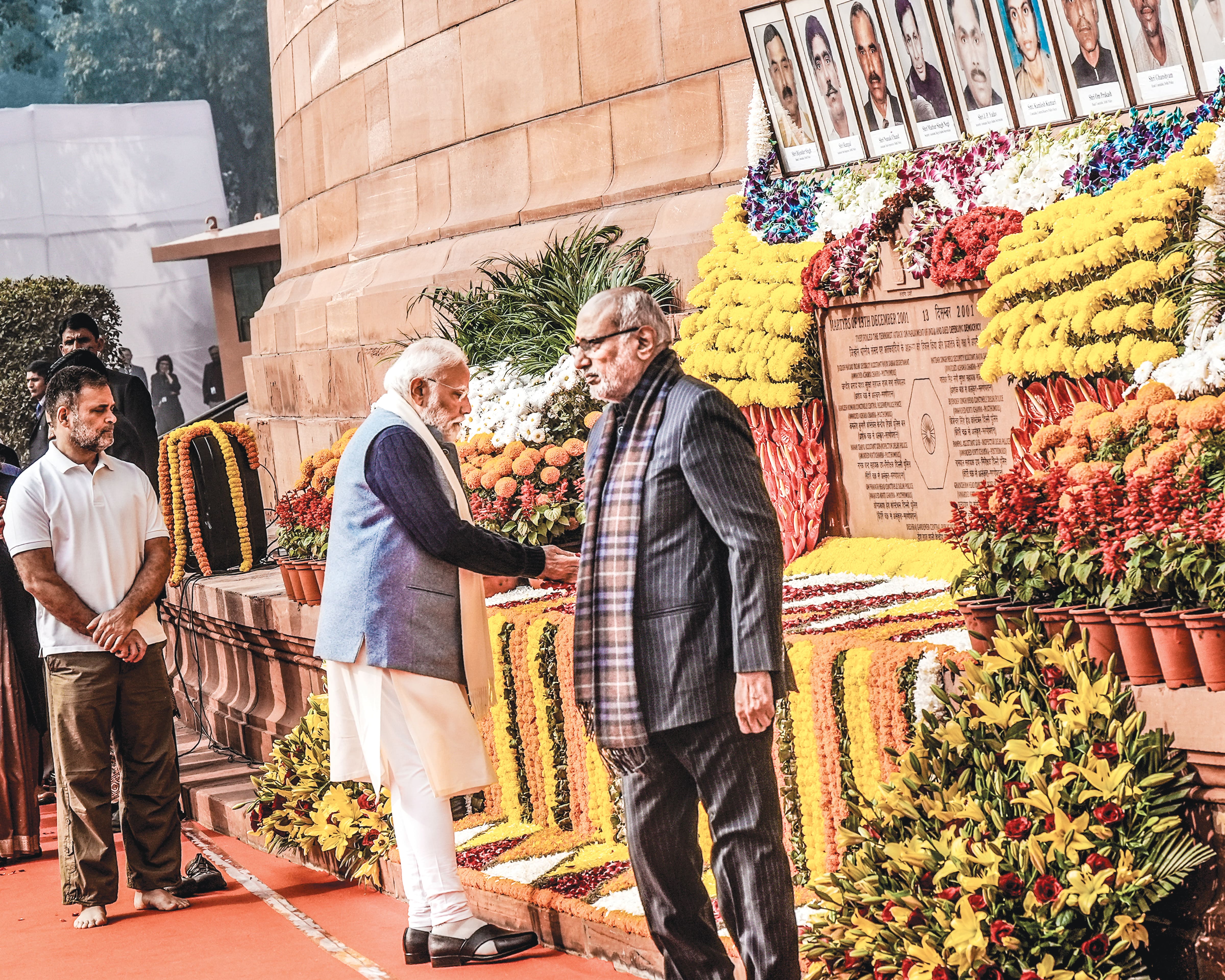 2001ರಲ್ಲಿ ಸಂಸತ್ ಭವನದ ಮೇಲೆ ಉಗ್ರರು ನಡೆಸಿದ ದಾಳಿಯಲ್ಲಿ ಪ್ರಾಣ ಕಳೆದುಕೊಂಡ 8 ಸಮವಸ್ತ್ರಧಾರಿ ಸಿಬ್ಬಂದಿ ಸೇರಿ 10 ಜನರಿಗೆ ಉಪರಾಷ್ಟ್ರಪತಿ ಸಿ. ಪಿ. ರಾಧಾಕೃಷ್ಣನ್ ನೇತೃತ್ವದಲ್ಲಿ ಸಂಸದರು ಶನಿವಾರ ಪುಷ್ಪನಮನ ಸಲ್ಲಿಸಿದರು. ಈ ಕಾರ್ಯಕ್ರಮದಲ್ಲಿ ಪ್ರಧಾನಿ ನರೇಂದ್ರ ಮೋದಿ ಕೂಡ ಭಾಗಿಯಾಗಿದ್ದರು.