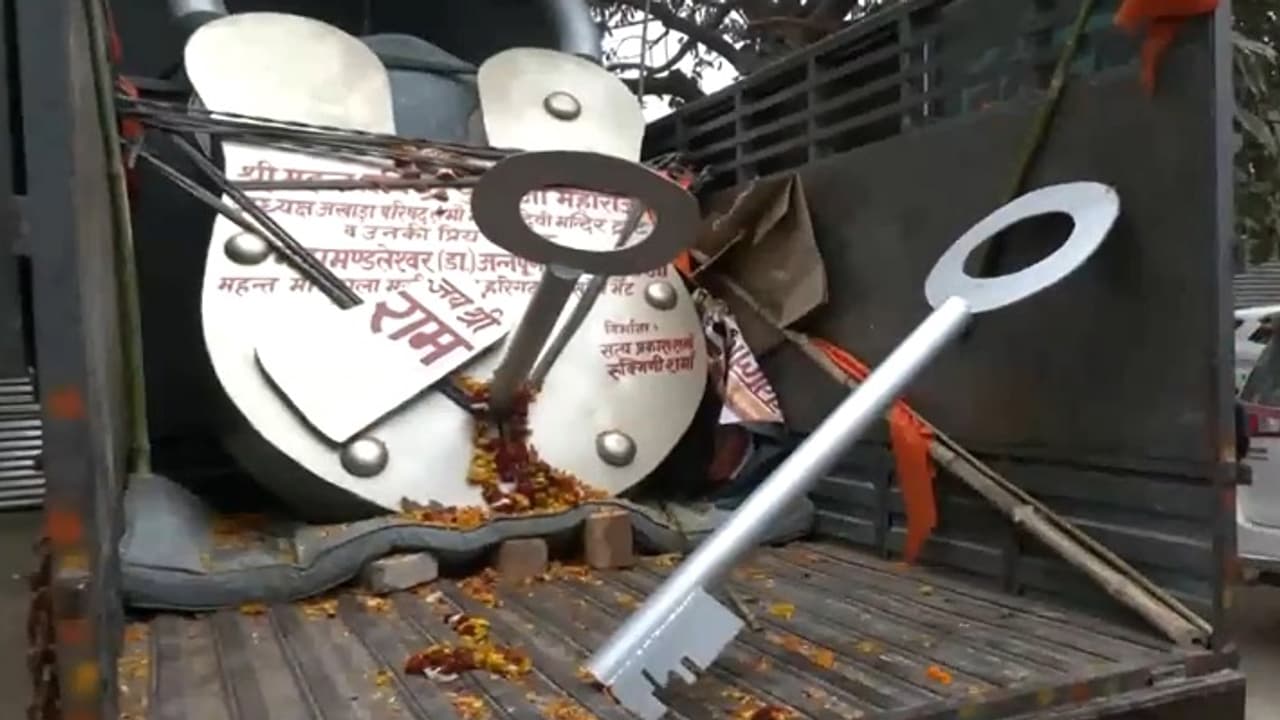 ಅಲಿಗಢ (ಉತ್ತರ ಪ್ರದೇಶ): ಬೀಗಗಳ ತಯಾರಿಕೆಗೆ ಖ್ಯಾತಿ ಪಡೆದಿರುವ ಅಲಿಗಢದ ಬೀಗ ತಯಾರಕರೊಬ್ಬರು ರಾಮ ಮಂದಿರಕ್ಕೆಂದೇ ವಿಶೇಷವಾದ 50 ಕೇಜಿ ತೂಕದ ಬೃಹತ್ ಬೀಗವನ್ನು ಸಿದ್ಧಪಡಿಸಿ ಶನಿವಾರ ರಾಮ ಮಂದಿರಕ್ಕೆ ಅರ್ಪಿಸಿದ್ದಾರೆ.