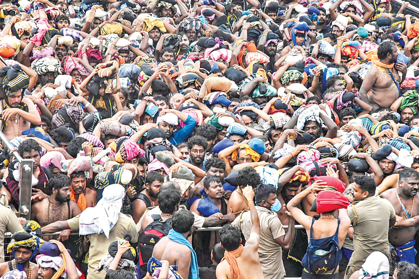 ತಡೆಹಿಡಿಯಲು ಅಗತ್ಯ ಕ್ರಮ‘ಈವರೆಗೆ ನಾನು ಇಷ್ಟೊಂದು ದೊಡ್ಡ ಗುಂಪನ್ನು ದೇವಸ್ಥಾನ ಮೈದಾನದಲ್ಲಿ ನೋಡಿಯೇ ಇಲ್ಲ. ಪಂಬಾಗೆ ವ್ರತಾಧಾರಿಗಳ ಮಹಾಪೂರವೇ ಹರಿದು ಬರುತ್ತಿದ್ದು, ಇದನ್ನು ನಿಯಂತ್ರಿಸಲು ಸಮೀಪದ ನೀಲಕ್ಕಲ್ನಲ್ಲೇ ಭಕ್ತರನ್ನು ಕೆಲಕಾಲ ತಡೆದು ನಿಲ್ಲಿಸುವಂತೆಯೂ ಸೂಚಿಸಲಾಗಿದೆ. ಈ ಮೂಲಕ ಈಗಾಗಲೇ ಪಂಬಾದಲ್ಲಿರುವ ಭಕ್ತರು ನಾಲ್ಕೈದು ಗಂಟೆ ಸರದಿಯಲ್ಲಿ ನಿಲ್ಲುವ ಬದಲು ಆದಷ್ಟು ಶೀಘ್ರ ದರ್ಶನ ಮುಗಿಸಿ ವಾಪಸ್ ಹೋಗಲು ಅನುವು ಮಾಡಿಕೊಡಲಾಗುತ್ತಿದೆ’ ಎಂದು ಟಿಡಿಬಿ ಅಧ್ಯಕ್ಷ ಜಯಕುಮಾರ್ ಹೇಳಿದರು.