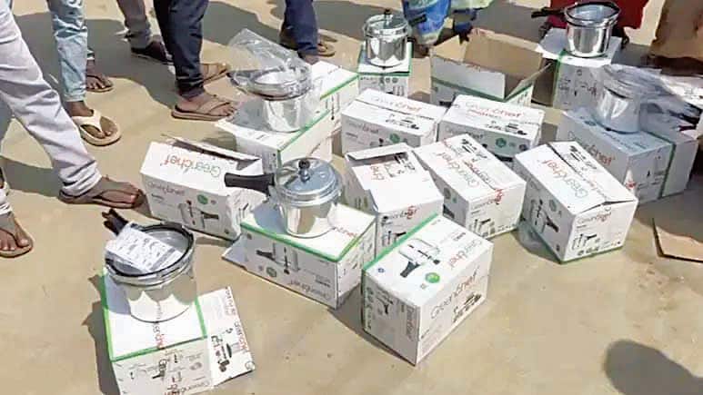 ಫೆ.11ರಂದು ಆಶ್ವರಾವ್ಪೇಟೆ ಪುರಸಭೆಗೆ ಚುನಾವಣೆ ನಡೆದಿತ್ತು. ಕಾಂಗ್ರೆಸ್ ಅಭ್ಯರ್ಥಿ ಎಂ. ಹರಿಬಾಬು ಪ್ರಚಾರದ ಸಮಯದಲ್ಲಿ ಹಣ ಮತ್ತು ಪ್ರೆಶರ್ ಕುಕ್ಕರ್ಗಳು ಸೇರಿದಂತೆ ಗೃಹೋಪಯೋಗಿ ವಸ್ತುಗಳನ್ನು ವಿತರಿಸಿದ್ದರು. ಆದರೆ ಮತ ಎಣಿಕೆಗೂ ಮುನ್ನ ಇದ್ದಕ್ಕಿದ್ದಂತೆ ಹರಿಬಾಬುಗೆ ಸೋಲಿನ ಆತಂಕ ಶುರುವಾಗಿತ್ತು. ತನಗೆ ಕೆಲ ವ್ಯಕ್ತಿಗಳು ಮತ ಚಲಾಯಿಸಿಲ್ಲ ಎಂಬ ಅನುಮಾನ ವ್ಯಕ್ತಪಡಿದ ಕಾಂಗ್ರೆಸ್ ಅಭ್ಯರ್ಥಿ, ಶಂಕೆ ಇರುವ 2500 ಮತದಾರರ ಬಳಿ, ತಾನು ನೀಡಿದ್ದ ಹಣ, ಕುಕ್ಕರ್ ಮರಳಿಸುವಂತೆ ಆಗ್ರಹಿಸಿದ್ದಾರೆ.ಇದರಿಂದ ರೋಸಿ ಹೋದ ಮತದಾರರು ಗುರುವಾರ, ‘ನಾವೇನೂ ನಿಮಗೆ ಕುಕ್ಕರ್, ಹಣ ಕೊಡು ಎಂದಿರಲಿಲ್ಲ. ಕೊಟ್ಟ ನಂತರ ಅವನ್ನು ವಾಪಸು ಕೇಳುವುದು ಸರಿಯೇ? ಈಗ ನಮ್ಮನ್ನು ಏಕೆ ಅವಮಾನಿಸಲಾಗುತ್ತಿದೆ? ಅಭ್ಯರ್ಥಿಯು ನಮ್ಮನ್ನು ಬೆದರಿಸಲು ಪ್ರಯತ್ನಿಸುತ್ತಿದ್ದಾರೆ’ ಎಂದು ರಸ್ತೆಯ ಮಧ್ಯೆ ಅವನ್ನು ಇರಿಸಿ ಪ್ರತಿಭಟನೆ ಆರಂಭಿಸಿದ್ದರು. ಆಗ ಉದ್ವಿಗ್ನತೆ ಉಂಟಾಗಿ ಪೊಲೀಸರು ಮಧ್ಯಪ್ರವೇಶಿಸಿ ಮತದಾರರನ್ನು ಸಮಾಧಾನಪಡಿಸಿ ವಾಪಸು ಕಳಿಸಿದ್ದರು. ಕೆಲವು ವ್ಯಕ್ತಿಗಳನ್ನು ತಾತ್ಕಾಲಿಕವಾಗಿ ವಶಕ್ಕೆ ಪಡೆದು ನಂತರ ಬಿಟ್ಟು ಕಳಿಸಿದ್ದರು.