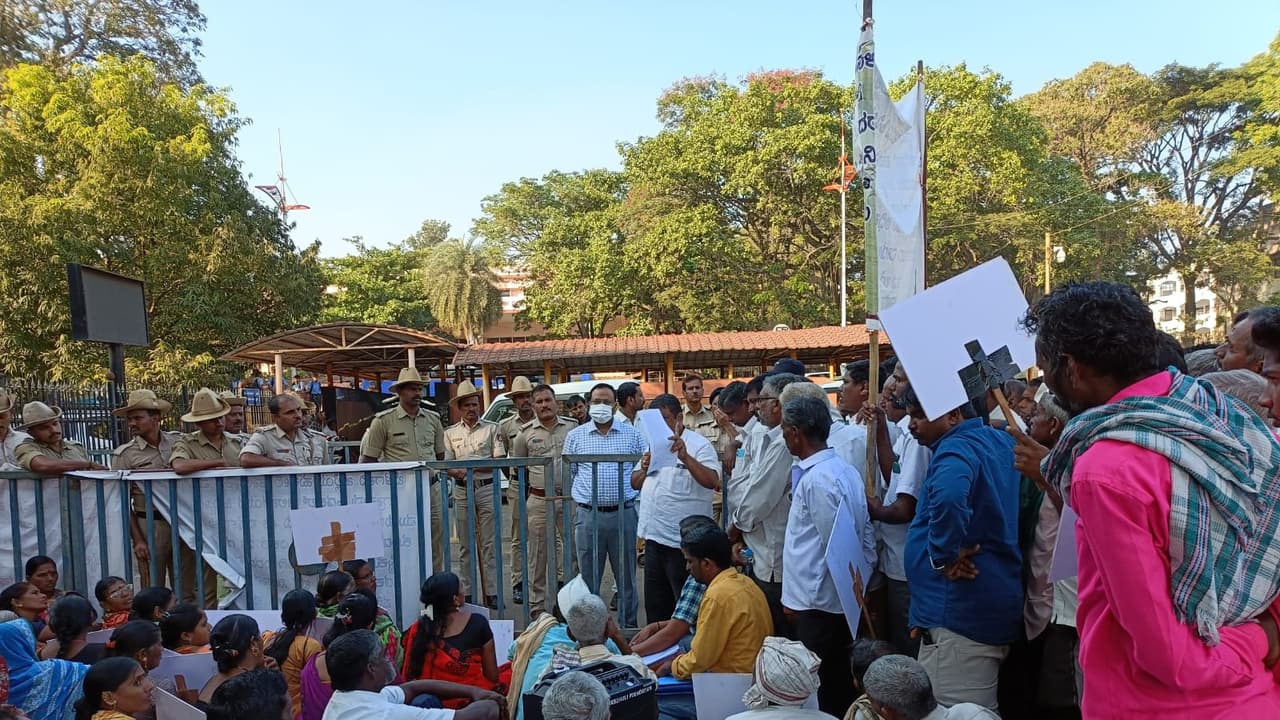 ಹಿಡಕಲ್ ಡ್ಯಾಂ ಹಿನ್ನೀರಿನಿಂದ ಮುಳುಗಡೆಯಾದ ಭೂಮಿಗೆ ಸರ್ಕಾರ ಶೀಘ್ರವೇ ಪರಿಹಾರ ನೀಡುವಂತೆ ಒತ್ತಾಯಿಸಿ ಮಾಸ್ತಿಹೊಳಿ ಗ್ರಾಮದ ರೈತರು ಜಿಲ್ಲಾಧಿಕಾರಿಗಳ ಕಚೇರಿ ಎದುರು ನಿರಂತರ ಧರಣಿ ನಡೆಸಿದರು.
