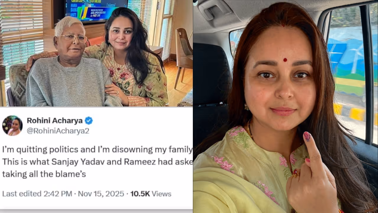 ಈ ಕುರಿತು ಮಾರ್ಮಿಕವಾಗಿ ಟ್ವೀಟ್ ಮಾಡಿರುವ ರೋಹಿಣಿ, ‘ಸೋಲಿನ ಎಲ್ಲಾ ಹೊಣೆಯನ್ನು ನಾನು ಹೊರುತ್ತಿದ್ದೇನೆ. ಸಂಜಯ್ ಯಾದವ್ ಮತ್ತು ರಮೀಜ್ ಸೂಚನೆಯಂತೆ ರಾಜಕೀಯ ಮತ್ತು ಕುಟುಂಬವನ್ನು ತೊರೆಯುತ್ತಿದ್ದೇನೆ’ ಎಂದು ಹೇಳಿದ್ದಾರೆ.
