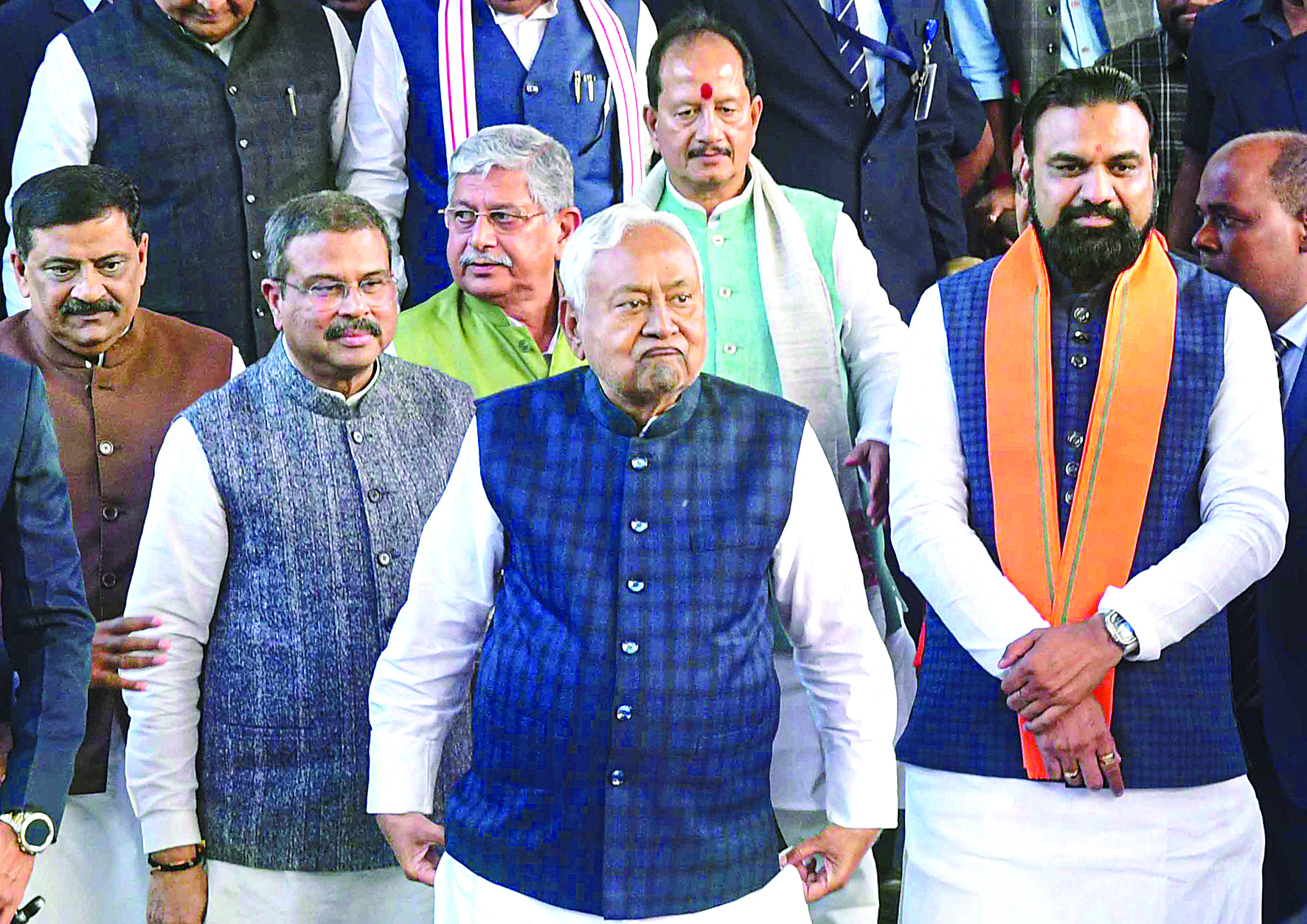 ಪಟ್ನಾ: ಪ್ರಧಾನಿ ನರೇಂದ್ರ ಮೋದಿ, ಗೃಹ ಸಚಿವ ಅಮಿತ್ ಶಾ ಸೇರಿ ಎನ್ಡಿಎ ಮೈತ್ರಿಕೂಟದ ಮುಖ್ಯಮಂತ್ರಿಗಳು, ಹಲವು ನಾಯಕರ ಸಮ್ಮುಖದಲ್ಲಿ ಜೆಡಿಯು ಹಿರಿಯ ಮುಖಂಡ ನಿತೀಶ್ ಕುಮಾರ್ ಅವರು 10ನೇ ಬಾರಿಗೆ ಬಿಹಾರ ಮುಖ್ಯಮಂತ್ರಿಯಾಗಿ ಪ್ರಮಾಣ ವಚನ ಸ್ವೀಕರಿಸಿದ್ದಾರೆ. ಈ ಮೂಲಕ ಬಿಹಾರದ ಇತಿಹಾಸದಲ್ಲಿ ಅತಿಹೆಚ್ಚು ಬಾರಿ ಮುಖ್ಯಮಂತ್ರಿ ಹುದ್ದೆ ಅಲಂಕರಿಸಿದ ಕೀರ್ತಿಗೆ ನಿತೀಶ್ ಭಾಜನರಾಗಿದ್ದಾರೆ.