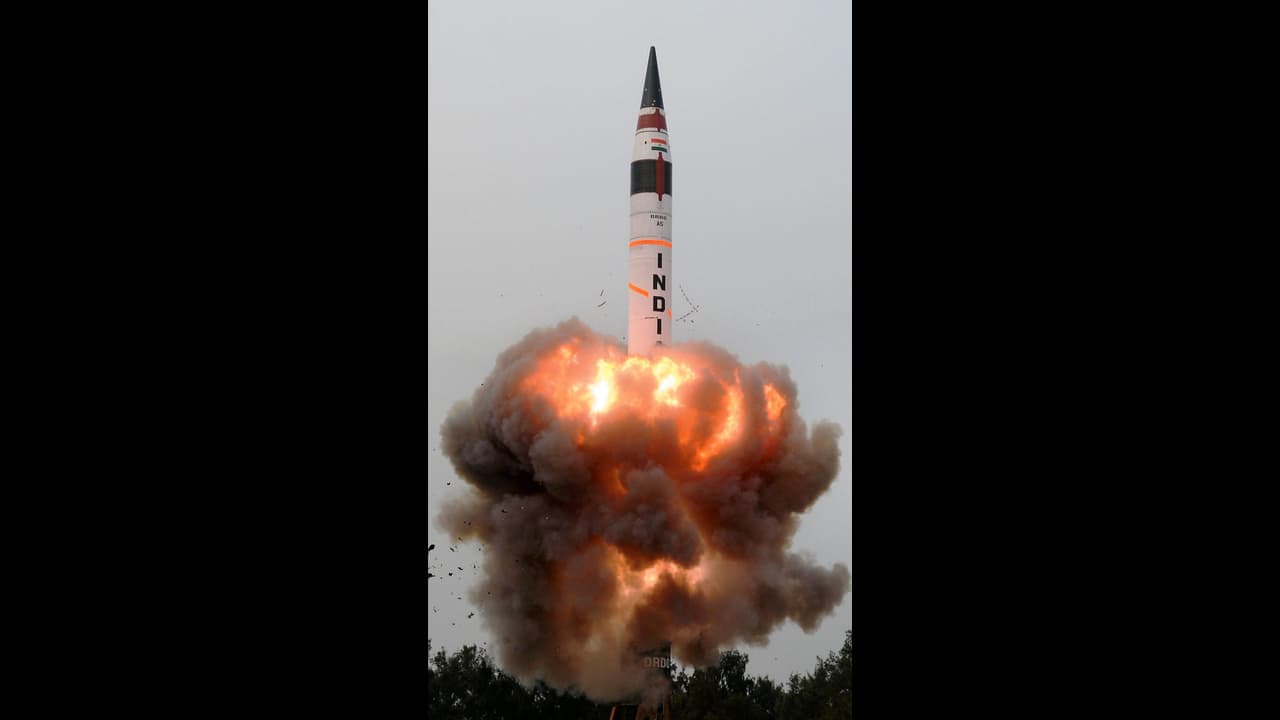 ಅಗ್ನಿ-5 ಅಣ್ವಸ್ತ್ರ ಸಿಡಿತಲೆಗಳನ್ನು ಹೊತ್ತೊಯ್ದು 5000ರಿಂದ 6000 ಕಿ.ಮೀ ದೂರದ ಗುರಿಯ ಮೇಲೆ ದಾಳಿ ನಡೆಸುವ ಸಾಮರ್ಥ್ಯ ಹೊಂದಿರುವ ಸ್ವದೇಶಿ ತಂತ್ರಜ್ಞಾನದ ಕ್ಷಿಪಣಿ.