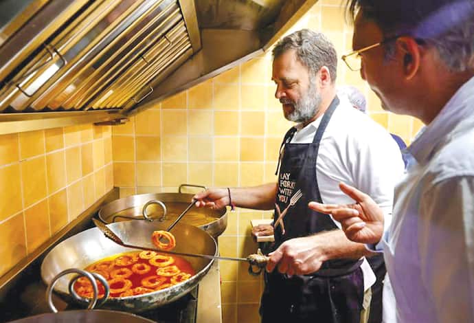 ನವದೆಹಲಿ: ದೇಶ ದೀಪಾವಳಿ ಆಚರಣೆಯಲ್ಲಿ ತೊಡಗಿರುವ ಹೊತ್ತಿನಲ್ಲಿ, ಲೋಕಸಭೆ ವಿಪಕ್ಷ ನಾಯಕ ರಾಹುಲ್ ಗಾಂಧಿ ಅವರು ಜಹಾಂಗೀರ್ ಮತ್ತು ಬೇಸನ್ ಉಂಡೆ ತಯಾರಿಸಿ ಸಂಭ್ರಮಿಸಿದ್ದಾರೆ. ದೆಹಲಿಯ ಖ್ಯಾತ ಘಂಟೇವಾಲಾ ಮಿಠಾಯಿ ಅಂಗಡಿಗೆ ತರಳಿದ ರಾಹುಲ್, ಅಲ್ಲಿ ತಮ್ಮ ಪಾಕಕಲೆ ಪ್ರದರ್ಶಿಸಿದ್ದಾರೆ. ತಮ್ಮ ಎಕ್ಸ್ ಖಾತೆಯಲ್ಲಿ ಇದರ ವಿಡಿಯೋವನ್ನು ರಾಹುಲ್ ಹಂಚಿಕೊಂಡಿದ್ದು, ಅದರಲ್ಲಿ ಅವರು ಬಾಣಸಿಗನಂತೆ ಏಪ್ರನ್, ತಲೆಗೆ ಟೋಪಿ ಧರಿಸಿ, ಕೈಯ್ಯಾರೆ ಜಹಾಂಗೀರನ್ನು ಎಣ್ಣೆಗೆ ಬಿಡುತ್ತಿರುವುದು ಹಾಗೂ ಬೇಸನ್ ಉಂಡೆ ತಯಾರಿಸುವುದನ್ನು ಕಾಣಬಹುದು.