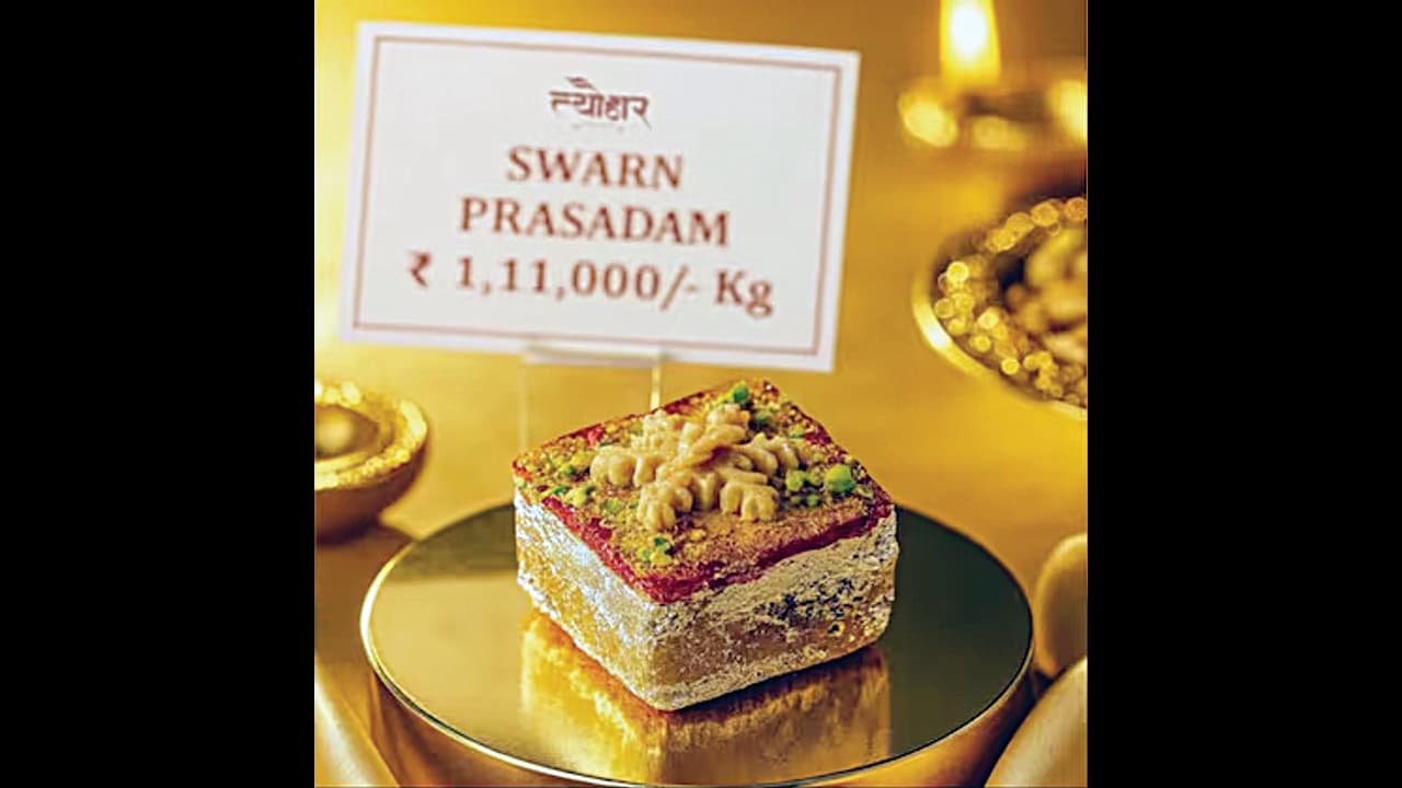 ಹಬ್ಬ ಹರಿದಿನಗಳಲ್ಲಿ ಸಿಹಿ ತಿಂಡಿಗಳಿಗೆ ವಿಶೇಷ ಸ್ಥಾನಮಾನವಿದೆ. ಆದರೆ ಜೈಪುರದ ಉದ್ಯಮಿ ಮಹಿಳೆ ಅಂಜಲಿ ಜೈನ್ ಈ ಸಿಹಿತಿಂಡಿಗಳನ್ನು ಮತ್ತೊಂದು ಹಂತಕ್ಕೆ ತೆಗೆದುಕೊಂಡು ಹೋಗಿದ್ದಾರೆ. ಅದರ ಭಾಗವಾಗಿ ಸ್ವರ್ಣ್ ಪ್ರಸಾದ ಎಂಬ ಸಿಹಿ ತಿಂಡಿಯನ್ನು ತಯಾರಿಸಿದ್ದಾರೆ. ಈ ತಿಂಡಿ ಕೇಜಿಗೆ 1.11 ಲಕ್ಷ ರು. ಅಷ್ಟೇ!!