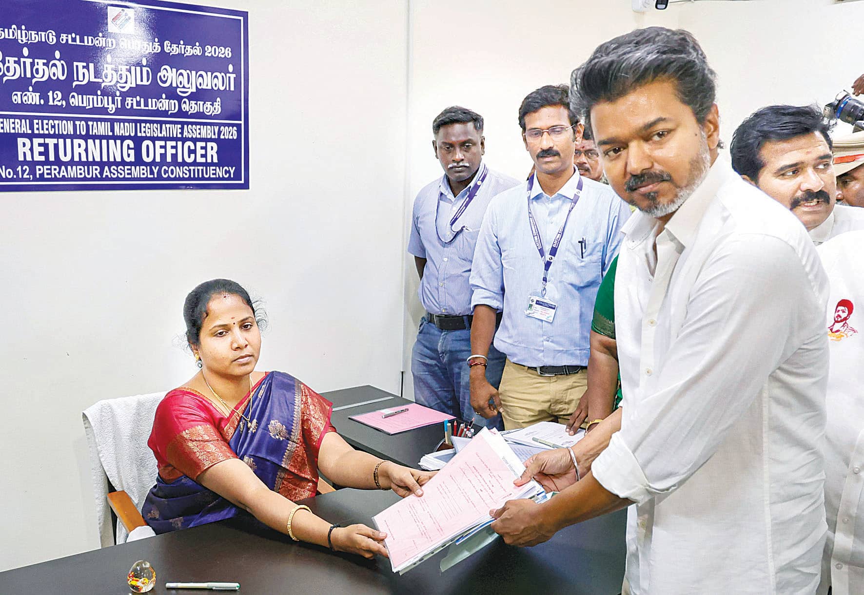 - ಚೊಚ್ಚಲ ಚುನಾವಣೆಗೆ ನಟ ವಿಜಯ್ ನಾಮಪತ್ರ ಸಲ್ಲಿಕೆ