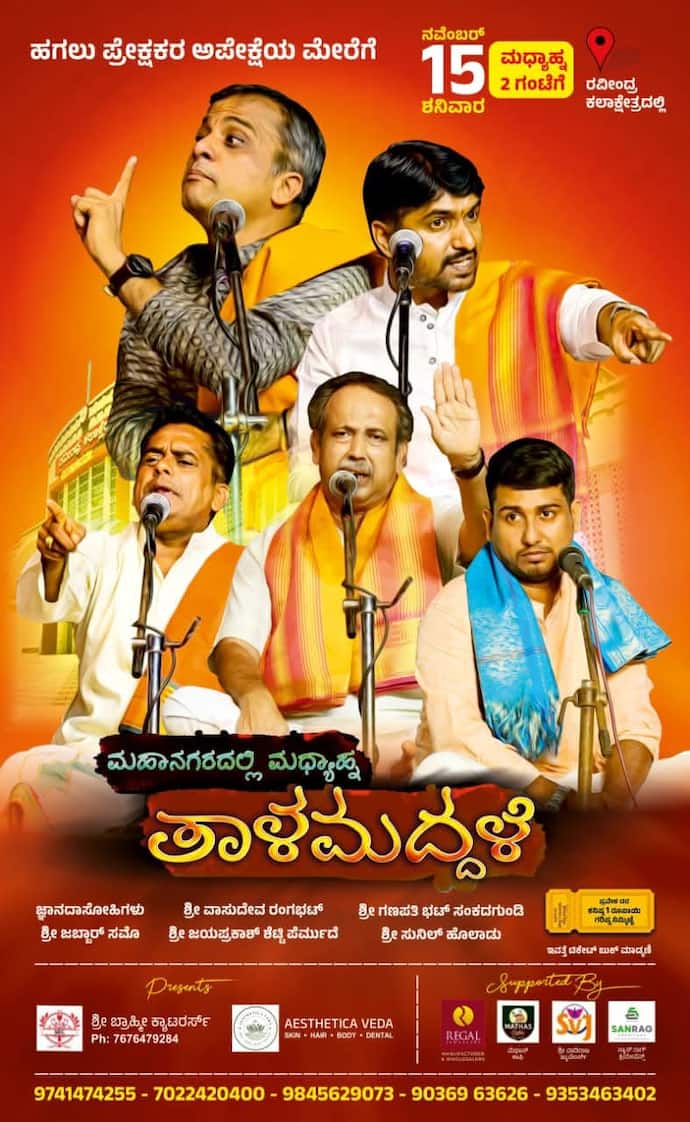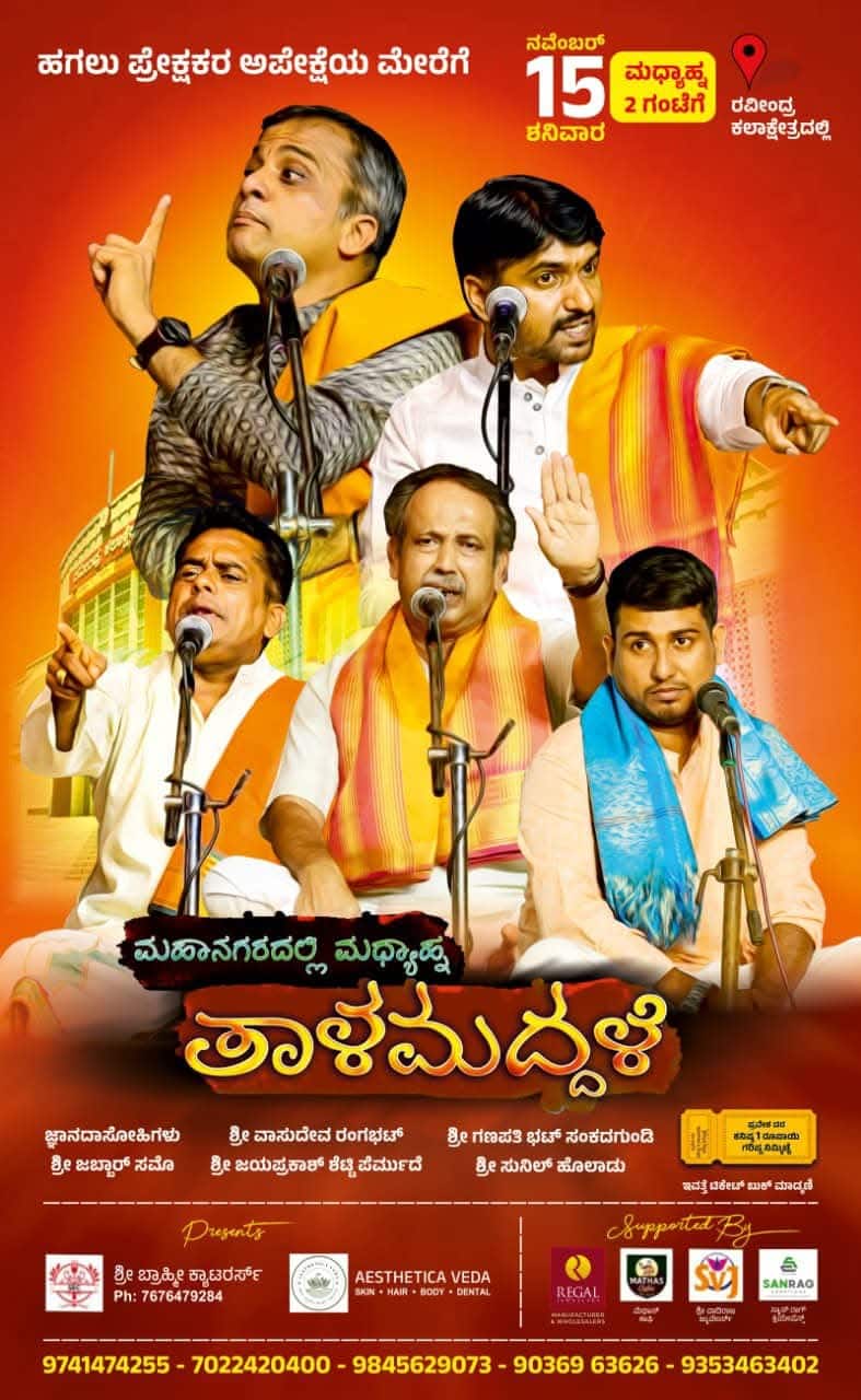 ನಾಗರಾಜ್ ನೈಕಂಬ್ಳಿ — 97414 74255ರಾಜೇಶ್ ಕೊಂಡಳ್ಳಿ — 93534 63402ಬೆಂಗಳೂರಿನ ಕಲಾಪ್ರೇಮಿಗಳಿಗಾಗಿ ಇದು ಕೇವಲ ಒಂದು ತಾಳಮದ್ದಳೆ ಕಾರ್ಯಕ್ರಮವಲ್ಲ — ಆಲೋಚನೆ, ಸಂವಾದ ಮತ್ತು ಪುರಾಣ ಜ್ಞಾನ ಸಂಭ್ರಮದ ಮಧ್ಯಾಹ್ನ. ತಾಳಮದ್ದಳೆಯ ಈ ರಸದೌತಣವನ್ನು ಮಿಸ್ ಮಾಡಿಕೊಳ್ಳಬೇಡಿ!