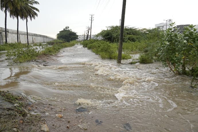 ರಾತ್ರಿ ಶುರುವಾದ ಮಳೆ ಬೆಳಗ್ಗೆಯವರೆಗೆ ನಿರಂತರವಾಗಿ ಸುರಿಯಿತು. ನಾಲೆ ಕಿರಿದಾಗಿದ್ದ ಪರಿಣಾಮ ಪ್ರತಿ ಬಾರಿ ಮಳೆ ಬಂದಾಗಲೂ ನಾಲೆ ಉಕ್ಕಿ ಹರಿಯುವುದು ಸಾಮಾನ್ಯವಾಗಿದೆ. ಇತ್ತೀಚೆಗಷ್ಟೇ ಕಾಲುವೆ ಅಗಲೀಕರಣ ಮಾಡಲಾಗಿತ್ತಾದರೂ ಹೆಚ್ಚುವರಿ ನೀರು ಹರಿದುಬಂದ ಸಮಯದಲ್ಲಿ ಹರಿದುಹೋಗಲು ಬಿಟ್ಟಿದ್ದ ಕಾಲುವೆಯನ್ನು ಕಾಮಗಾರಿ ವೇಳೆ ಮುಚ್ಚಿದ್ದರು. ಇದರ ಪರಿಣಾಮ ಹೆಚ್ಚುವರಿ ನೀರೆಲ್ಲವೂ ಕೆಎಚ್ಬಿ ಕಾಲೋನಿಯ ಕಡೆಗೆ ನುಗ್ಗಿದ್ದರಿಂದ ಅರ್ಧದಷ್ಟು ಬಡಾವಣೆ ಜಲಾವೃತಗೊಂಡಿದೆ.ಜೆಎಸ್ಎಸ್ ಪಬ್ಲಿಕ್ ಶಾಲೆ ಜಲಾವೃತ: