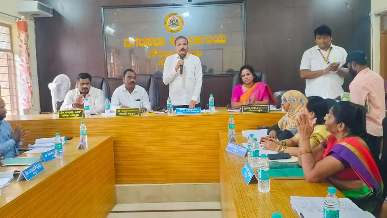 ಲಿಖಿತ ರೂಪದಲ್ಲಿ ನೀಡಿದರೆ ಕ್ರಮಶಾಸಕ ಕೆ ಎಚ್ ಪುಟ್ಟಸ್ವಾಮಿ ಗೌಡ ಮಾತನಾಡಿ, ನಗರದ ಅಭಿವೃದ್ಧಿಗೆ ಪೂರಕವಾದ ಕೆಲಸಗಳು ನಡೆಯುತ್ತಿವೆ. ವೇಗವಾಗಿ ಬೆಳೆಯುತ್ತಿರುವ ನಗರದ ಬೆಳವಣಿಗೆಗೆ ತಕ್ಕಂತೆ ಹೊಸ ಯೋಜನೆಗಳನ್ನು ರೂಪಿಸಲಾಗುತ್ತಿದೆ, ನಗರಸಭೆಗೆ ಸಂಬಂಧಪಟ್ಟ ಯಾವುದೇ ದೂರುಗಳಿದ್ದಲ್ಲಿ ಲಿಖಿತ ರೂಪದಲ್ಲಿ ನೀಡಿದರೆ, ತಕ್ಷಣ ಪರಿಹರಿಸುವುದಾಗಿ ತಿಳಿಸಿದರು.ನಗರಸಭೆ ಪೌರಾಯುಕ್ತೆ ಡಿ ಎಂ ಗೀತಾ ಮಾತನಾಡಿ, ನಗರಸಭೆಯಲ್ಲಿ ನಡೆಯುತ್ತಿರುವ ಎಲ್ಲಾ ಕೆಲಸಗಳು ಪಾರದರ್ಶಕತೆಯಿಂದ ಹಾಗೂ ಸರ್ಕಾರದ ನಿಯಮಗಳ ಪ್ರಕಾರ ನಡೆಯುತ್ತಿವೆ ಎಂದು ಅವರು ವಿವರಿಸಿದರು. ಈ ಸಂದರ್ಭದಲ್ಲಿ ನಗರಸಭೆ ಅಧ್ಯಕ್ಷರಾದ ಲಕ್ಷ್ಮೀ ನಾರಾಯಣಪ್ಪ, ಉಪಾಧ್ಯಕ್ಷ ಫರೀದ್, ಸದಸ್ಯರಾದ, ಕಲೀಮ್ ಉಲ್ಲಾ,ರಮೇಶ್, ಶ್ರೀರಾಮಪ್ಪ, ಮಂಜುಳಾರಾಮಾಂಜಿ , ಪದ್ಮಾವತಮ್ಮ, ಮೊಬೈನ್ ತಾಜ್, ಪುಣ್ಯವತಿ ಜಯಣ್ಣ, ಗೋಪಿನಾಥ್, ರಮೇಶ್, ಸಾವಿತ್ರಮ್ಮ, ಗಾಯತ್ರಿ ಬಸವರಾಜು, ಭಾಗ್ಯಮ್ಮ, ರಾಜೇಶ್ವರಿ ಮೈಲಾರಿ, ಗೋಪಾಲಪ್ಪ, ಸಪ್ತಗಿರಿ,ಅಮರ್ನಾಥ್, ಗಿರೀಶ್, ರೂಪ ಅನಂತರಾಜು, ವೆಂಕಟ ರೆಡ್ಡಿ, ಮತ್ತು ಅಧಿಕಾರಿಗಳು, ಸಿಬ್ಬಂದಿ ವರ್ಗ ಉಪಸ್ಥಿತರಿದ್ದರು.