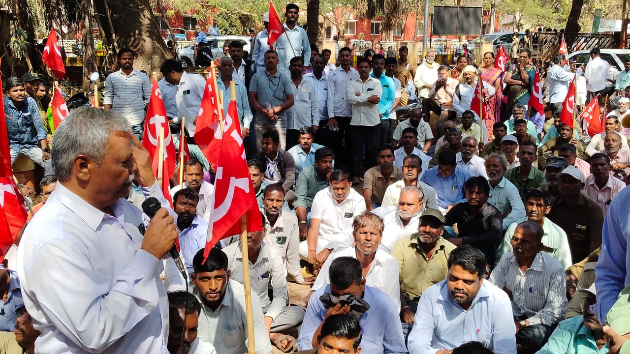 ಅಗತ್ಯ ವಸ್ತುಗಳ ಬೆಲೆ ಏರಿಕೆ ನಿಯಂತ್ರಿಸುವುದು ಹಾಗೂ ಬಡವರ ಪರ ನೀತಿಗಳನ್ನು ಜಾರಿಗೆ ತರುವುದು ಸೇರಿದಂತೆ ವಿವಿಧ ಬೇಡಿಕೆಗಳನ್ನು ಈಡೇರಿಸುವಂತೆ ಒತ್ತಾಯಿಸಿ ಬುಧವಾರ ಸಿಟಿಐಟಿಯು ನೇತೃತ್ವದಲ್ಲಿ ಕರ್ನಾಟಕ ರಾಜ್ಯ ಗ್ರಾಮ ಪಂಚಾಯತ ನೌಕರರ ಸಂಘ ಸಂಸದ ಕಚೇರಿ ಎದುರು ಪ್ರತಿಭಟನೆ ನಡೆಸಿ ಸಂಸದೆ ಮಂಗಳಾ ಅಂಗಡಿ ಅವರಿಗೆ ಮನವಿ ಸಲ್ಲಿಸಿದರು.ಕೇಂದ್ರದ ಕಾರ್ಮಿಕ ವಿರೋಧಿ ನೀತಿಗಳನ್ನು ಖಂಡಿಸಿ ಸಿಐಟಿಯು ನೇತೃತ್ವದಲ್ಲಿ ನಡೆಯುತ್ತಿರುವ ಕಾರ್ಮಿಕರ ಪ್ರತಿಭಟನೆ ಎರಡನೇ ದಿನವಾದ ಬುಧವಾರವೂ ಮುಂದುವರೆಯಿತು.ರೈತ ವಿರೋಧಿ ಕೃಷಿ ಕಾಯ್ದೆಗಳನ್ನು ಹಿಂಪಡೆಯಬೇಕು, ರೈತರ ಬೆಳೆಗಳಿಗೆ ಲಾಭದಾಯಕ ಬೆಂಬಲ ಬೆಲೆ ನಿಗದಿಪಡಿಸಬೇಕು, ರಸಗೊಬ್ಬರ ಸೇರಿದಂತೆ ಕೃಷಿ ಸಾಮಗ್ರಿಗಳಿಗೆ ಸಬ್ಸಿಡಿ ಕಡಿತಗೊಳಿಸುವ ನೀತಿಗಳನ್ನು ಕೈಬಿಡಬೇಕು. ರೈಲ್ವೆ, ವಿದ್ಯುತ್ ಸೇರಿದಂತೆ ಎಲ್ಲ ಕ್ಷೇತ್ರವನ್ನು ಖಾಸಗೀಕರಣಗೊಳಿಸುವುದನ್ನು ಕೈಬಿಡಬೇಕು. ಗ್ರಾಪಂ ನೌಕರರಿಗೆ ಕನಿಷ್ಠ ವೇತನ ₹ 31 ಸಾವಿರ ಹಾಗೂ ₹6 ಸಾವಿರ ಪಿಂಚಣಿ ನಿಗದಿಗೊಳಿಸಬೇಕು ಎಂದು ಒತ್ತಾಯಿಸಿದರು.ಐಪಿಡಿ ಸಾಲಪ್ಪ ವರದಿಯಂತೆ ಸ್ವಚ್ಛತಾಗಾರರನ್ನು ನೇಮಿಸಬೇಕು. ಸೇವಾ ಹಿರಿತನದ ಆಧಾರದ ಮೇಲೆ ವೇತನ ಹೆಚ್ಚಳ ಮಾಡುವುದು, ತೀವ್ರವಾದ ಅನಾರೋಗ್ಯಕ್ಕೆ ತುತ್ತಾದ ನೌಕರರಿಗೆ ಆಸ್ಪತ್ರೆ ವೆಚ್ಚ ಭರಿಸಬೇಕು. ಗುತ್ತಿಗೆ ಮತ್ತು ಹೊರಗುತ್ತಿಗೆ ನೇಮಕಾತಿ ರದ್ದುಗೊಳಿಸಬೇಕು, ಗ್ರಾಪಂಗಳಲ್ಲಿ ಕಾರ್ಯನಿರ್ವಹಿಸುವ ನೌಕರರಿಗೆ ವರ್ಗಾವಣೆ ಅವಕಾಶ ಕಲ್ಪಿಸಬೇಕು. ಆದಾಯಕ್ಕೆ ಅನುಗುಣವಾಗಿ ಕರವಸೂಲಿಗಾರರ ಹುದ್ದೆಗಳನ್ನು ನಿಗದಿಗೊಳಿಸುವುದು ವಿವಿಧ ಬೇಡಿಕೆ ಈಡೇರಿಸುವಂತೆ ಪ್ರತಿಭಟನಾಕಾರರು ಆಗ್ರಹಿಸಿದರು.