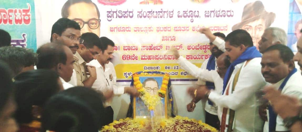 ಪಟ್ಟಣದಲ್ಲಿ ಶನಿವಾರ ಡಾ.ಅಂಬೇಡ್ಕರ್ ೬೯ನೇ ಮಹಾಪರಿನಿರ್ವಾಣ ದಿನಾಚರಣೆ ಅಂಗವಾಗಿ ಮಾನವ ಬಂಧುತ್ವ ವೇದಿಕೆ ಮತ್ತು ಪ್ರಗತಿಪರ ಸಂಘಟನೆಗಳ ಒಕ್ಕೂಟಗಳ ನೂತನ ಕಚೇರಿ ಉದ್ಘಾಟಿಸಿ ಮಾತನಾಡಿದರು. ಪಟ್ಟಣದಲ್ಲಿ ವಿಸ್ತರಣೆ ಆಗುತ್ತಿರುವ ಮುಖ್ಯ ರಸ್ತೆ ಅಗಲೀಕರಣಕ್ಕೆ ಸ್ಪಂದಿಸದ ವರ್ತಕರಿಗೆ ವ್ಯಾಪಾರ ಮಾಡಲು ಅವಕಾಶ ನೀಡಬೇಡಿ ಎಂದು ತಹಶೀಲ್ದಾರ್ ಸೈಯದ್ ಕಲೀಂ ಉಲ್ಲಾ ಲೋಕೋಪಯೋಗಿ ಇಲಾಖೆಯ ಎಂಜಿನಿಯರ್, ಪಟ್ಟಣ ಪಂಚಾಯಿತಿ ಮುಖ್ಯಾಧಿಕಾರಿ ಸಿ.ಲೋಕ್ಯಾನಾಯ್ಕ್ ಗೆ ಸೂಚನೆ ನೀಡಿದರು.ಕಾನೂನು ಸುಮ್ಮನೆ ಬಿಡೋದಿಲ್ಲ: