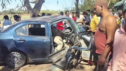 ರಸ್ತೆ ಪಕ್ಕದ ಮರಕ್ಕೆ ಕಾರು ರಭಸವಾಗಿ ಗುದ್ದಿದ ಪರಿಣಾಮ ಕಾರಿನ ಚಾಲಕ ಸೇರಿ ಆರು ಜನ ಮೃತಪಟ್ಟು ನಾಲ್ವರು ಗಂಭೀರವಾಗಿ ಗಾಯಗೊಂಡ ಘಟನೆ ಗುರುವಾರ ಮಧ್ಯಾಹ್ನ ಬೆಳಗಾವಿ ಜಿಲ್ಲೆಯ ಖಾನಾಪುರ ತಾಲೂಕಿನ ಮಂಗೇನಕೊಪ್ಪ ಗ್ರಾಮದ ಬಳಿ ಬೀಡಿ - ಕಿತ್ತೂರು ರಸ್ತೆಯಲ್ಲಿ ಸಂಭವಿಸಿದೆ.ಕಾರು ಚಾಲಕ, ಮಹಾರಾಷ್ಟ್ರದ ಕೊಲ್ಹಾಪುರ ಜಿಲ್ಲೆ ಶಹಾಪುರ ನಿವಾಸಿ ಶಾರುಕ್ ಪೆಂಡಾರಿ (30), ರಾಯಬಾಗ ತಾಲೂಕು ಹಾರೂಗೇರಿ ನಿವಾಸಿ ಇಕ್ಬಾಲ್ ಜಮಾದಾರ (50), ಅವರ ಪುತ್ರ ಫರಾನ್ ಲಂಗೋಟಿ (13), ಧಾರವಾಡ ನಗರದ ನಿವಾಸಿಗಳಾದ ಸಾನಿಯಾ ಲಂಗೋಟಿ (37), ಉಮರ್ಬೇಗಮ್ ಲಂಗೋಟಿ (17), ಶಬನಮ ಲಂಗೋಟಿ (37) ಮೃತಪಟ್ಟವರು.ಚನ್ನಮ್ಮನ ಕಿತ್ತೂರಿನ ಫರಾತ್ ಬೆಟಗೇರಿ (18), ಧಾರವಾಡದ ಸೋಫಿಯಾ ಲಂಗೋಟಿ (22), ಹಾರೂಗೇರಿಯ ಸಾನಿಯಾ ಇಕ್ಬಾಲ್ ಜಮಾದಾರ (36) ಮತ್ತು ಮಾಹಿನ್ ಲಂಗೋಟಿ (7) ಎಂಬ ನಾಲ್ವರು ಗಾಯಗೊಂಡಿದ್ದು, ಬೆಳಗಾವಿ ಜಿಲ್ಲಾಸ್ಪತ್ರೆಯಲ್ಲಿ ಚಿಕಿತ್ಸೆ ಪಡೆಯುತ್ತಿದ್ದಾರೆ. ಮಹಾರಾಷ್ಟ್ರದ ನೋಂದಣಿ ಹೊಂದಿದ್ದ ಕಾರಿನಲ್ಲಿ ಒಟ್ಟು 10 ಜನ ಪ್ರಯಾಣಿಸುತ್ತಿದ್ದು, ಅಪಘಾತದ ತೀವ್ರತೆಗೆ ನಾಲ್ವರು ಸ್ಥಳದಲ್ಲೇ ಸಾವನ್ನಪ್ಪಿ, ಇಬ್ಬರು ಆಸ್ಪತ್ರೆಗೆ ಸಾಗಿಸುವ ಮಾರ್ಗಮಧ್ಯದಲ್ಲಿ ಕೊನೆಯುಸಿರೆಳೆದಿದ್ದು, ನಾಲ್ವರು ಗಂಭೀರವಾಗಿ ಗಾಯಗೊಂಡಿದ್ದಾರೆ. ಧಾರವಾಡ ಮೂಲದ ಲಂಗೋಟಿ ಮತ್ತು ಹಾರೂಗೇರಿಯ ಜಮಾದಾರ ಕುಟುಂಬಗಳ ಸದಸ್ಯರು ತಾಲೂಕಿನ ಗೋಲಿಹಳ್ಳಿ ಗ್ರಾಮದ ತಮ್ಮ ಸಂಬಂಧಿಕರ ಮನೆಯಲ್ಲಿ ಗುರುವಾರ ಸಂಜೆ ನಡೆಯಲಿದ್ದ ಮದುವೆಗೆ ಧಾರವಾಡದಿಂದ ಕಿತ್ತೂರು, ಬೀಡಿ ಮಾರ್ಗವಾಗಿ ಕಾರಿನಲ್ಲಿ ಗೋಲಿಹಳ್ಳಿಯತ್ತ ಬರುತ್ತಿದ್ದರು. ಈ ಸಂದರ್ಭದಲ್ಲಿ ಅಪಘಾತ ಸಂಭವಿಸಿದೆ. ಘಟನಾ ಸ್ಥಳಕ್ಕೆ ಜಿಲ್ಲಾ ಪೊಲೀಸ್ ವರಿಷ್ಠಾಧಿಕಾರಿ ಡಾ. ಭೀಮಾಶಂಕರ ಗುಳೇದ, ಬೈಲಹೊಂಗಲ ಡಿಎಸ್ಪಿ ರವಿ ನಾಯ್ಕ, ಸಿಪಿಐ ಸೇರಿದಂತೆ ನಂದಗಡ ಪೊಲೀಸರು ಭೇಟಿ ನೀಡಿ ಪರಿಶೀಲಿಸಿದರು. ಈ ಕುರಿತು ನಂದಗಡ ಪೊಲೀಸ್ ಠಾಣೆಯಲ್ಲಿ ಪ್ರಕರಣ ದಾಖಲಾಗಿದೆ.