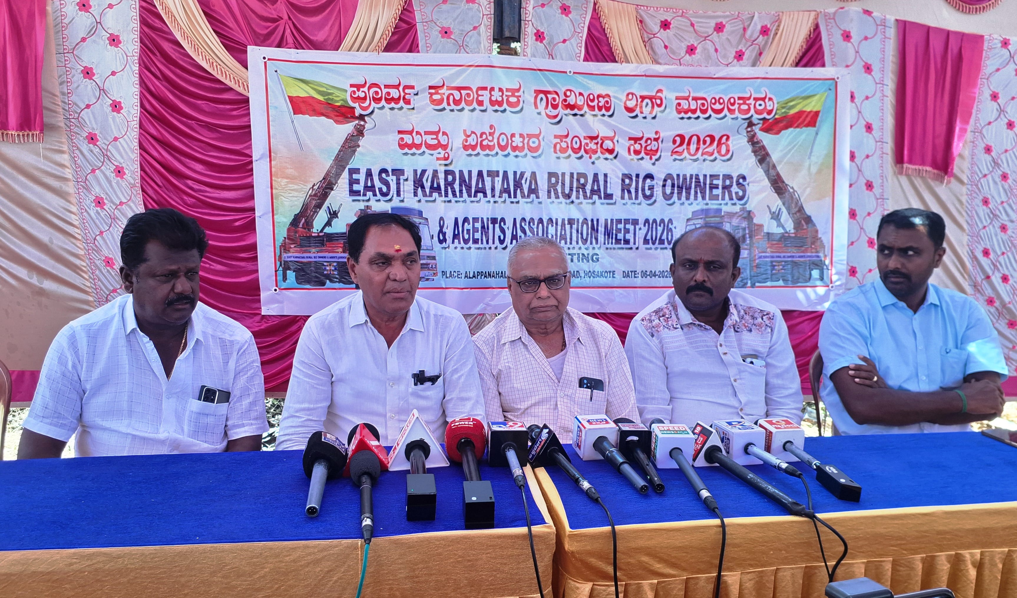 ಬೋರ್ವೆಲ್ ಮಾಲೀಕ ಜಗದೀಶ್ ಮಾತನಾಡಿ, ಸುಮಾರು ೬೦ ವರ್ಷಗಳಿಂದ ಈ ಬೊರ್ವೆಲ್ ಲಾರಿ ಇಟ್ಟುಕೊಂಡಿದ್ದು ಕೋಲಾರ, ಚಿಕ್ಕಬಳ್ಳಾಪುರ, ಬೆಂಗಳೂರು ಗ್ರಾಮಾಂತರ ಜಿಲ್ಲೆಯಲ್ಲಿ ಸುಮಾರು ನೂರಕ್ಕೂ ಹೆಚ್ಚು ಲಾರಿಗಳಿದ್ದು, ಸಾವಿರಕ್ಕೂ ಹೆಚ್ಚು ಜನ ಕೆಲಸ ಮಾಡುತ್ತಿದ್ಧಾರೆ. ರಿಗ್ ಬೆಲೆಯನ್ನು ಕಂಪನಿಯವರು ಷೇರು ಮಾರುಕಟ್ಟೆಯಂತೆ ಏರಿಕೆ ಮಾಡುತ್ತಿದ್ದಾರೆ. ಇದಕ್ಕೆ ಕಾರಣ ಗೊತ್ತಿಲ್ಲ. ಆದ್ದರಿಂದ ಈ ವಿಚಾರವಾಗಿ ಸರ್ಕಾರಕ್ಕೆ ಮನವಿ ಸಲ್ಲಿಸಲಿದ್ದು ಸರ್ಕಾರ ರಿಗ್ ಕಂಪನಿಯ ಬೆಲೆ ಏರಿಕೆಗೆ ಕಾರಣ ಹುಡುಕಿ ರೈತರ, ಲಾರಿ ಮಾಲೀಕರು, ಏಜೆಂಟರಿಗೆ ಅನುಕೂಲ ಕಲ್ಪಿಸಿಕೊಡಬೇಕಾಗಿದೆ ಎಂದರು.ಏಜೆಂಟರಾದ ಜಗದೀಶ್ ಸ್ವಾಮಿ, ರಿಗ್ ಮಾಲೀಕರಾದ ಚನ್ನಕೇಶವ, ಚರ್ಲಥನ್, ಸುಬ್ರಮಣಿ, ರಾಮಕೃಷ್ಣಶಂಕರ್, ಕುಮಾರನ್ ಪ್ರಕಾಶ್, ಪ್ರೀಮಿಯರ್ ಆನಂದ್, ಷಣ್ಮುಗ, ಎಸ್ಆರ್ಎಲ್ ರಾಜ, ಎಸ್ಎಸ್ವಿ ಪೆರಿಸ್ವಾಮಿ, ಅಂಬಾಲ್ ಶೇಖರ್, ರಾಜಕೃಷ್ಣ ರಾಜವೆಲ್, ವೇಲವನ್, ಜಯಕೃಷ್ಣ, ಮೋಹನ್ ದೊಡ್ಡಬಳ್ಳಾಪುರ, ಧರಣಿಸ್ವಾಮಿ ಕೋಲಾರ, ಸಂಜು ಪರಮಶಿವ ಚಿಕ್ಕಬಳ್ಳಾಪುರ, ದಾಸರಹಳ್ಳಿ ಮಂಜು, ತೆನೆಯೂರು ನಾಗೇಶ್ ಹಾಜರಿದ್ದರು.