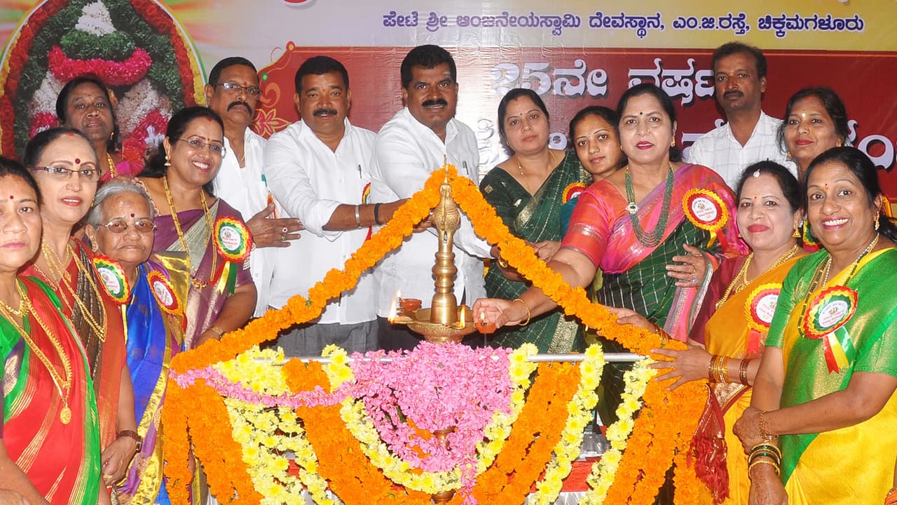 ಶ್ರೀ ಬನಶಂಕರಿ ಮಹಿಳಾ ಸಂಘದ ಅಧ್ಯಕ್ಷೆ ಸುವರ್ಣಾ ಕೇಶವಮೂರ್ತಿ ಮಾತನಾಡಿ, ಬನಶಂಕರಿ ಸಂಘ 20 ಮಹಿಳಾ ಸದಸ್ಯರ ಮುಖಾಂತರ ಪ್ರಾರಂಭವಾಗಿ ಇಂದು 400 ಕ್ಕೂ ಸಂಘದ ಸದಸ್ಯರು ಇದ್ದಾರೆ. ಸಂಘದಿಂದ ಉಚಿತ ಆರೋಗ್ಯ ತಪಾಸಣೆ, ಕ್ರೀಡಾಕೂಟ, ಯೋಗಭ್ಯಾಸ ಕಾರ್ಯಕ್ರಮಗಳನ್ನು ನಡೆಸಲಾಗಿದೆ ಎಂದರು.ಸಂಘದ ಸಂಸ್ಥಾಪಕ ಅಧ್ಯಕ್ಷೆ ಕಮಲಮ್ಮ ರಾಮಯ್ಯ ಸಮಾರಂಭ ಉದ್ಘಾಟಿಸಿದರು. ಈ ಸಂದರ್ಭದಲ್ಲಿ ದೇವಾಂಗ ಸಂಘದ ಜಿಲ್ಲಾಧ್ಯಕ್ಷ ಕೆ. ಶ್ರೀನಿವಾಸ್, ದೇವಾಂಗ ಸಂಘದ ತಾಲೂಕು ಅಧ್ಯಕ್ಷ ಭಗವತಿ ಹರೀಶ್, ಪ್ರಧಾನ ಕಾರ್ಯದರ್ಶಿ ಟಿ. ತ್ಯಾಗರಾಜ್, ನಗರಸಭೆ ಸದಸ್ಯೆ ದೀಪಾ ರವಿಕುಮಾರ್, ಬನಶಂಕರಿ ಮಹಿಳಾ ಸಂಘದ ಉಪಾಧ್ಯಕ್ಷೆ ರಾಧಾ ರಾಜ್ಕುಮಾರ್, ಪ್ರಧಾನ ಕಾರ್ಯದರ್ಶಿ ಧನಲಕ್ಷ್ಮೀ ಗೋಕುಲ್, ಸಹ ಕಾರ್ಯದರ್ಶಿಗಳಾದ ಮಂಜುಳಾ ಪುಟ್ಟರಾಜು, ಭಾಗ್ಯ ಮೋಹನ್, ಖಜಾಂಚಿ ಶ್ಯಾಮಲಾ ರಾಜು, ರತ್ನ ರವಿಕುಮಾರ್ ಹಾಗೂ ಕಾರ್ಯಕಾರಿ ಮಂಡಳಿ ಸದಸ್ಯರು ಉಪಸ್ಥಿತರಿದ್ದರು. 24 ಕೆಸಿಕೆಎಂ 4ಚಿಕ್ಕಮಗಳೂರಿನ ಶ್ರೀ ಬನಶಂಕರಿ ಮಹಿಳಾ ಸಂಘದ 25 ನೇ ವಾರ್ಷಿಕೋತ್ಸವ ಸಮಾರಂಭವನ್ನು ಕಮಲಮ್ಮ ರಾಮಯ್ಯ ಉದ್ಘಾಟಿಸಿದರು. ಶಾಸಕ ಎಚ್.ಡಿ. ತಮ್ಮಯ್ಯ, ಗಾಯತ್ರಿ ಶಾಂತೇಗೌಡ, ಸುವರ್ಣಾ ಕೇಶವಮೂರ್ತಿ, ದೀಪಾ ರವಿಕುಮಾರ್, ಕೆ. ಶ್ರೀನಿವಾಸ್ ಇದ್ದರು.