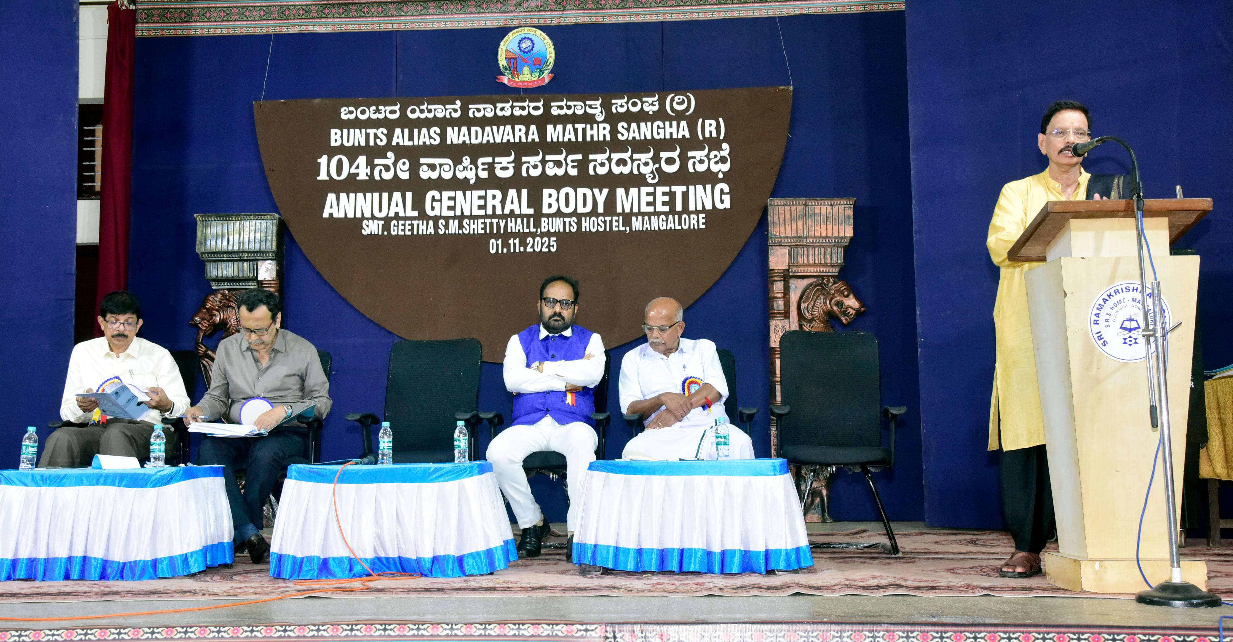 ಬಂಟ್ಸ್ ಹಾಸ್ಟೇಲ್ ಬಳಿ ಇರುವ ಶ್ರೀಮತಿ ಗೀತಾ ಎಸ್ ಎಮ್ ಶೆಟ್ಟಿ ಸಭಾಭವನದಲ್ಲಿ ನಡೆದ ೧೦೪ ನೇ ವಾರ್ಷಿಕ ಸರ್ವ ಸದಸ್ಯರ ಸಭೆಯಲ್ಲಿ ಅಧ್ಯಕ್ಷತೆ ವಹಿಸಿ ಮಾತನಾಡಿದರು.ಬಾಂಧವ್ಯ ಎಂಬ ನಾಮಾಂಕಿತದೊಂದಿಗೆ ವಿಶ್ವ ವ್ಯಾಪಿಯಾಗಿ ನೆಲೆಸಿರುವ ಬಂಟರ, ನಾಡವರ ಸಾಮಾಜಿಕ ಆರ್ಥಿಕ, ಶೈಕ್ಷಣಿಕ, ಔಧ್ಯೋಗಿಕ ವೈವಾಹಿಕ, ಆರೋಗ್ಯ, ವಸತಿ, ಧಾರ್ಮಿಕ, ಸಾಂಸ್ಕೃತಿಕ ಹಾಗೂ ಒಟ್ಟು ಜೀವನದ ವ್ಯವಸ್ಥೆ ಹಾಗೂ ಸ್ಥಿತಿಗತಿಗಳ ಬಗ್ಗೆ ಸಮಗ್ರ ಮಾಹಿತಿಯನ್ನು ಸಂಗ್ರಹಿಸಿ ಮಹೋನ್ನತವಾದ ದೂರಗಾಮಿ ಪರಿಣಾಮವನ್ನು ಬೀರುವ ವಿಶ್ವಬಂಟರ ಮಾಹಿತಿ ಕೋಶವನ್ನು ತಯಾರು ಮಾಡುವ ಒಂದು ಅನುಕರಣೀಯ, ಶ್ರೇಷ್ಠ ಕೆಲಸವನ್ನು ಮಾಡೋಣ ಎಂದರು.