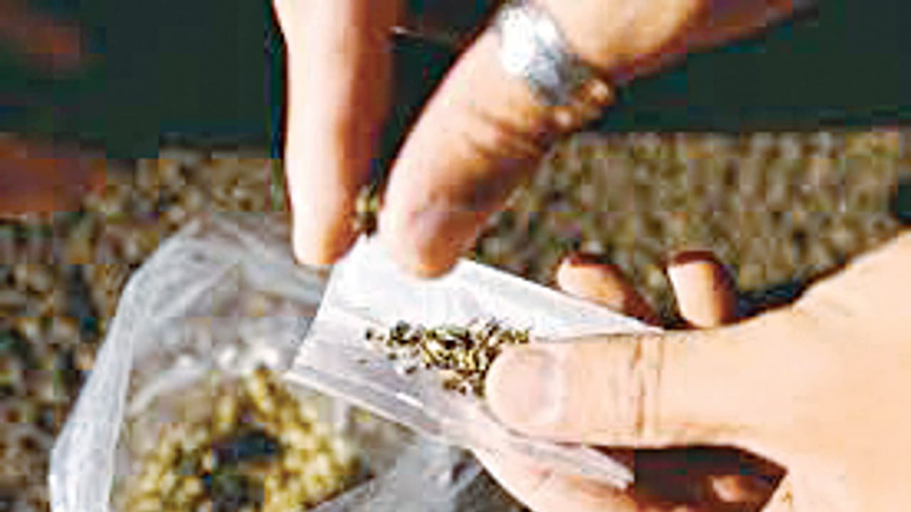 ಮಾದಕ ವಸ್ತು ಮಾರಾಟ ಹಾಗೂ ಸೇವನೆ ಮಾಡುತ್ತಿದ್ದ ರಾಜಸ್ಥಾನದ ಇಬ್ಬರು ಸೇರಿದಂತೆ ನಾಲ್ವರು ಆರೋಪಿಗಳನ್ನು ಸೋಮವಾರ ಮಧ್ಯಾಹ್ನ ಬಂಧಿಸಿ, ₹1 ಲಕ್ಷ ನಗದು ಸೇರಿದಂತೆ ₹11 ಲಕ್ಷ ಮೌಲ್ಯದ ಸ್ವತ್ತನ್ನು ವಿದ್ಯಾನಗರ ಪೊಲೀಸರು ಜಪ್ತಿ ಮಾಡಿ, ತಲೆಮರೆಸಿಕೊಂಡ ಮೂವರ ಪತ್ತೆಗೆ ಶೋಧ ಕೈಗೊಂಡಿದ್ದಾರೆ.ರಾಜಸ್ಥಾನದ ಜೋಧಪುರದ ಲೂಣಿ ಗ್ರಾಮದ ಹಮೀರ ನಗರದ ಮೇರಿಯನಾಡ ವಾಸಿ, ಕಾರ್ಪೆಂಟರ್ ಕೆಲಸಗಾರ ರಾಮ್ ಸ್ವರೂಪ್ (33), ಜೋಧಪುರದ ಲೂಣಿ ಗ್ರಾಮದ ಅಡುಗೆ ಕೆಲಸಗಾರ ಧೋಲಾರಾಮ್ (36), ದಾವಣಗೆರೆ ಸಿದ್ದವೀರಪ್ಪ ಬಡಾವಣೆಯ ಅಲ್ಯುಮಿನಿಯಂ ಕೆಲಸಗಾರ ದೇವ್ ಕಿಶನ್ (35) ಹಾಗೂ ಶಾಬನೂರು ಗ್ರಾಮದ ರಿಯಲ್ ಎಸ್ಟೇಟ್ ಉದ್ಯಮಿ, ಕಾಂಗ್ರೆಸ್ ಮುಖಂಡ ಎಸ್.ಜಿ. ವೇದಮೂರ್ತಿ ಶಾಮನೂರು (ಶಾಮನೂರು ವೇದ) ಬಂಧಿತ ಆರೋಪಿಗಳು.