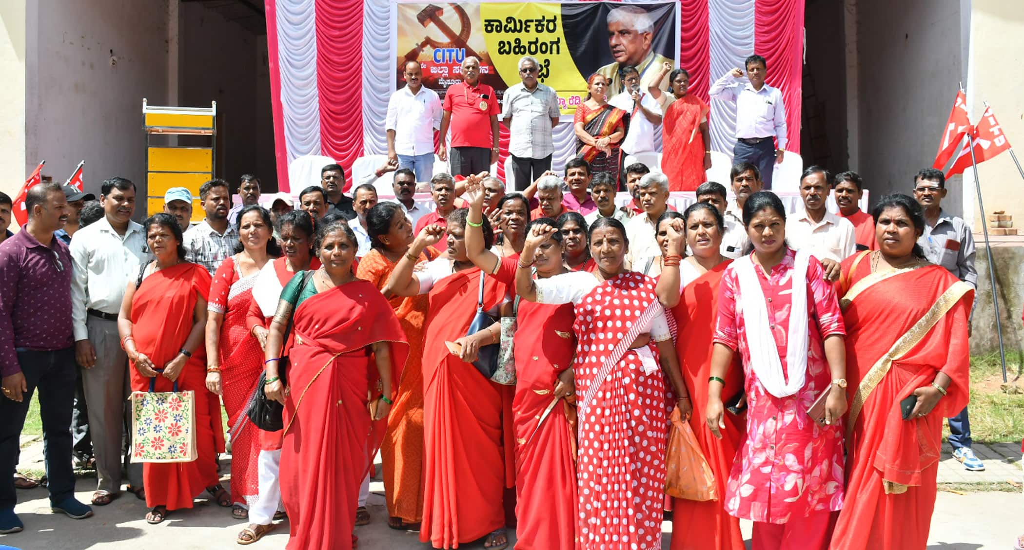 ಕರ್ನಾಟಕ ರಾಜ್ಯ ಅಂಗನವಾಡಿ ನೌಕರರ ಸಂಘದ ಪ್ರಧಾನ ಕಾರ್ಯದರ್ಶಿ ಎಚ್.ಎಸ್. ಸುನಂದಾ, ಕರ್ನಾಟಕ ಪ್ರಾಂತ ರೈತ ಸಂಘದ ಜಿಲ್ಲಾ ಕಾರ್ಯದರ್ಶಿ ಜಗದೀಶ್ ಸೂರ್ಯ, ವಿಕ್ರಾಂತ್ ಟೈರ್ಸ್ ಕಾರ್ಮಿಕ ಸಂಘಟನೆ ಪ್ರಧಾನ ಕಾರ್ಯದರ್ಶಿ ಚನ್ನಕೇಶವ, ಸಿಐಟಿಯು ಜಿಲ್ಲಾಧ್ಯಕ್ಷ ಜಿ. ಜಯರಾಮ್, ಜಿಲ್ಲಾ ಪ್ರಧಾನ ಕಾರ್ಯದರ್ಶಿ ಎನ್.ಕೆ. ಬಾಲಾಜಿರಾವ್, ಖಜಾಂಚಿ ಅಣ್ಣಪ್ಪ ಮೊದಲಾದವರು ಇದ್ದರು.ಮೆರವಣಿಗೆ: