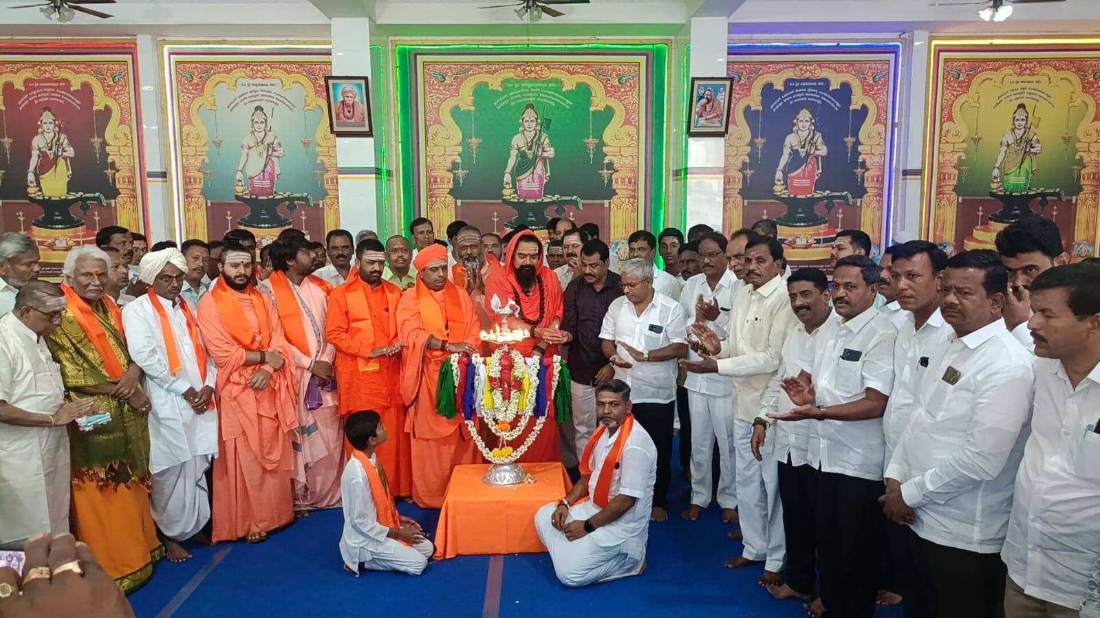 ಧರ್ಮ ಸಂದೇಶ ನೀಡಿದ ಸೋಮವಾರಪೇಟೆ ಹಿರೇಮಠದ ಅಭಿನವ ರಾಚೋಟಿ ಶಿವಾಚಾರ್ಯರು, ಮನುಷ್ಯರು ಕಷ್ಟಗಳನ್ನು ಅರಿತು ಕೊಂಡು ಮುನ್ನಡೆಯಬೇಕು. ಸುಖ-ದುಖಃಗಳನ್ನು ಸಮಾನವಾಗಿ ಕಾಣುವ ಮನೋಭಾವನೆಯನ್ನು ಬೆಳೆಸಿಕೊಂಡಿಲ್ಲಿ ಬದುಕಿನಲ್ಲಿ ಎದುರಾಗುವ ಎಲ್ಲ ರೀತಿಯ ಸಮಸ್ಯೆಗಳನ್ನು ಧೈರ್ಯವಾಗಿ ಎದುರಿಸಬೇಕು ಎಂದು ನುಡಿದರು.ಸಮಾರಂಭದ ಸಾನ್ನಿಧ್ಯವನ್ನು ಕಿಲ್ಲೇಬೃಹನ್ಮಠದ ಶಾಂತಮಲ್ಲ ಶಿವಾಚಾರ್ಯರು ವಹಿಸಿದ್ದರು. ತಂಡಿಕೇರ ಗಂಗಾಧರ ಶಿವಾಚಾರ್ಯರು, ಅಭಿನವ ಸೋಮನಾಥ ಶಿವಾಚಾರ್ಯರು, ಶಂಭು ಸೋಮನಾಥ ಶಿವಾಚಾರ್ಯರು, ಕೀರಲಿಂಗೇಶ್ವರ ಶರಣರು, ವೇದಮೂರ್ತಿ ರಾಚಯ್ಯಪ್ಪ, ಶರಣು, ಬಸವರಾಜ, ಎನ್.ಶಿವಶಂಕರ, ಡಾಜವುಳಿ ನಿಜಗುಣಪ್ಪ, ನರಸಿಂಹಲು, ಪಂಪಾಪತಿ ಶಾಸ್ತ್ರಿ, ನರಸಪ್ಪ, ರೇಣುಕಾ ಸ್ವಾಮಿ, ಶರಣಯ್ಯ, ಬಸವರಾಜ, ವೆಂಕಟೇಶ ಸೇರಿದಂತೆ ಮುಖಂಡರು,ಮಹಿಳೆಯರು ಭಕ್ತರು ಭಾಗವಹಿಸಿದ್ದರು.