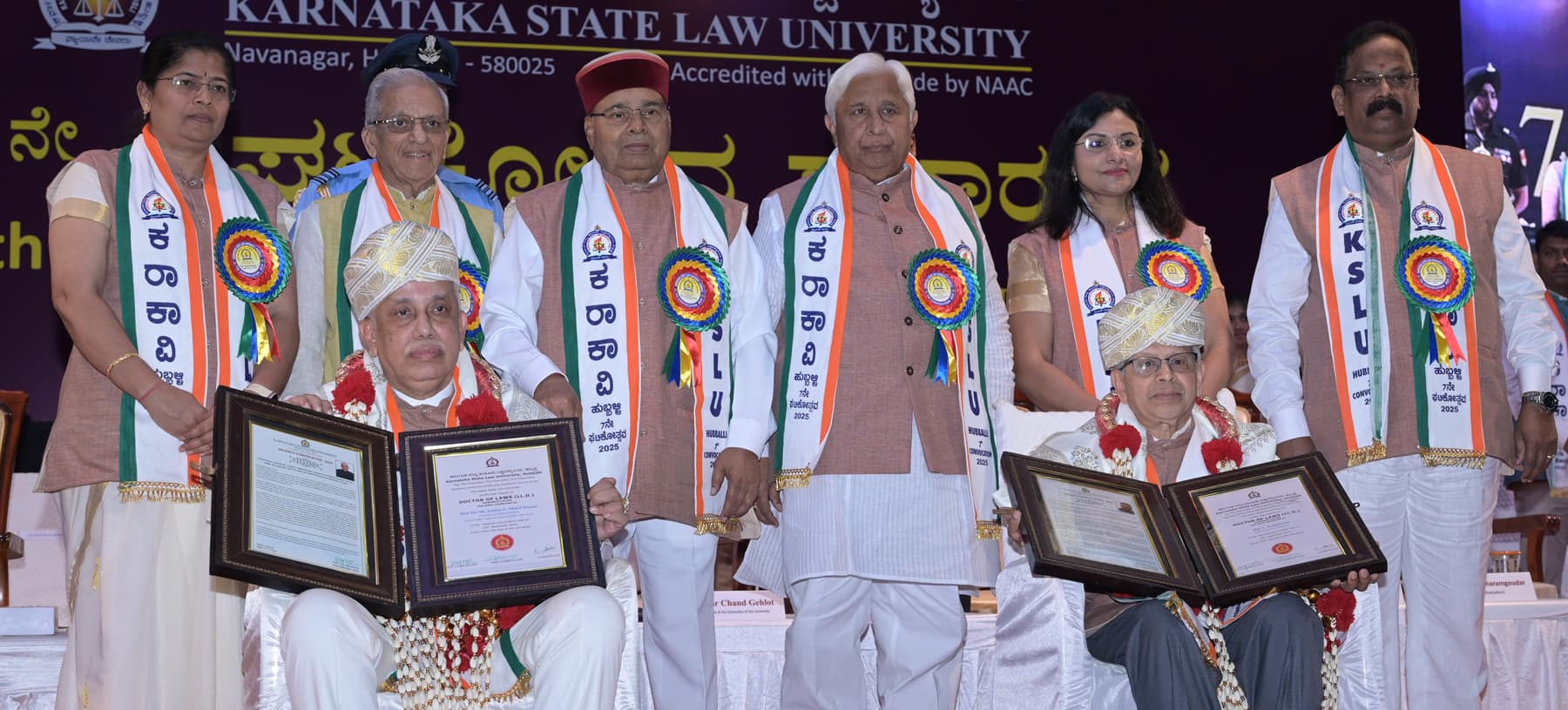 ಈ ವೇಳೆ ಸುಪ್ರಿಂ ಕೋರ್ಟ್ ನ್ಯಾಯಮೂರ್ತಿ ಬಿ.ವಿ. ನಾಗರತ್ನ ಗೈರು ಹಾಜರಿಯಲ್ಲಿ ನ್ಯಾಯಮೂರ್ತಿ ಅಬ್ದುಲ್ ನಜೀರ್ ಮತ್ತು ಹಿರಿಯ ವಕೀಲ ವಿ. ಸುಧೀಶ್ ಪೈ ಅವರಿಗೆ ಕಾನೂನು ವಿವಿಯಿಂದ ಗೌರವ ಡಾಕ್ಟರೇಟ್ ಪದವಿ ಪ್ರದಾನ ಮಾಡಲಾಯಿತು. ಮೂರು ವರ್ಷ ಮತ್ತು ಐದು ವರ್ಷಗಳ ಕಾನೂನು ಕೋರ್ಸಗಳ ಪ್ರತಿಭಾನ್ವಿತ ವಿದ್ಯಾರ್ಥಿಗಳಿಗೆ ಒಟ್ಟು 28 ಚಿನ್ನದ ಪದಕ ಪ್ರದಾನ ಮಾಡಲಾಯಿತು. 2022-23ನೇ ಸಾಲಿಗೆ, ಬೆಂಗಳೂರಿನ ಗಣೇಶ್ ಕೆ. ಮೂರು ವರ್ಷಗಳ ಎಲ್ಎಲ್ಬಿ ಕಾರ್ಯಕ್ರಮದಲ್ಲಿ ಚಿನ್ನದ ಪದಕ ಪಡೆದರು, ಬೆಂಗಳೂರಿನ ಮಾನ್ಯ ಆನಂದ್ ಐದು ವರ್ಷಗಳ ಬಿಎ ಎಲ್ಎಲ್ಬಿ ಕಾರ್ಯಕ್ರಮದಲ್ಲಿ ಮೂರು ಚಿನ್ನದ ಪದಕಗಳನ್ನು ಪಡೆದರು.ಕರ್ನಾಟಕದ ರಾಜ್ಯಪಾಲ ಥಾವರ್ ಚಂದ್ ಗೆಹಲೋತ್, ಕಾನೂನು ಸಚಿವ ಎಚ್.ಕೆ. ಪಾಟೀಲ್ ಮತ್ತು ಕಾನೂನು ವಿವಿ ಉಪಕುಲಪತಿ ಡಾ.ಸಿ. ಬಸವರಾಜು ಪದಕ ಮತ್ತು ಪ್ರಮಾಣಪತ್ರ ಪ್ರದಾನ ಮಾಡಿದರು.