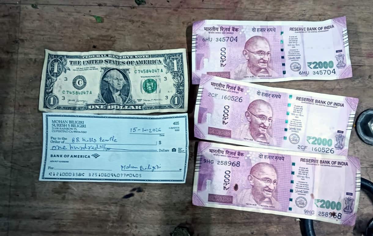 ಹುಂಡಿಗೆ 100 ಡಾಲರ್ ಅಮೆರಿಕದ ಚೆಕ್:ಈ ಬಾರಿಯ ಹುಂಡಿ ಹಣ ಎಣಿಕೆಯಲ್ಲಿ ಅಮೆರಿಕದಲ್ಲಿ ನೆಲೆಸಿರುವ ಭಕ್ತರೊಬ್ಬರು 100 ಡಾಲರ್ (9100 ರು.) ಚೆಕ್ ಹುಂಡಿಗೆ ಹಾಕಿದ್ದಾರೆ. ಇದರೊಂದಿಗೆ ಅಮಾನ್ಯಗೊಂಡ 2,000 ಮುಖಬೆಲೆಯ 3 ನೋಟುಗಳು ದೊರೆತಿವೆ. ಅಲ್ಲದೆ ಕೆಲವರು ದೇವರಿಗೆ ತಮ್ಮ ಹರಕೆಯನ್ನು ಅರಿಶಿನ, ಕುಂಕುಮ ಸವರಿದ ಪೇಪರ್ನಲ್ಲಿ ಬರೆದು ಹುಂಡಿಗೆ ಹಾಕಿದ್ದಾರೆ ಎಂದು ದೇಗುಲದ ಕಾರ್ಯನಿರ್ವಾಹಕ ಅಧಿಕಾರಿ ಸುರೇಶ್ ಮಾಹಿತಿ ನೀಡಿದರು.ಈ ವೇಳೆ ಬಿಳಿಗಿರಿರಂಗನಾಥಸ್ವಾಮಿ ದೇಗುಲ ವ್ಯವಸ್ಥಾಪನಾ ಸಮಿತಿ ಅಧ್ಯಕ್ಷ ಜೆ. ಶ್ರೀನಿವಾಸ್, ಸದಸ್ಯರಾದ ಸಿದ್ದರಾಜು, ವೆಂಕಟರಾಮು, ನಾರಾಯಣಸ್ವಾಮಿ, ಕೇತಮ್ಮ, ಸುರೇಶ್, ಪಾರುಪತ್ತೇದಾರ ರಾಜು, ರಾಜಸ್ವ ನಿರೀಕ್ಷಕ ಯದುಗಿರಿ, ಕರ್ನಾಟಕ ಗ್ರಾಮೀಣ ಬ್ಯಾಂಕ್ನ ವ್ಯವಸ್ಥಾಪಕ ವೀರಭದ್ರಸ್ವಾಮಿ, ಶೇಷಾದ್ರಿ, ಅರ್ಚಕರಾದ ರವಿಕುಮಾರ್, ಶ್ರೀನಿವಾಸ್ ಸೇರಿದಂತೆ ಅನೇಕರು ಇದ್ದರು.