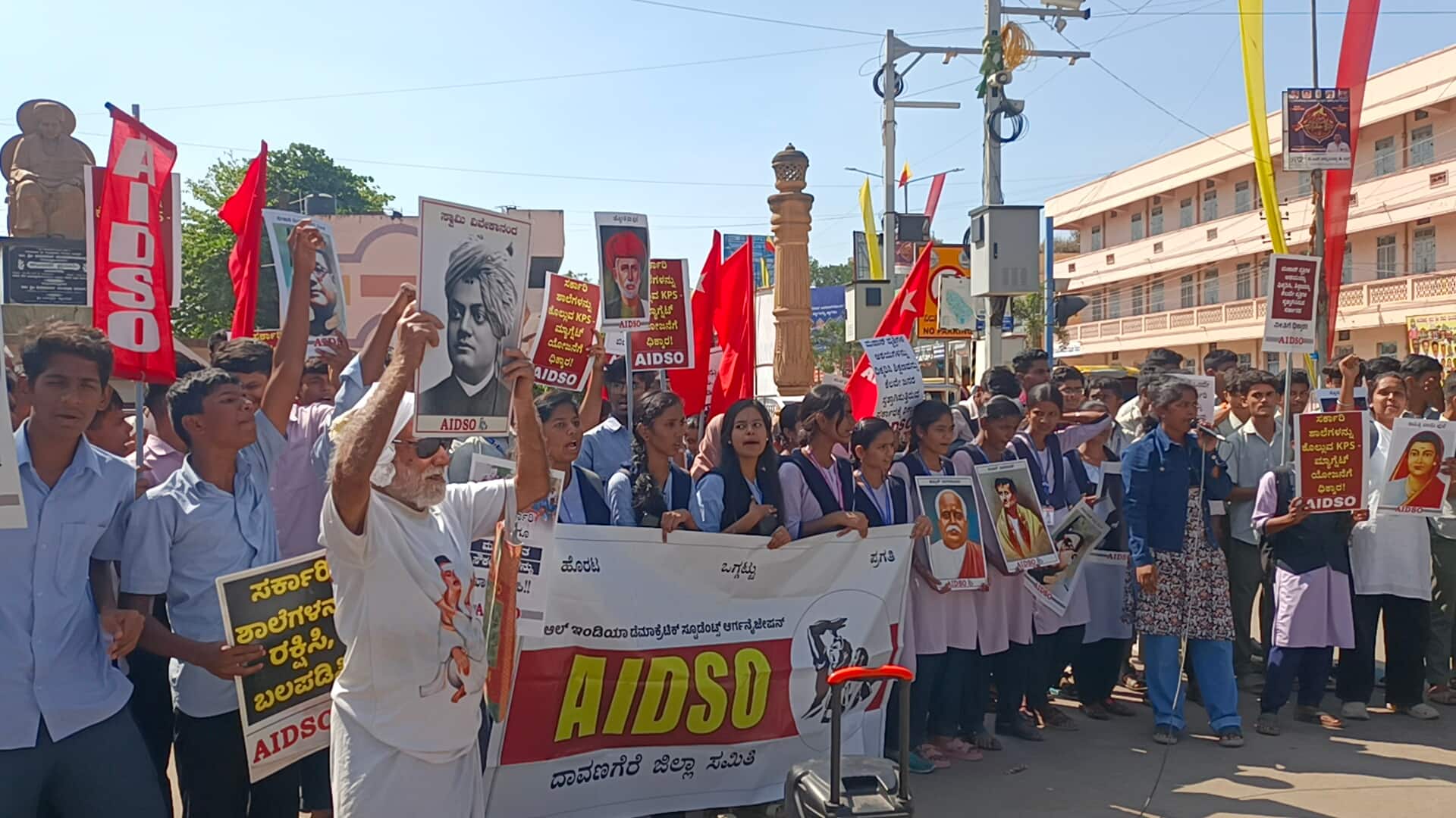 ದಾವಣಗೆರೆಯಲ್ಲಿ ಶುಕ್ರವಾರ ರಾಜ್ಯಾದ್ಯಂತ ಕೆಪಿಎಸ್ ಮ್ಯಾಗ್ನೆಟ್ ಶಾಲೆಗಳ ಹೆಸರಲ್ಲಿ 40,000ಕ್ಕೂ ಹೆಚ್ಚು ಸರ್ಕಾರಿ ಶಾಲೆಗಳ ವಿಲೀನ ಖಂಡಿಸಿ ಎಐಡಿಎಸ್ಒ ಜಿಲ್ಲಾ ಘಟಕದಿಂದ ಪ್ರತಿಭಟಿಸಲಾಯಿತು.;Resize=(128,128))
