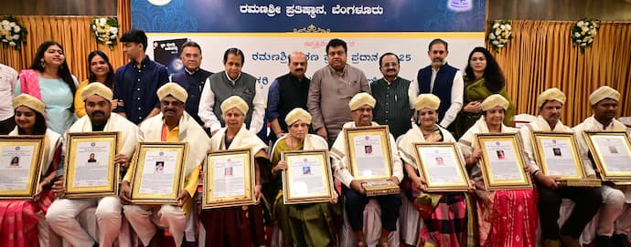 ರಮಣಶ್ರೀ ಶರಣ ಜೀವಮಾನ ಸಾಧನೆ ಪ್ರಶಸ್ತಿಗೆ ಡಾ.ಜಯ ರಾಜಶೇಖರ ಹಾಗೂ ವಿವಿಧ ವಿಭಾಗದಲ್ಲಿ ಡಾ.ವಿಜಯಶ್ರೀ ಸಬರದ, ಪ್ರೊ.ಎಚ್.ಲಿಂಗಪ್ಪ, ಡಾ.ಜಯದೇವಿ ಜಂಗಮಶೆಟ್ಟಿ, ರಾಜು ಎಮ್ಮಿಗನೂರು, ಎಂ.ಬಿ.ಸಂತೋಷ್ ಮತ್ತಿತರರಿಗೆ ಪ್ರಶಸ್ತಿ ನೀಡಿ ಗೌರವಿಸಲಾಯಿತು.;Resize=(128,128))