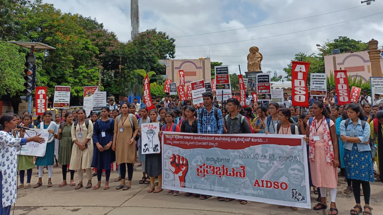 ರಾಜ್ಯದಲ್ಲಿ ಪ್ರಬಲವಾಗಿ ಬೆಳೆದ ವಿದ್ಯಾರ್ಥಿ ಹೋರಾಟದ ಫಲವಾಗಿ ರಾಜ್ಯ ಸರ್ಕಾರವು ರಾಷ್ಟ್ರೀಯ ಶಿಕ್ಷಣ ನೀತಿ-2020 ಹಿಂಪಡೆದಿದೆ. ಆದರೆ, ಅದೇ ಎನ್ಇಪಿ-2023ರ ಅಂಶವಾದ ಸರ್ಕಾರಿ ಸಂಸ್ಥೆಗಳನ್ನು, ಸ್ವಾಯತ್ತ, ಸ್ವಹಣಕಾಸು ಸಂಸ್ಥೆಗಳನ್ನಾಗಿಸುವ ಕರಾಳ ನೀತಿ ಜಾರಿಗೊಳಿಸುತ್ತಿದೆ. ಸರ್ಕಾರಿ ಶಿಕ್ಷಣ ಸಂಸ್ಥೆಗಳನ್ನು ಖಾಸಗೀಕರಣಗೊಳಿಸುವುದು, ಬಡವರ ಪರವೆಂದು ಕೊಚ್ಚಿಕೊಳ್ಳುವ ರಾಜ್ಯ ಸರ್ಕಾರದ 6ನೇ ಗ್ಯಾರಂಟಿ ಇದೇನಾ ಎಂದು ಪ್ರಶ್ನಿಸಿದರು.ಎಐಡಿಎಸ್ಒ ಜಿಲ್ಲಾ ಕಾರ್ಯದರ್ಶಿ ಟಿ.ಎಸ್.ಸುಮನ್, ಯುಬಿಡಿಟಿ ಉಳಿಸಿ ಹೋರಾಟ ಸಮಿತಿಯ ಅಭಿಷೇಕ್, ಯೋಗೇಶ, ಶ್ರವಣ್, ರಕ್ಷಿತಾ, ದೀಪಿಕಾ, ಚಂದನಾ, ನರೇಶ, ಕಾಲೇಜಿನ ನೂರಾರು ವಿದ್ಯಾರ್ಥಿಗಳು ಪ್ರತಿಭಟನೆಯಲ್ಲಿದ್ದರು.