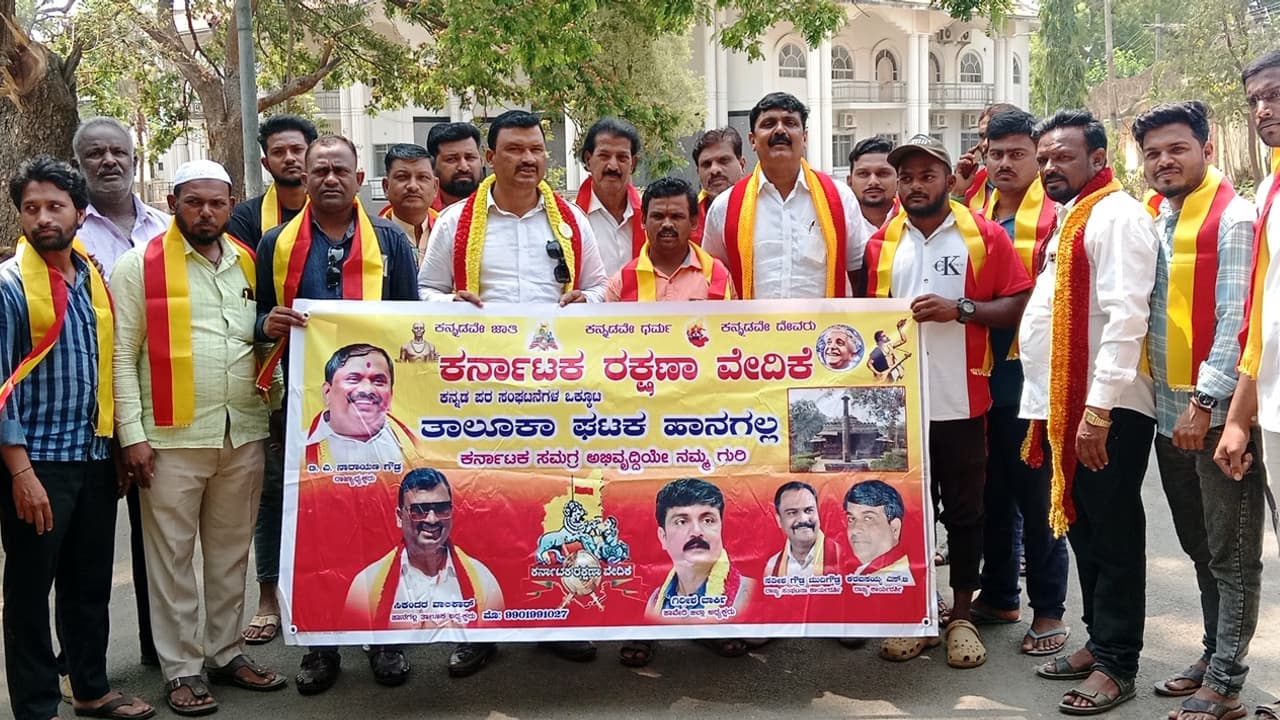 ಸೋಮವಾರ ಹಾನಗಲ್ಲಿನಲ್ಲಿ ಕರವೇ ಸಂಘಟನೆ ಮೂಲಕ ಮೆರವಣಿಗೆ ನಡೆಸಿ, ತಾಲೂಕು ತಹಸೀಲ್ದಾರ್ಗೆ ಮನವಿ ಸಲ್ಲಿಸಿ ಮಾತನಾಡಿ, ಆಂಗ್ಲ ಭಾಷೆ ಸೇರಿದಂತೆ ಯಾವುದೇ ಭಾಷೆಯ ಬಗೆಗೆ ನಮ್ಮ ತಿರಸ್ಕಾರವಿಲ್ಲ. ಕನ್ನಡ ನಾಡಿನಲ್ಲಿ ಕನ್ನಡಕ್ಕೆ ಮೊದಲ ಆದ್ಯತೆ ಇರಲಿ. ಕರ್ನಾಟಕದಲ್ಲಿಯೇ ಕನ್ನಡ ನಾಮಫಲಕಗಳಿಲ್ಲದಿದ್ದರೆ ಎಲ್ಲಿ ಕನ್ನಡ ನಾಮಫಲಕ ಹಾಕುವುದು. ಇದಕ್ಕಾಗಿ ದೊಡ್ಡ ಪ್ರಮಾಣದ ಹೋರಾಟ ರಾಜ್ಯದಲ್ಲಿ ನಡೆದಿದೆ. ಇದಕ್ಕಾಗಿ ಕರವೇ ರಾಜ್ಯಾಧ್ಯಕ್ಷರೂ ಸೇರಿದಂತೆ ಕಾರ್ಯಕರ್ತರು ಜೈಲು ವಾಸ ಅನುಭವಿಸಿದ್ದಾರೆ. ಅಂತಿಮವಾಗಿ ಸರಕಾರ ರಾಜ್ಯಪಾಲರ ಅಂಕಿತವನ್ನೂ ಪಡೆದು ಇಡೀ ರಾಜ್ಯದಲ್ಲಿರುವ ಅಂಗಡಿ ಮುಂಗಟ್ಟು, ಕಚೇರಿಗಳು, ಬ್ಯಾಂಕುಗಳು, ಖಾಸಗಿ ಸಂಸ್ಥೆಗಳು ಸೇರಿದಂತೆ ಎಲ್ಲ ನಾಮಫಲಕಗಳು ಶೇ.೬೦ರಷ್ಟು ಕನ್ನಡವೇ ಇರಬೇಕು ಎಂಬ ವಿಧೇಯಕ ಮಂಡನೆಯಾಗಿದೆ. ಈಗಲಾದರೂ ಅಧಿಕಾರಿಗಳು ಎಚ್ಚೆತ್ತುಕೊಂಡು ಕನ್ನಡ ನಾಮಫಲಕ ಕಡ್ಡಾಯ ಮಾಡಬೇಕು ಎಂದು ಒತ್ತಾಯಿಸಿದರು.ಹಾನಗಲ್ಲಿನ ಹಲವು ಕಡೆ ಕನ್ನಡವೇ ಇಲ್ಲದ ಅನ್ಯಭಾಷಾ ನಾಮಫಲಕಗಳಿವೆ. ಇಲ್ಲಿರುವ ಎಲ್ಲ ಭಾಷಿಕರಿಗೂ ಕನ್ನಡದ ಪ್ರೀತಿ ಕಳಕಳಿ ಬೇಕು. ಕರ್ನಾಟಕದಲ್ಲಿಯೇ ಇದ್ದು ಕನ್ನಡದ ಬಗ್ಗೆ ತಿರಸ್ಕಾರ ಸಲ್ಲದು. ಒಂದು ವಾರದ ಗಡುವನ್ನು ತಾಲೂಕು ಆಡಳಿತಕ್ಕೆ ನೀಡುತ್ತಿದ್ದು ಅಷ್ಟರೊಳಗೆ ಇಡೀ ತಾಲೂಕಿನಲ್ಲಿ ಎಲ್ಲ ನಾಮಫಲಕಗಳು ಕನ್ನಡದಲ್ಲಿಯೇ ಇರುವಂತೆ ಕ್ರಮ ಜರುಗಿಸಬೇಕು. ತಪ್ಪಿದಲ್ಲಿ ಉಗ್ರ ಹೋರಾಟ ಅನಿವಾರ್ಯವಾಗುತ್ತದೆ ಎಂದು ಜಿಲ್ಲಾಧ್ಯಕ್ಷ ಗಿರೀಶ ತಿಳಿಸಿದರು.