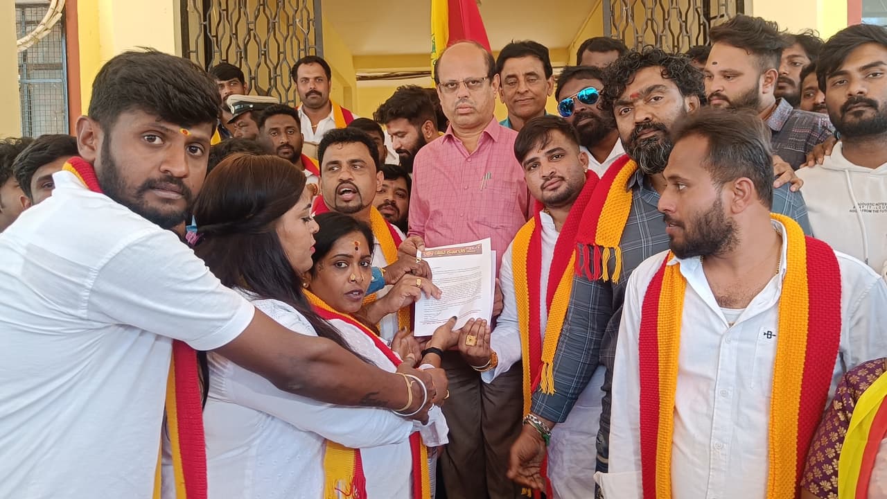 ನಗರದಲ್ಲಿ ವಿವಿಧ ಕನ್ನಡಪರ ಸಂಘಟನೆಗಳ ಒಕ್ಕೂಟದಿಂದ ಹಮ್ಮಿಕೊಂಡಿದ್ದ ನಾಮಫಲಕದಲ್ಲಿ ಶೇ.60 ಕನ್ನಡ ಭಾಷೆ ಬಳಕೆ ಅಭಿಯಾನದಲ್ಲಿ ತಾಲೂಕು ದಂಢಾದಿಕಾರಿಗಳಿಗೆ ಮನವಿ ಸಲ್ಲಿಸಿ ಮಾತನಾಡಿ, ಕನ್ನಡ ನಾಡಿನಲ್ಲಿ ವಾಸಿಸುವ ಪ್ರತಿಯೊಬ್ಬರಿಗೂ ಇಲ್ಲಿನ ಭಾಷೆ ಸಂಸ್ಕೃತಿ ಬಗ್ಗೆ ಗೌರವ ಅಭಿಮಾನ ಇರಬೇಕು.