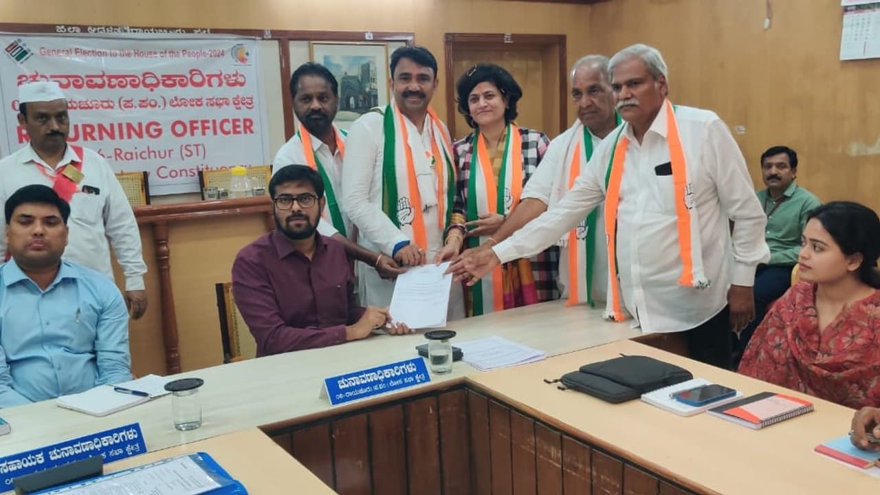 ಕಾಂಗ್ರೆಸ್ನ ಜಿ.ಕುಮಾರ ನಾಯಕ ಪಕ್ಷದ ಮುಖಂಡರೊಂದಿಗೆ ಆಗಮಿಸಿ ನಾಮಪತ್ರ ಸಲ್ಲಿಸಿದರು. ರಾಯಚೂರು ಲೋಕಸಭಾ ಕ್ಷೇತ್ರಕ್ಕೆ ಬಿಜೆಪಿ ಅಭ್ಯರ್ಥಿ ರಾಜಾ ಅಮರೇಶ್ವರ ನಾಯಕ ಅವರು ಬಿಜೆಪಿ-ಜೆಡಿಎಸ್ ಪಕ್ಷದ ಪ್ರಮುಖ ಮುಖಂಡರೊಂದಿಗೆ ಆಗಮಿಸಿ ನಾಮಪತ್ರ ಸಲ್ಲಿಸಿದರು.