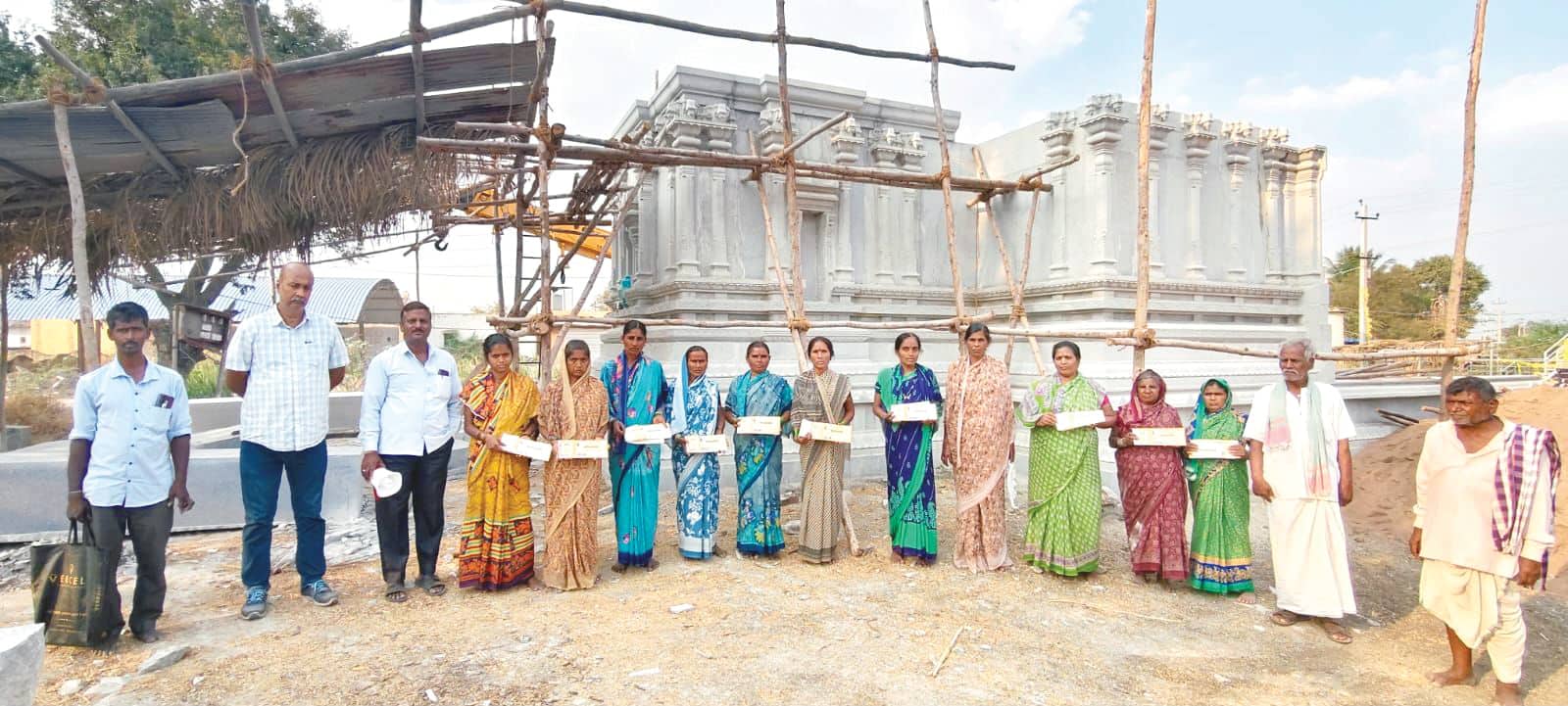 ತಿಮ್ಮಾಪೂರದಲ್ಲಿ ಕಳೆದ 4 ವರ್ಷದಿಂದ ಯಲ್ಲಮ್ಮ ದೇವಸ್ಥಾನ ನಿರ್ಮಾಣ ಕಾರ್ಯ ನಡೆಯುತ್ತಿದ್ದು, ಈಗಾಗಲೇ ಗ್ರಾಮಸ್ಥರು ₹50 ಲಕ್ಷ ವೆಚ್ಚ ಮಾಡಿದ್ದಾರೆ. ಹಣದ ಕೊರತೆಯಿಂದಾಗಿ ಕಾಮಗಾರಿ ಅರ್ಧಕ್ಕೆ ನಿಂತಿತ್ತು. ಮಂದಿರ ಪೂರ್ಣಗೊಳ್ಳಲು ಲಕ್ಷಾಂತರ ಅಗತ್ಯವಿದ್ದು, ಗ್ರಾಮದ 850 ಮಹಿಳೆಯರು ತಮ್ಮ ಖಾತೆಗೆ ಜಮೆಯಾಗುವ ಗೃಹಲಕ್ಷ್ಮಿ ಹಣವನ್ನು ನೀಡುವ ಮೂಲಕ ರಾಜ್ಯದ ಗಮಸ ಸೆಳೆದಿದ್ದಾರೆ. 850 ಗೃಹಲಕ್ಷ್ಮಿ ಫಲಾನುಭವಿಗಳು ತಮಗೆ ಬರುವ ಹಣವನ್ನು ಸಂಗ್ರಹಿಸಿ ಈಗಾಗಲೇ ₹2.50 ಲಕ್ಷ ದೇಣಿಗೆ ನೀಡಿದ್ದು, ಒಟ್ಟು ₹16 ಲಕ್ಷ ನೀಡಲಿದ್ದಾರೆ. ಈ ನಿರ್ಧಾರಕ್ಕೆ ಮಹಿಳಾ ಮತ್ತು ಮಕ್ಕಳ ಕಲ್ಯಾಣ ಸಚಿವೆ ಲಕ್ಷ್ಮೀ ಹೆಬ್ಬಾಳ್ಕರ್ ಸಂಸತ ವ್ಯಕ್ತಪಡಿಸಿದ್ದಾರೆ.ಅರ್ಧಕ್ಕೆ ನಿಂತ ದೇಗುಲ ನಿರ್ಮಾಣಕ್ಕೆಹಣ ನೀಡಿದ 850 ‘ಗೃಹಲಕ್ಷ್ಮೀ’ಯರು