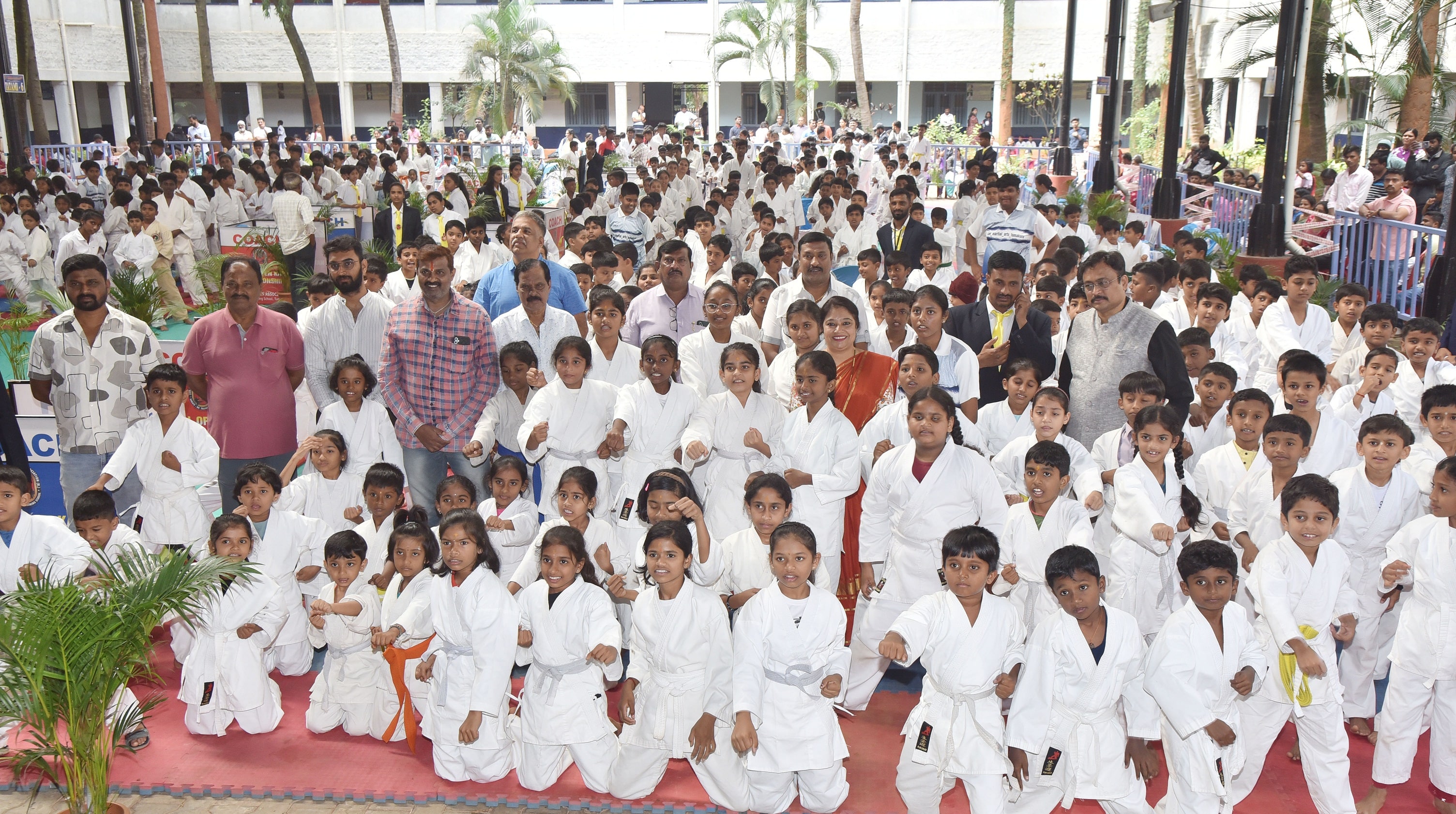 ಕಾರ್ಯಕ್ರಮದ ದಿವ್ಯ ಸಾನಿಧ್ಯ ವಹಿಸಿದ್ದ ಎಲೆರಾಂಪುರದ ಕುಂಚಿಟಿಗ ಮಹಾಸಂಸ್ಥಾನ ಮಠದ ಡಾ. ಹನುಮಂತನಾಥ ಸ್ವಾಮೀಜಿ ಅಶೀರ್ವನ ನೀಡಿ ಒಂದು ಕಾಲದಲ್ಲಿ ಶ್ರೀಮಂತರ ಕ್ರೀಡೆಯಾಗಿದ್ದ ಕರಾಟೆಯಲ್ಲಿ ಇಂದು ಗ್ರಾಮೀಣ ಭಾಗದ ಮಕ್ಕಳು ಸಾಧನೆ ಮಾಡುತ್ತಿರುವುದನ್ನು ಕಾಣಬಹುದಾಗಿದೆ. ಮಕ್ಕಳಲ್ಲಿ ಚುರುಕು ಮತ್ತು ಏಕಾಗ್ರತೆಯನ್ನು ಗಮನಿಸಿದರೆ,ಯಾವುದು ಅಸಾಧ್ಯವಲ್ಲ ಎಂಬಂತಿದೆ ಎಂದರು.ವೇದಿಕೆಯಲ್ಲಿ ಲಯನ್ ಮಾರ್ಷಲ್ ಆರ್ಟ್ಸ್ ಅಸೋಸಿಯೇಷನ್ ಪ್ರಕಾಶ್, ವೀರಶೈವ ಬ್ಯಾಂಕಿನ ಉಪಾಧ್ಯಕ್ಷ ಹೆಬ್ಬಾಕ ಮಲ್ಲಿಕಾರ್ಜುನಯ್ಯ, ವಕೀಲರ ಸಂಘದ ಹಿಮಾನಂದನ್, ನೇತಾಜಿ ಶ್ರೀಧರ್,ಬೆಳಗುಂಬ ಮಂಜುನಾಥ್, ವಿಘ್ನೇಶ್ವರ ಕಂಪರ್ಟ್ನ ಸ್ವರೂಪ್, ಮಾಜಿ ಸೈನಿಕರಾದ ಲೋಕೇಶ್ ಆಚಾರ್ಯ, ಹಿರಿಯ ಕ್ರೀಡಾಪಟು ಟಿ.ಕೆ.ಆನಂದ್ ಸೇರಿದಂತೆ ರಾಜ್ಯದ ವಿವಿಧ ಜಿಲ್ಲೆಗಳಿಂದ ಬಂದಿದ್ದ ಕರಾಟೆ ತರಬೇತುದಾರರು ಉಪಸ್ಥಿತರಿದ್ದರು.