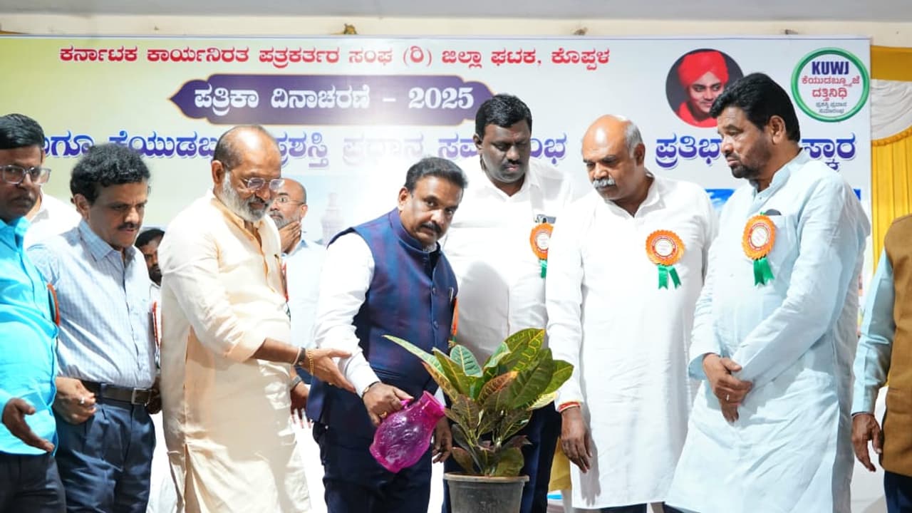 ಸಂಘದ ರಾಜ್ಯ ಸಮಿತಿ ಸದಸ್ಯ ಸಾದಿಕ್ ಅಲಿ ಪ್ರಾಸ್ತಾವಿಕ ಮಾತನಾಡಿದರು. ಕಾರ್ಯಕ್ರಮದಲ್ಲಿ ಬಾಲಭವನ ಅಧ್ಯಕ್ಷ ಬಿ.ಆರ್. ನಾಯ್ಡು, ರಾಜ್ಯ ಪ್ರಧಾನ ಕಾರ್ಯದರ್ಶಿ ಜಿ.ಸಿ. ಲೋಕೇಶ್, ವಾರ್ತಾ ಅಧಿಕಾರಿ ಡಾ. ಸುರೇಶ, ಕೊಪ್ಪಳ ಜಿಲ್ಲಾಧ್ಯಕ್ಷ ಹನುಮಂತ ಹಳ್ಳಿಕೇರಿ, ಪತ್ರಕರ್ತರ ಸಂಘದ ರಾಷ್ಟ್ರೀಯ ಸಮಿತಿ ಸದಸ್ಯ ಜಿ.ಎಸ್. ಗೋನಾಳ, ಹರೀಶ್ ಎಚ್.ಎಸ್, ಗೌರವಾಧ್ಯಕ್ಷ ಬಸವರಾಜ ಗುಡ್ಲಾನೂರು, ಜಿಲ್ಲಾ ಕಾರ್ಯದರ್ಶಿ ವೀರಣ್ಣ ಕಳ್ಳಿಮನಿ, ಖಜಾಂಚಿ ರಾಜು. ಬಿ.ಆರ್ ಸೇರಿದಂತೆ ಜಿಲ್ಲೆಯ ಪತ್ರಕರ್ತರು ಭಾಗವಹಿಸಿದ್ದರು. ಜಿಲ್ಲಾ ಪ್ರಧಾನ ಕಾರ್ಯದರ್ಶಿ ನಾಗರಾಜ ಸ್ವಾಗತಿಸಿದರೆ, ಎನ್.ಎಂ. ದೊಡ್ಡಮನಿ ನಿರೂಪಿಸಿದರು. ಕಲಾವಿದರಾದ ಭಾಷಾ ಹಿರೇಮನಿ ನಾಡಗೀತೆ ಹಾಡಿದರು.