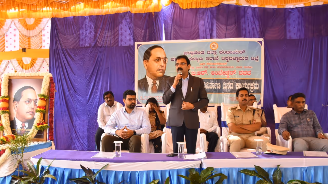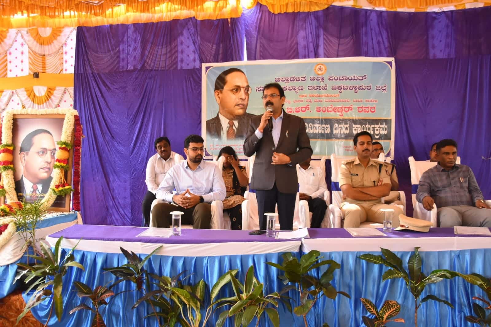 ಅಂಬೇಡ್ಕರ್ ತತ್ವಾದರ್ಶ ಪಾಲಿಸಿಅವರ ಆಶಯಗಳನ್ನು ಸಂವಿಧಾನದ ಮೂಲಕವೇ ಈಡೇರಿಸಬೇಕು. ಜಾತೀಯತೆಯನ್ನು ಮನಸ್ಸುಗಳಿಂದ ದೂರ ಮಾಡಿ ಸಮ ಸಮಾಜವನ್ನು ಹಾಗೂ ದೂರದೃಷ್ಟಿಯ ಭಾರತವನ್ನುಕಟ್ಟಬೇಕು. ಇದರಲ್ಲಿ ಯುವಪೀಳಿಗೆ ಹೆಚ್ಚಿನ ಪಾತ್ರ ವಹಿಸಬೇಕು.ಅಂಬೇಡ್ಕರ್ ಜಯಂತಿ ಮತ್ತು ಪುಣ್ಯಸ್ಮರಣೆಯಂತ ಕಾರ್ಯಕ್ರಮಗಳಿಗೆ ಸೀಮಿತವಾಗದೆ, ಅವರ ತತ್ವಚಿಂತನೆಗಳ ಮೂಲಕ ಪ್ರತಿಯೊಬ್ಬರ ಹೃದಯಕ್ಕೆ ಇಳಿಯಬೇಕು ಎಂದರು. ಈ ಸಂದರ್ಭದಲ್ಲಿ ಜಿಪಂ ಮುಖ್ಯಕಾರ್ಯ ನಿರ್ವಾಹಕ ಅಧಿಕಾರಿ ವೈ.ನವೀನ್ ಭಟ್, ಜಿಲ್ಲಾ ಪೊಲೀಸ್ ವರಿಷ್ಠಾಧಿಲ್ರಿ ಕುಶಲ್ ಚೌಕ್ಸೆ, ಅಪರ ಜಿಲ್ಲಾಧಿಕಾರಿ ಡಾ.ಎನ್.ಭಾಸ್ಕರ್, ಡಿವೈಎಸ್ಪಿ ಎಸ್.ಶಿವಕುಮಾರ್, ಉಪವಿಭಾಗಾಧಿಕಾರಿ ಡಿ.ಹೆಚ್.ಅಶ್ವಿನ್, ತಹಸೀಲ್ದಾರ್ ರಶ್ಮೀ, ಜಿಲ್ಲಾ ಸಮಾಜ ಕಲ್ಯಾಣಾಧಿಕಾರಿಗಳಾದ ತೇಜಾನಂದರೆಡ್ಡಿ, ಪ್ರವೀಣ್ ಪಾಟೀಲ್,ಮಹಿಳಾ ಮತ್ತು ಮಕ್ಕಳ ಕಲ್ಯಾಣ ಇಲಾಖೆಯ ಉಪ ನಿರ್ಧೇಶಕ ವೆಂಕಟೇಶ ರೆಡ್ಡಿ, ದಲಿತ ಮುಖಂಡರಾದ ತಿಪ್ಪೇನಹಳ್ಳಿ ನಾರಾಯಣ, ಜಿಪಂ ಮಾಜಿ ಸದಸ್ಯ ಮೂರ್ತಿ, ವೆಂಕಟ್, ಬಿ.ಎನ್.ಗಂಗಾಧರಪ್ಪ, ಪರಮೇಶ್ ಮತ್ತಿತರರು ಇದ್ದರು.