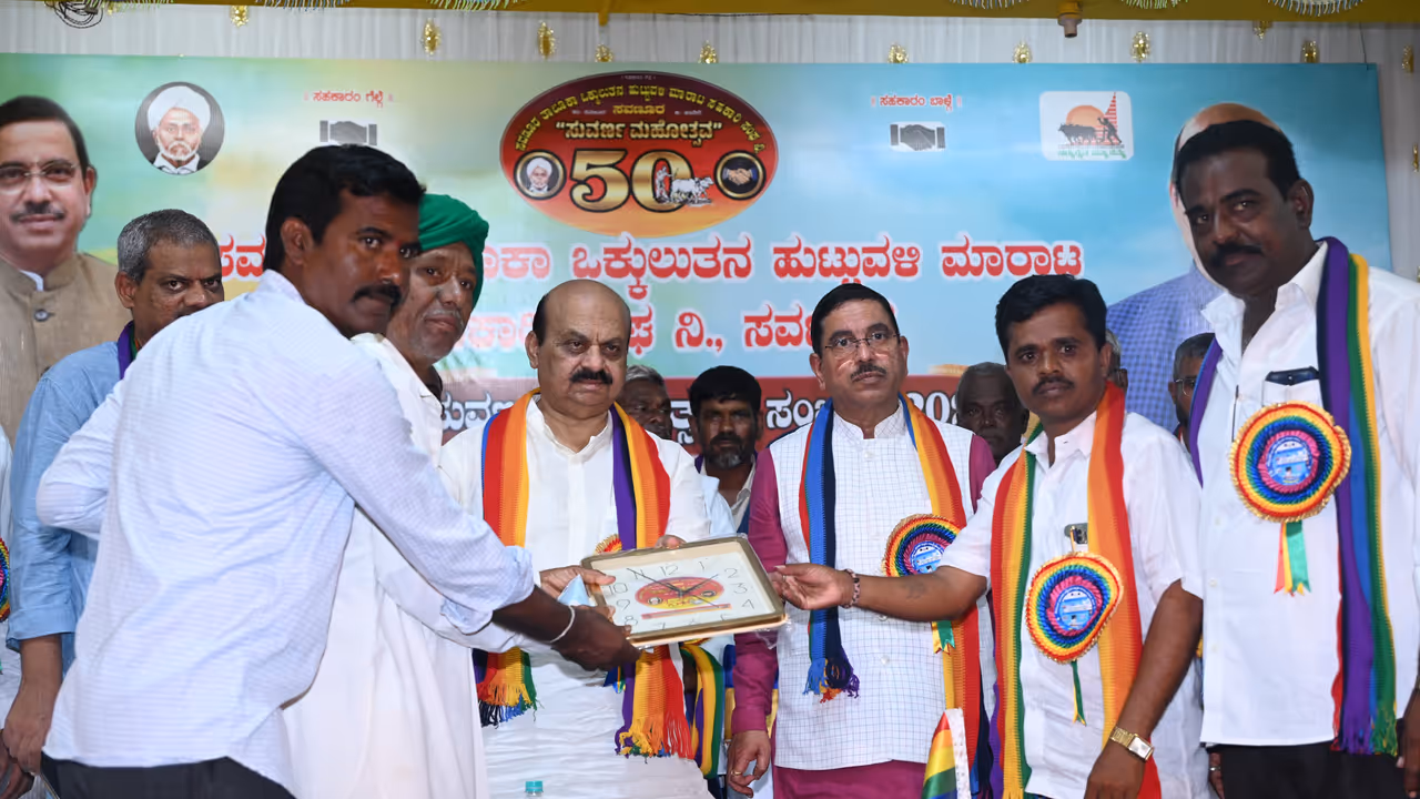 ಪಟ್ಟಣದ ಲಲಾಟೇಶ್ವರ ಕಲ್ಯಾಣ ಮಂಟಪದಲ್ಲಿ ಭಾನುವಾರ ನಡೆದ ಸವಣೂರು ತಾಲೂಕು ಒಕ್ಕಲುತನ ಹುಟ್ಟುವಳಿ ಮಾರಾಟ ಸಹಕಾರಿ ಸಂಘದ ಸುವರ್ಣ ಮಹೋತ್ಸವ ಸಮಾರಂಭ ಉದ್ಘಾಟಿಸಿ ಮಾತನಾಡಿದರು. ಒಂದು ಸಂಸ್ಥೆ ಐವತ್ತು ವರ್ಷ ತುಂಬುವಂಥದ್ದು ಅತ್ಯಂತ ಮಹತ್ವದ್ದು, ಸವಣೂರು ತಾಲೂಕು ಒಕ್ಕಲುತನ ಸಹಕಾರ ಸಂಸ್ಥೆ ಐವತ್ತು ವರ್ಷ ಪೂರೈಸಿರುವುದಕ್ಕೆ ಅಧ್ಯಕ್ಷರು ಹಾಗೂ ಸದಸ್ಯರಿಗೆ ಅಭಿನಂದನೆಗಳು ಎಂದು ಹೇಳಿದರು.ಸಹಕಾರಿ ರಂಗ ನಮ್ಮ ದೇಶದಲ್ಲಿ ದೊಡ್ಡ ಪಾತ್ರ ವಹಿಸುತ್ತದೆ. ಸದಸ್ಯರ ಪರಿಶ್ರಮದಿಂದ ಸಂಘ, ಸಂಘದ ಸದಸ್ಯರಿಂದ ಸದಸ್ಯರಿಗಾಗಿ ಈ ಸೊಸೈಟಿಗಳು ಹುಟ್ಟಿವೆ. ಮನುಷ್ಯ ಸಂಘದ ಮೂಲಕ ಕೆಲಸ ಮಾಡಲು ಸಂಘಗಳು ಹುಟ್ಟಿಕೊಂಡಿವೆ. ಮನುಷ್ಯ ಸಂಘ ಜೀವಿ, ಸಹಕಾರಿ ರಂಗದಲ್ಲಿ ಎಲ್ಲರನ್ನು ಒಳಗೊಂಡ ಪರಿಶ್ರಮದಿಂದ ಕೆಲಸ ಮಾಡಿದಾಗ ಕಾರ್ಯ ಯಶಸ್ವಿಯಾಗುತ್ತದೆ ಎಂದರು.