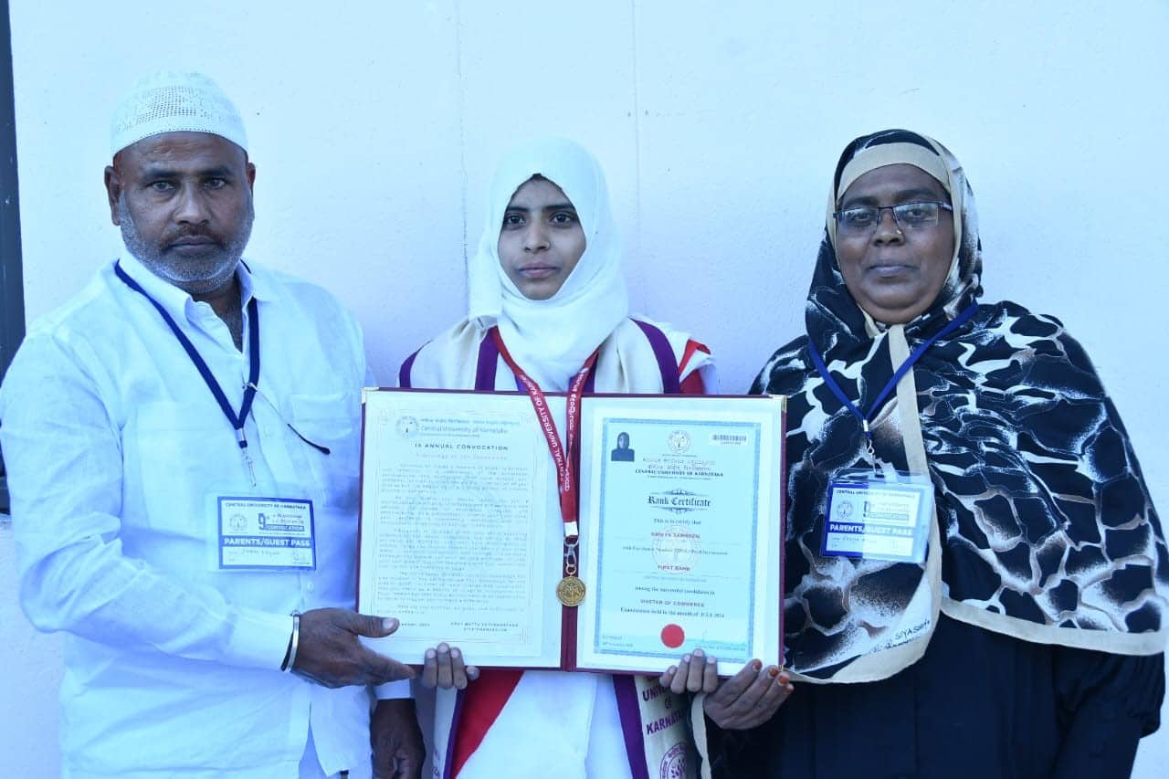 -ಕಡಗಂಚಿ ಕೇಂದ್ರೀಯ ವಿವಿ ಮಾಸ್ಟರ್ ಆಫ್ ಕಾಮರ್ಸ್ ನಲ್ಲಿ ಚಿನ್ನದ ಪದಕ ಗೆದ್ದ ಸಾನಿಯಾ ಸಮ್ರೀನ್ । ಎಂಕಾಂ ಓದಿ ಚಿನ್ನ ಗೆದ್ದಳು
