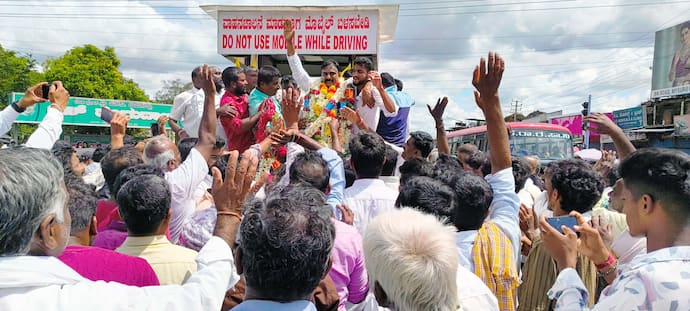 ರಾಜ್ಯ ಕೈಮಗ್ಗ ಅಭಿವೃದ್ಧಿ ನಿಗಮದ ಅಧ್ಯಕ್ಷರಾಗಿ ನೇಮಕಗೊಂಡು ಅಧಿಕಾರ ಸ್ವೀಕರಿಸಿ ತಾಲೂಕಿಗೆ ಆಗಮಿಸಿದ ಐಪನಹಳ್ಳಿ ಬಿ.ನಾಗೇಂದ್ರಕುಮಾರ್ ಅವರನ್ನು ಕಾಂಗ್ರೆಸ್ ಕಾರ್ಯಕರ್ತರು ಹಾಗೂ ಅಭಿಮಾನಿಗಳು ಅದ್ಧೂರಿ ಸ್ವಾಗತಿಸಿದರು.ತಾಲೂಕಿನ ಗಡಿಭಾಗ ಅಶೋಕನಗರದ ಬಳಿ ನೂರಾರು ಕಾರ್ಯಕರ್ತರು ಸ್ವಾಗತಿಸಿ ಬೈಕ್ ರ್ಯಾಲಿ ಮೂಲಕ ಪಟ್ಟಣದವರೆಗೆ ಮೆರವಣಿಗೆಯಲ್ಲಿ ಬರಮಾಡಿಕೊಂಡರು ಪ್ರವಾಸಿ ಮಂದಿರ ವೃತ್ತದಲ್ಲಿ ನಾಗೇಂದ್ರಕುಮಾರ್ ಅವರನ್ನು ಹೆಗಲಮೇಲೆ ಹೊತ್ತು, ಪಟಾಕಿ ಸಿಡಿಸಿ, ಸಾರ್ವಜನಿಕರಿಗೆ ಸಿಹಿ ವಿತರಣೆ ಮಾಡಿ ಸಂಭ್ರಮಿಸಿದರು.