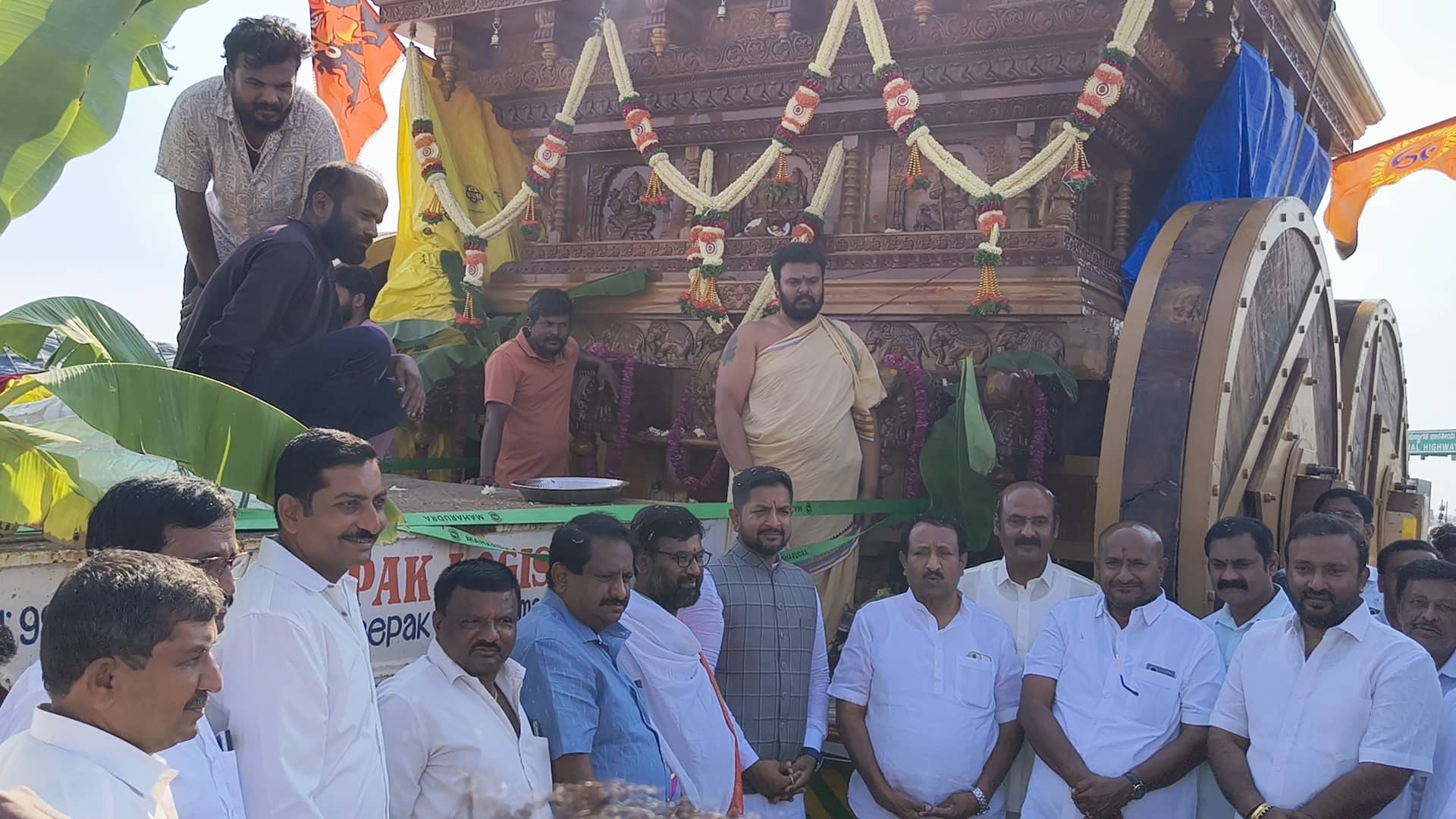 ಸೂಲಿಬೆಲೆ: ಸಮೀಪದ ನಲ್ಲೂರು ಟೋಲ್ ಬಳಿ ನೂತನ ಬ್ರಹ್ಮರಥಕ್ಕೆ ಶಾಸಕ ಶರತ್ ಬಚ್ಚೇಗೌಡ ಪೂಜೆ ಸಲ್ಲಿಸಿ ಚಾಲನೆ ನೀಡಿದರು