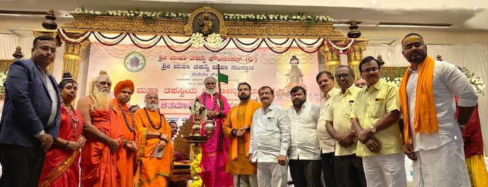 ಸಮಾರಂಭದಲ್ಲಿ ಬಾಳೆಹೊನ್ನೂರಿನ ರಂಭಾಪುರಿ ಶ್ರೀ ಆಶೀರ್ವಚನ ನೀಡಿದರು.;Resize=(128,128))