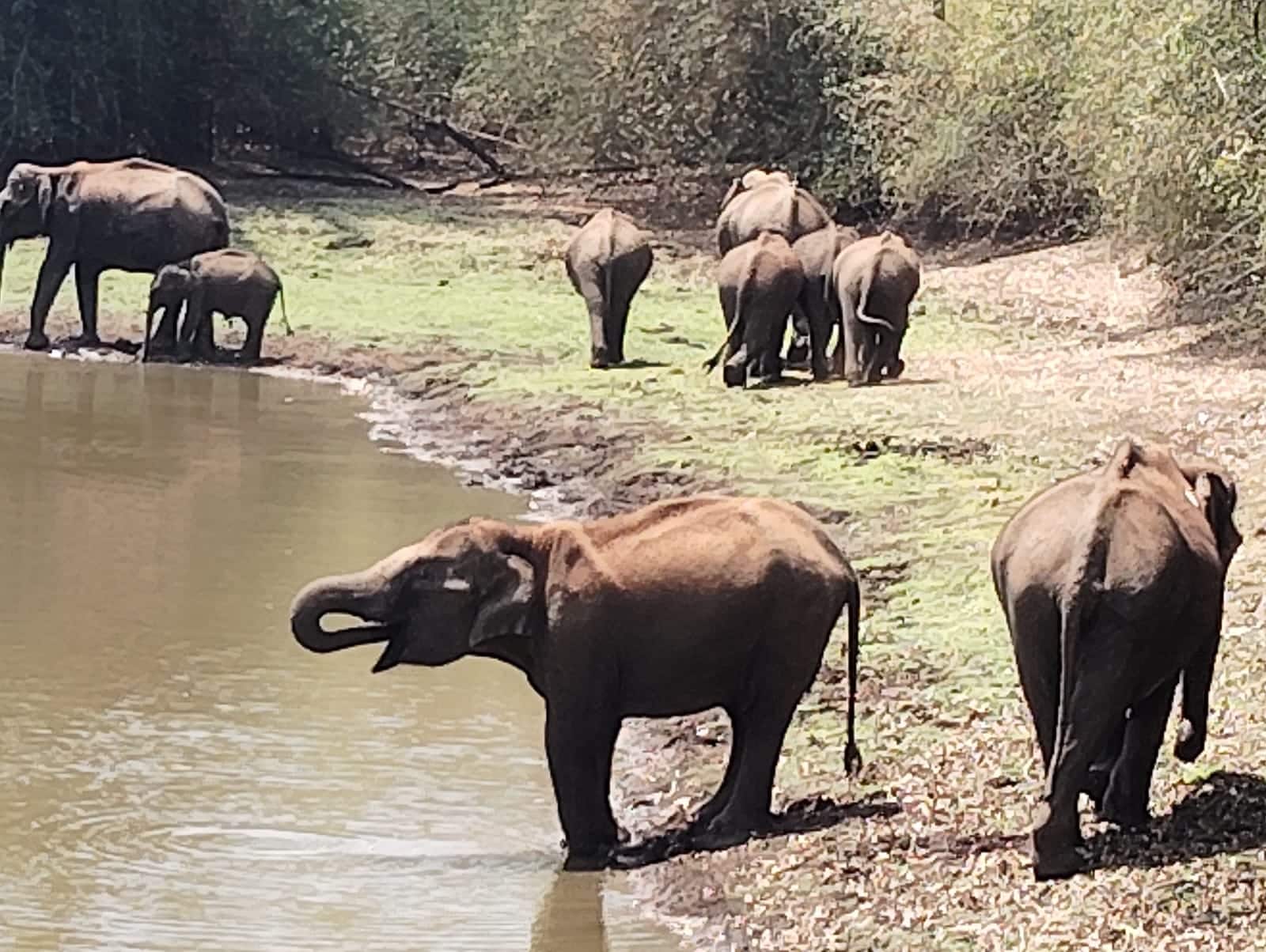ಕನ್ನಡಪ್ರಭ ವಾರ್ತೆ, ನರಸಿಂಹರಾಜಪುರತಾಲೂಕಿನ ಮುತ್ತಿನಕೊಪ್ಪ ಗ್ರಾಮ ಪಂಚಾಯಿತಿ ಕುಸುಬೂರು ಗ್ರಾಮದ ಹೊಸಕೊಪ್ಪದ ಕೃಷಿಕ ಯತಿರಾಜ್ ತೋಟದ ಪಕ್ಕದ ಕೆರೆಗೆ 10 ಕಾಡಾನೆಗಳ ಹಿಂಡು ಭಾನುವಾರ ಮಧ್ಯಾಹ್ನ 12 ಗಂಟೆಗೆ ಬಂದು ನೀರು ಕುಡಿದು ಸ್ವಲ್ಪ ಹೊತ್ತು ನೀರಿನಲ್ಲೇ ಆಟವಾಡಿಕೊಂಡು ಹೋಗಿದೆ.