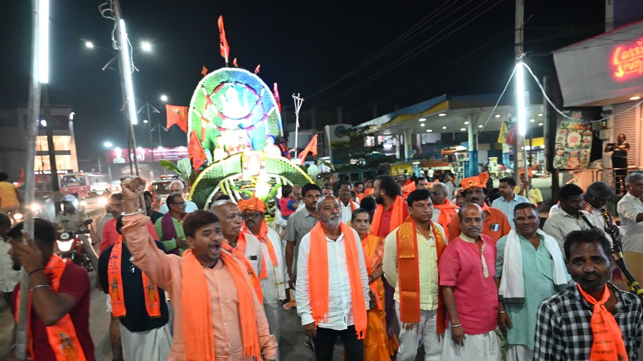 ರಾಘವೇಂದ್ರ ಮಠದಿಂದ ಪ್ರಾರಂಭವಾದ ಶೋಭಾಯಾತ್ರೆ ಕೊಪ್ಪಳ ನಗರದ ರಾಷ್ಟ್ರೀಯ ಹೆದ್ದಾರಿಯಲ್ಲಿ ಕೇಂದ್ರೀಯ ಬಸ್ ನಿಲ್ದಾಣದ ಮುಂಭಾಗದಲ್ಲಿ ಜನಸ್ತೋಮದ ಮಧ್ಯೆ ಸಾಂಘವಾಗಿ ಸಾಗಿತು. ಜಯ ಘೋಷ ಮತ್ತು ಶ್ರೀರಾಮನಾಮದೊಂದಿಗೆ ಶೋಭಾಯಾತ್ರೆ ಪಾಲ್ಗೊಂಡಿದ್ದರು.
